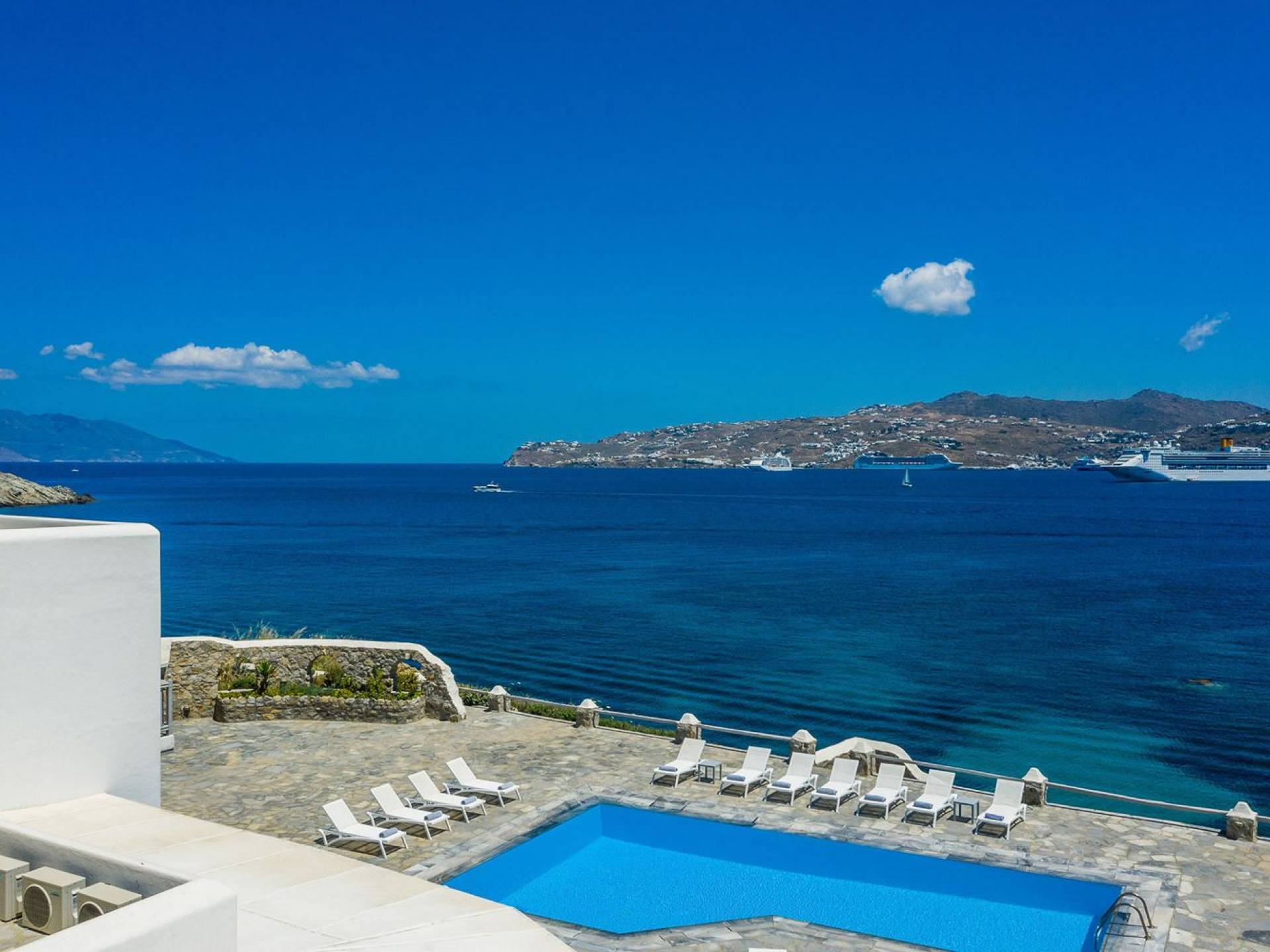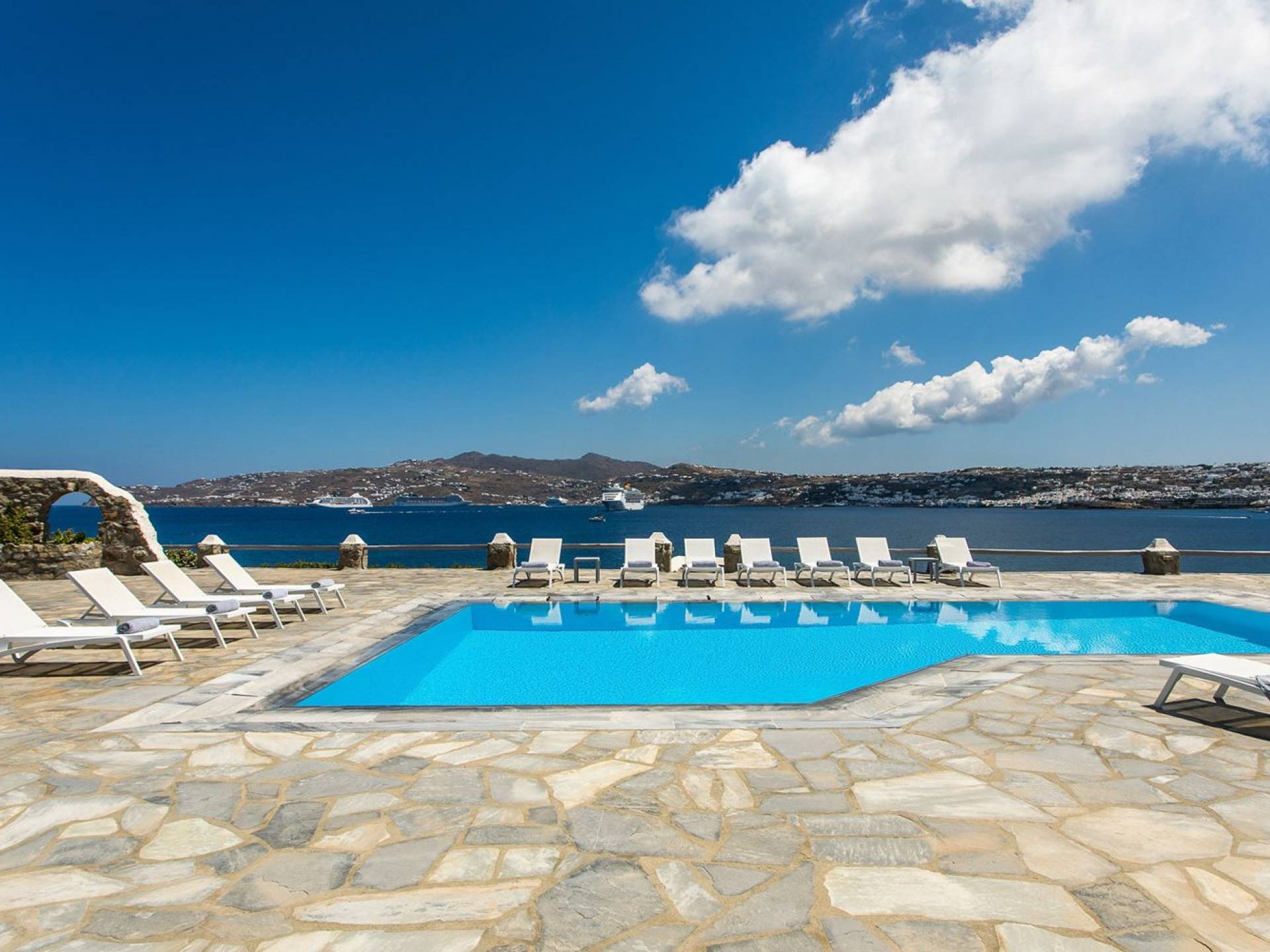 Villa Zeolith Mykonos ist eine Luxusvilla mit 7 Schlafzimmern und privatem Pool. Villa Zeolith ist eine Oase direkt am Meer mit fantastischem Blick auf den Hafen und die funkelnden Nachtlichter von Mykonos-Stadt. In einer erstklassigen Wohngegend der Insel gelegen, kann dieses luxuriöse Haus mit tadelloser Ästhetik sogar eine unvergessliche Veranstaltung beherbergen.