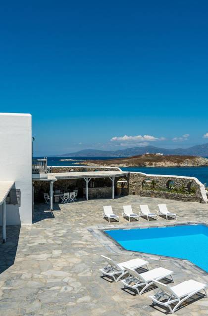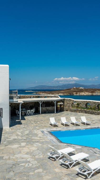 Genießen Sie den Komfort der großzügigen Freizeitbereiche oder entspannen Sie und speisen Sie im Freien unter den schattigen Pergolen am Pool. Den atemberaubenden Sonnenuntergang von Kanalia zu genießen kann süchtig machen… seien Sie darauf vorbereitet, in die Schönheit der Ägäis einzutauchen.