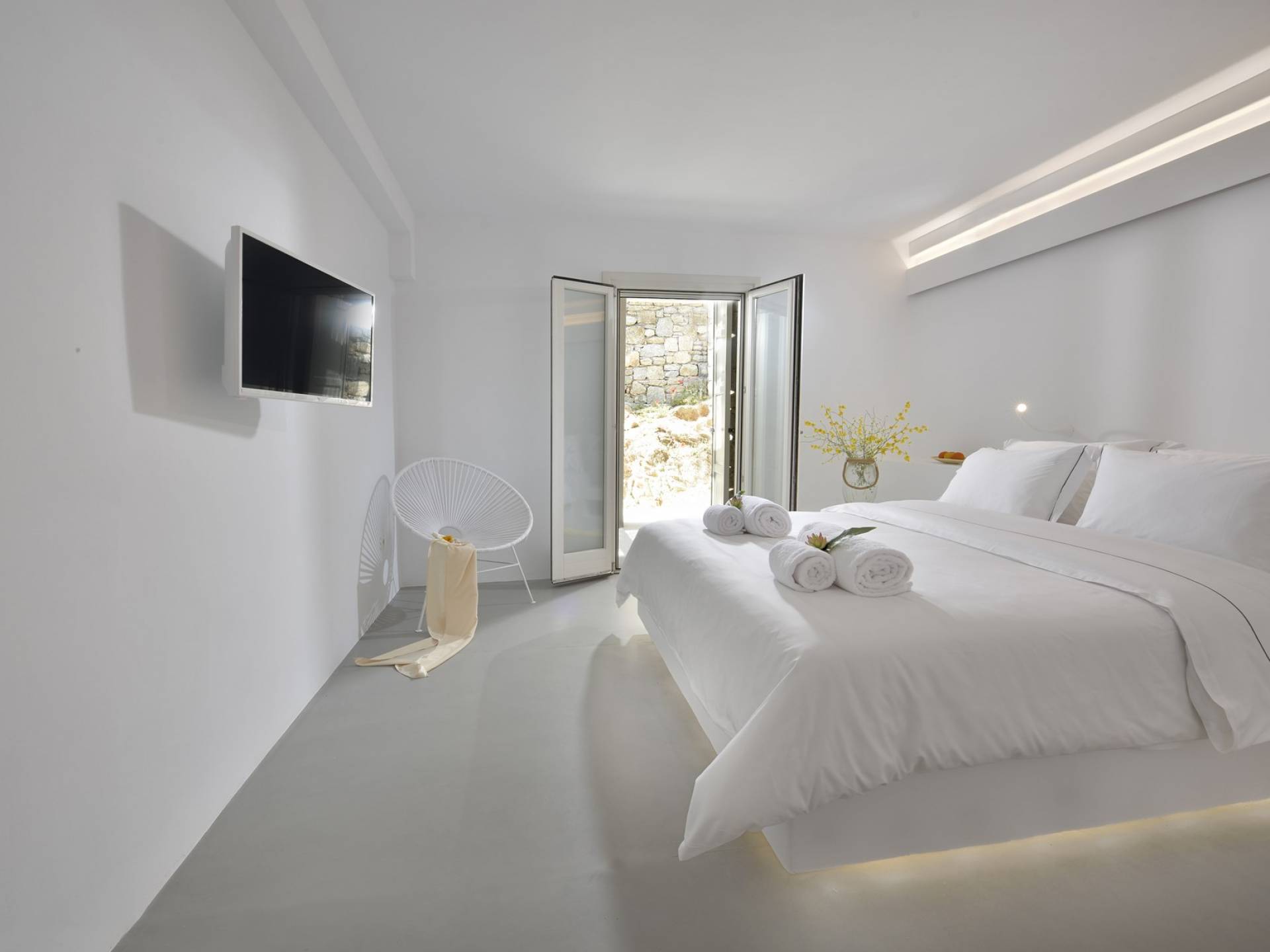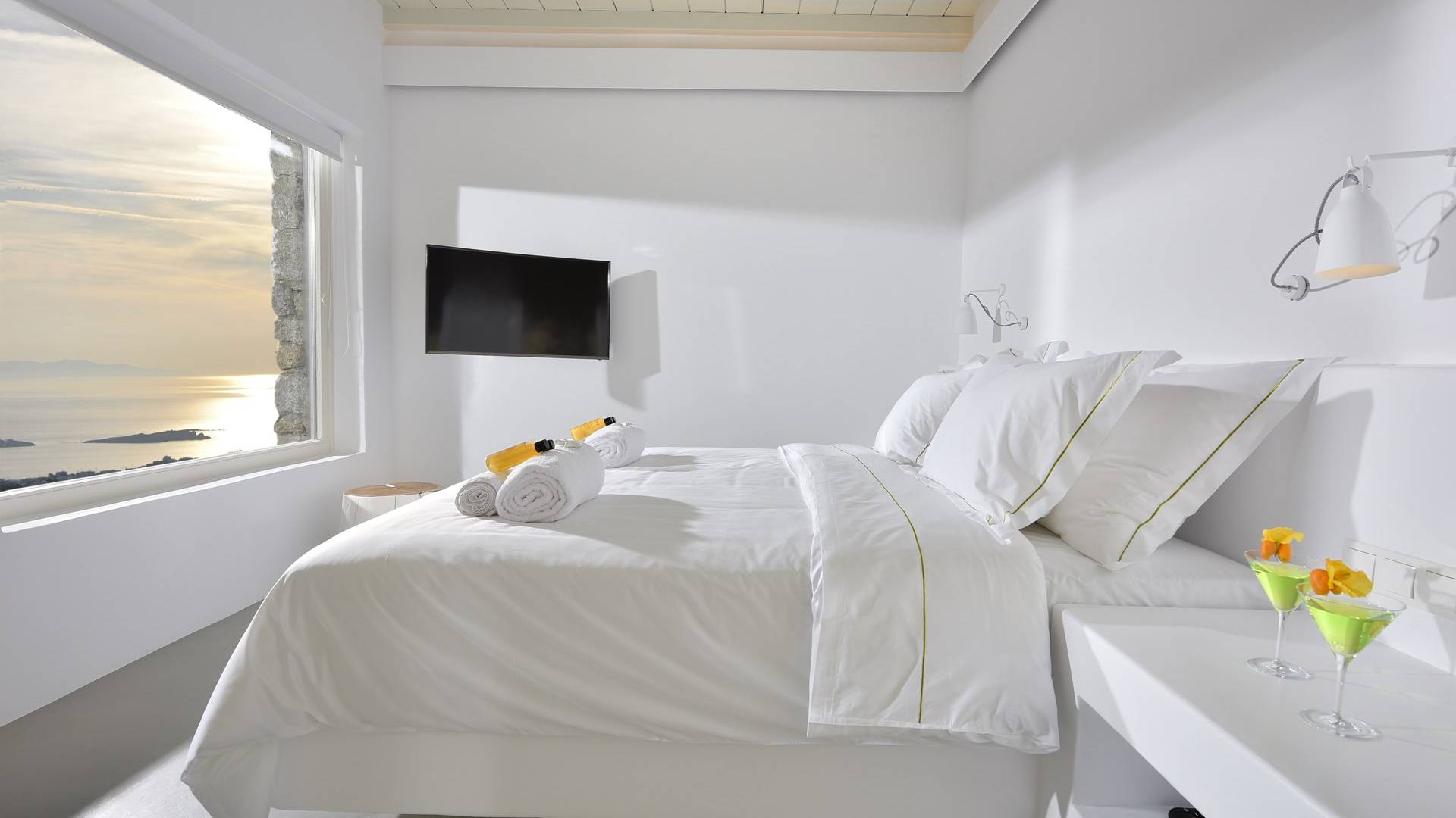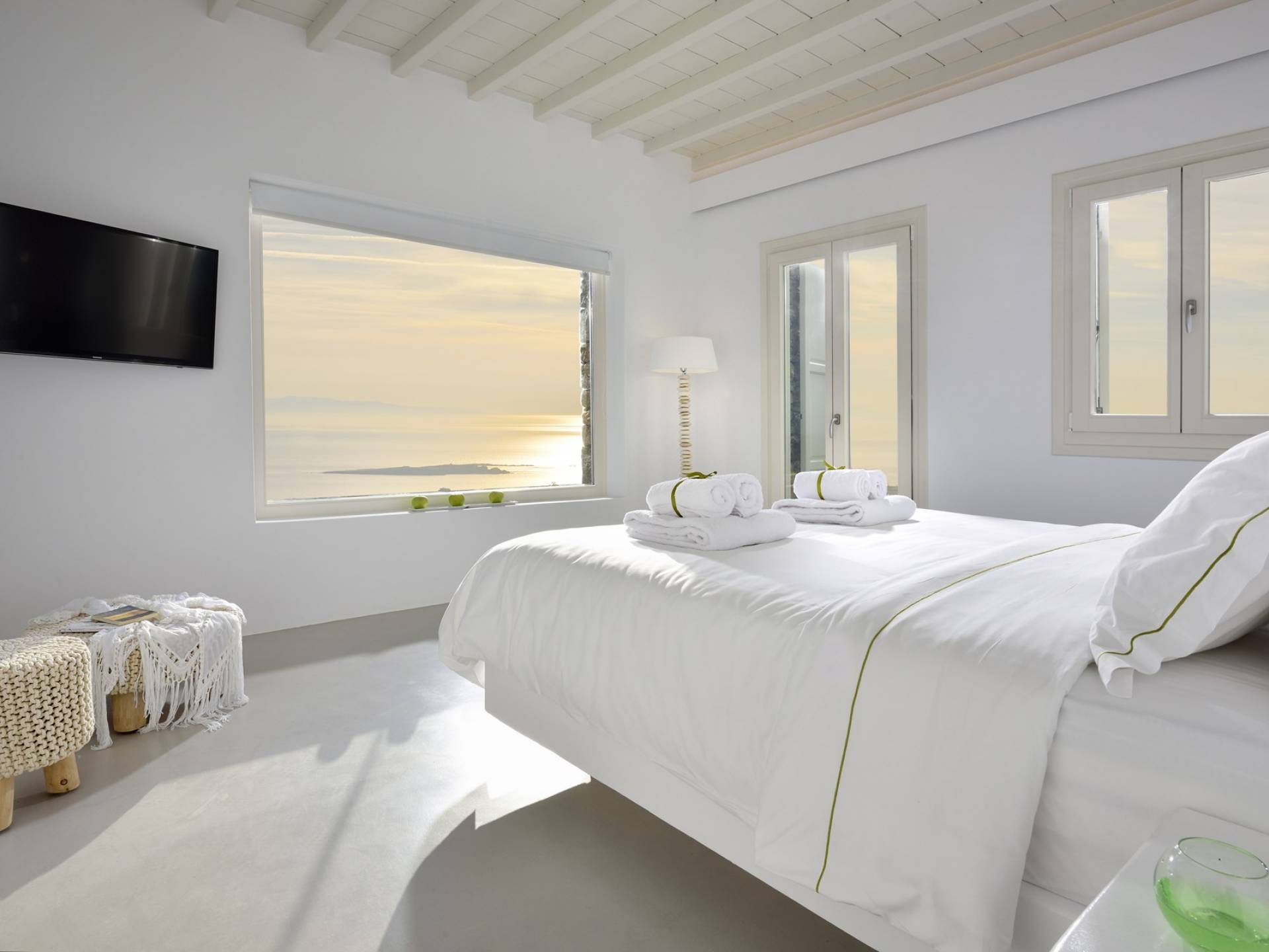 Villa Sunstone Mykonos verfügt über 6 Hauptschlafzimmer und eine Gesamtfläche von 280 m². Im Erdgeschoss befinden sich 3 große Schlafzimmer mit Bad en Suite, WC, voll ausgestattete Küche, Wohn- und Esszimmer mit herrlichem Ausblick und auf der oberen Ebene befinden sich weitere 3 Schlafzimmer mit Bad en Suite und bepflanzten Dächern. Die Villa bietet Platz für insgesamt 12 Gäste.