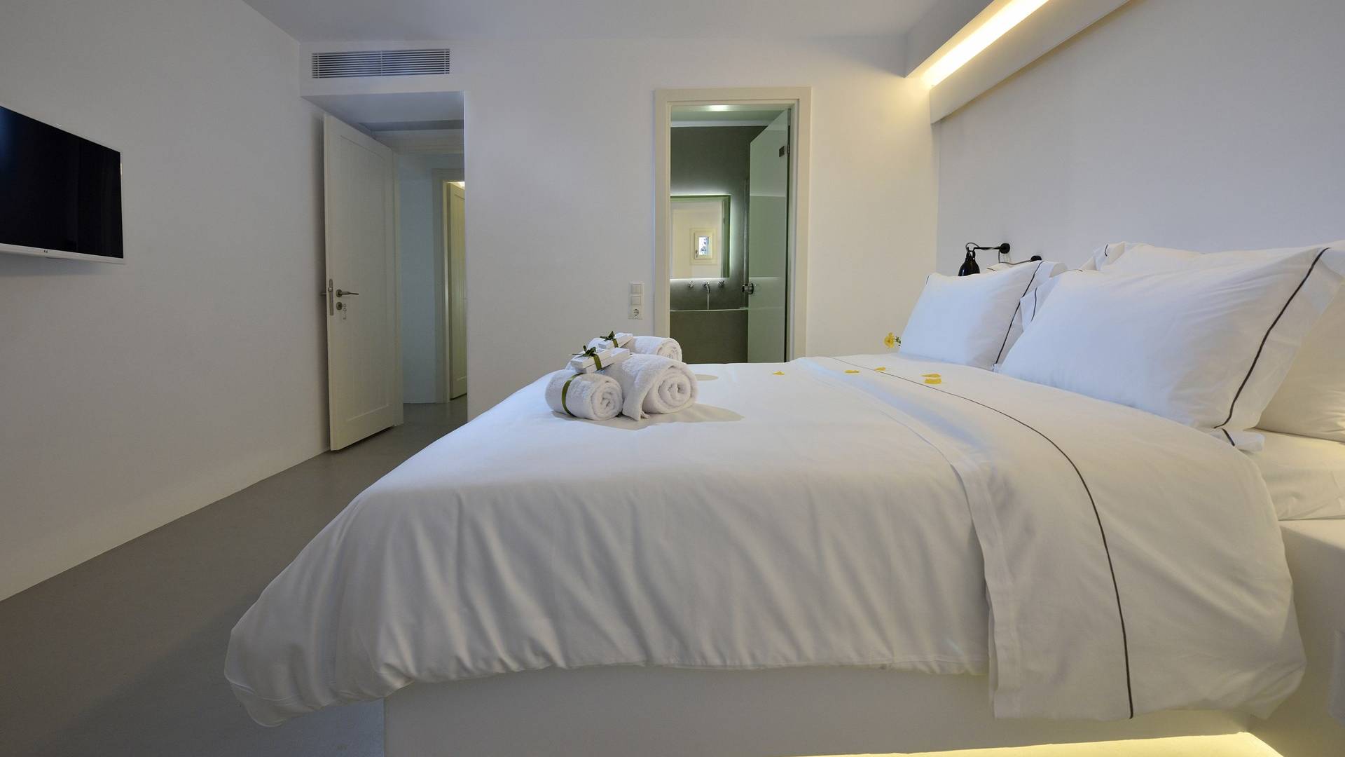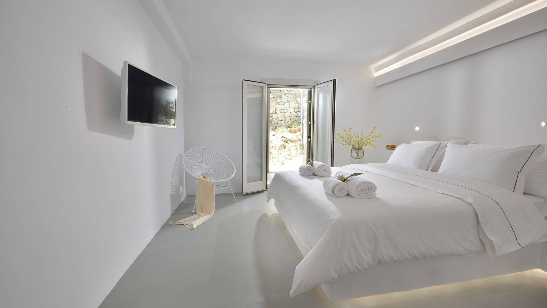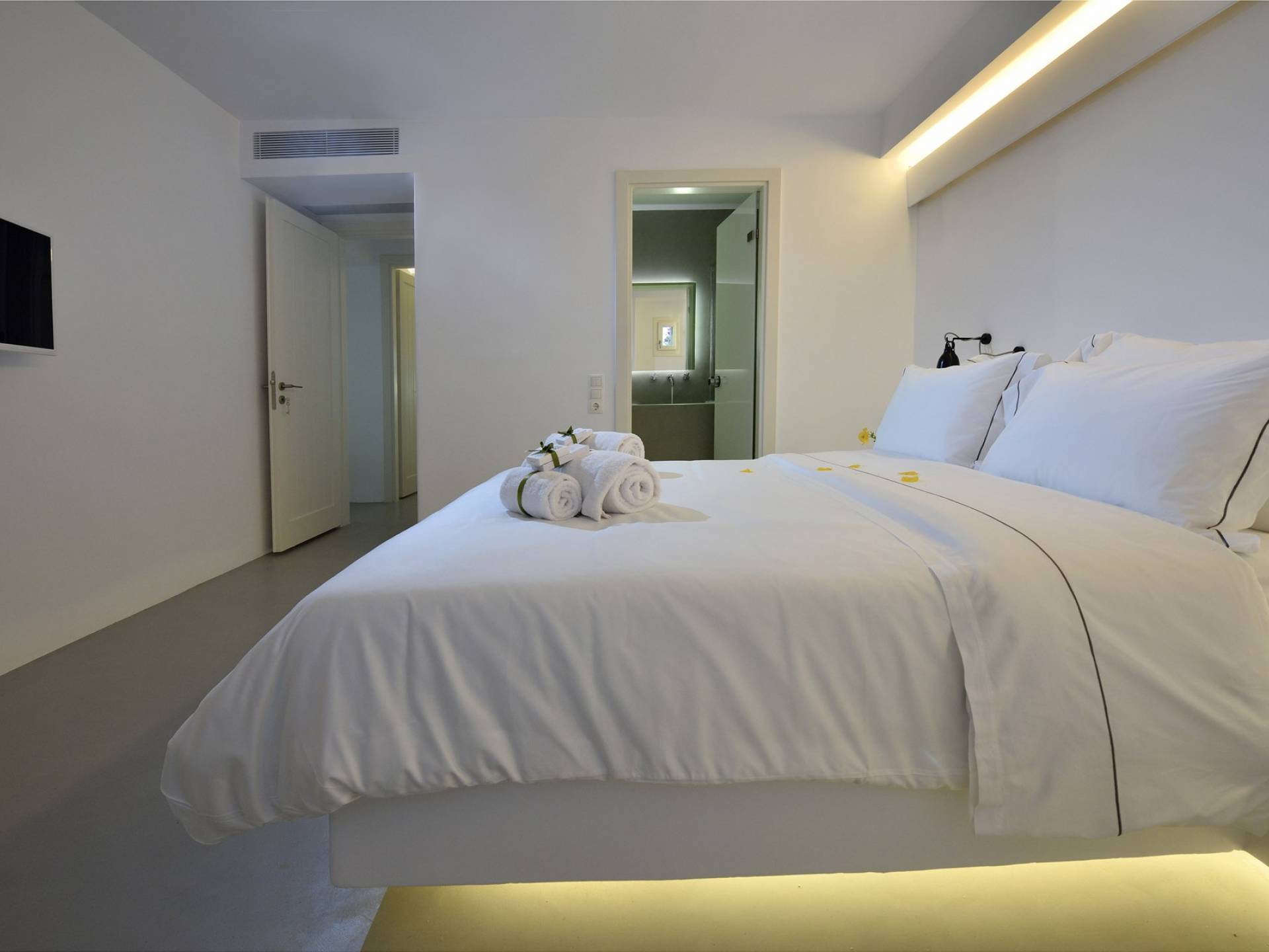 Villa Sunstone Mykonos verfügt über 6 Hauptschlafzimmer und eine Gesamtfläche von 280 m². Im Erdgeschoss befinden sich 3 große Schlafzimmer mit Bad en Suite, WC, voll ausgestattete Küche, Wohn- und Esszimmer mit herrlichem Ausblick und auf der oberen Ebene befinden sich weitere 3 Schlafzimmer mit Bad en Suite und bepflanzten Dächern. Die Villa bietet Platz für insgesamt 12 Gäste.