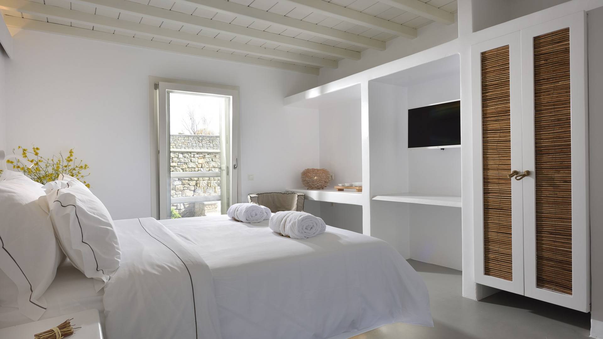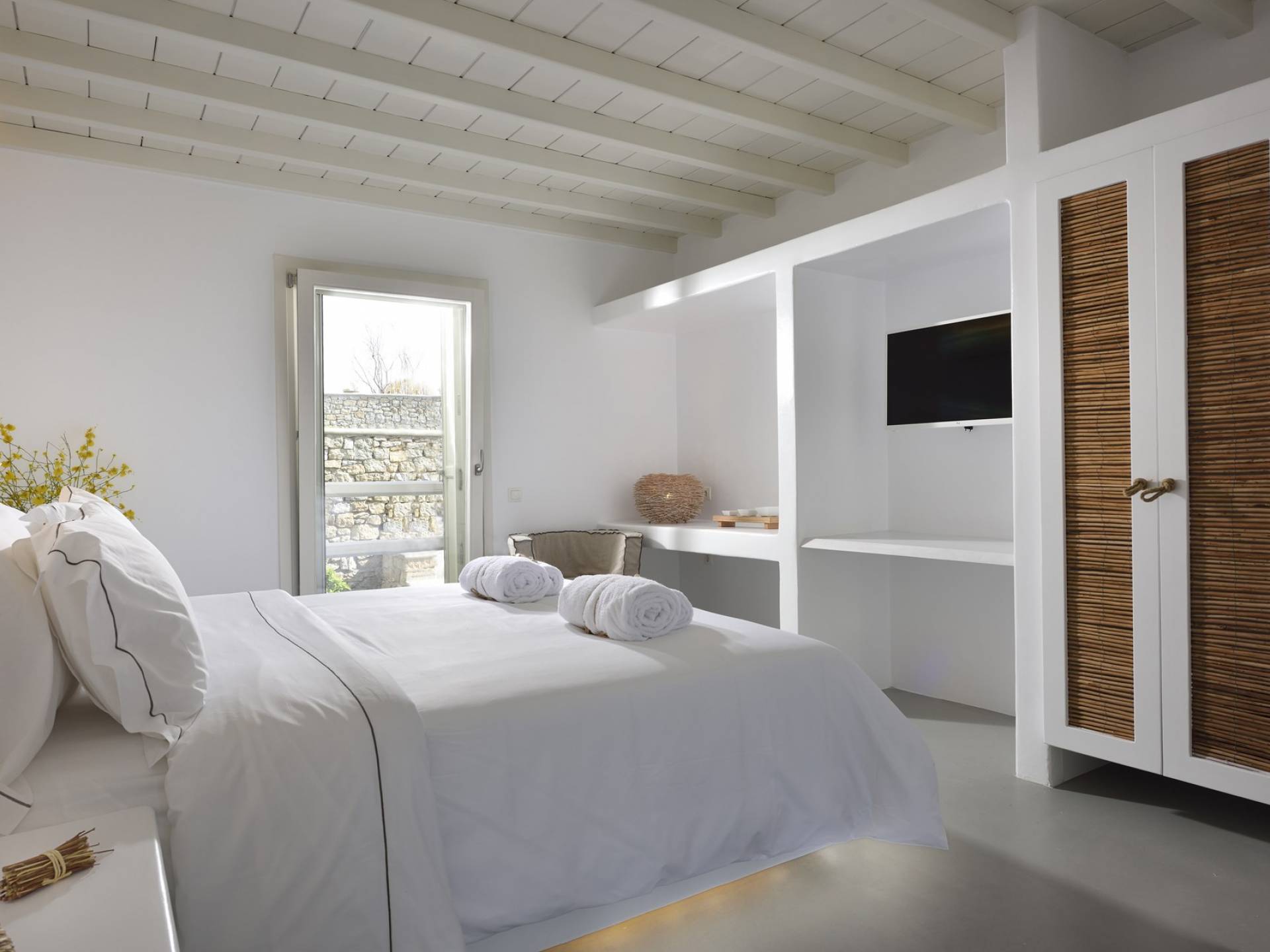 Kounoupas auf Mykonos befindet sich in bester Lage im zentralen Westen der Insel und ist somit der perfekte Ort, an dem Sie Ihre Erkundung beginnen können. Es ist leicht zu erreichen, nur 5 km vom internationalen Flughafen Mykonos entfernt und in der Nähe der beliebtesten Sehenswürdigkeiten und Strände. Kounoupas liegt in der Nähe von Ano Mera, dem zweitgrößten und ältesten Dorf von Mykonos, sowie dem Sandstrand von Plintri mit türkisfarbenem Wasser und natürlich dem längsten Sandstrand von Mykonos, Elia, übersät mit Tavernen und Bars mit einer Vielzahl von Wassersportmöglichkeiten wie Wasserski, Parasailing und Windsurfen.