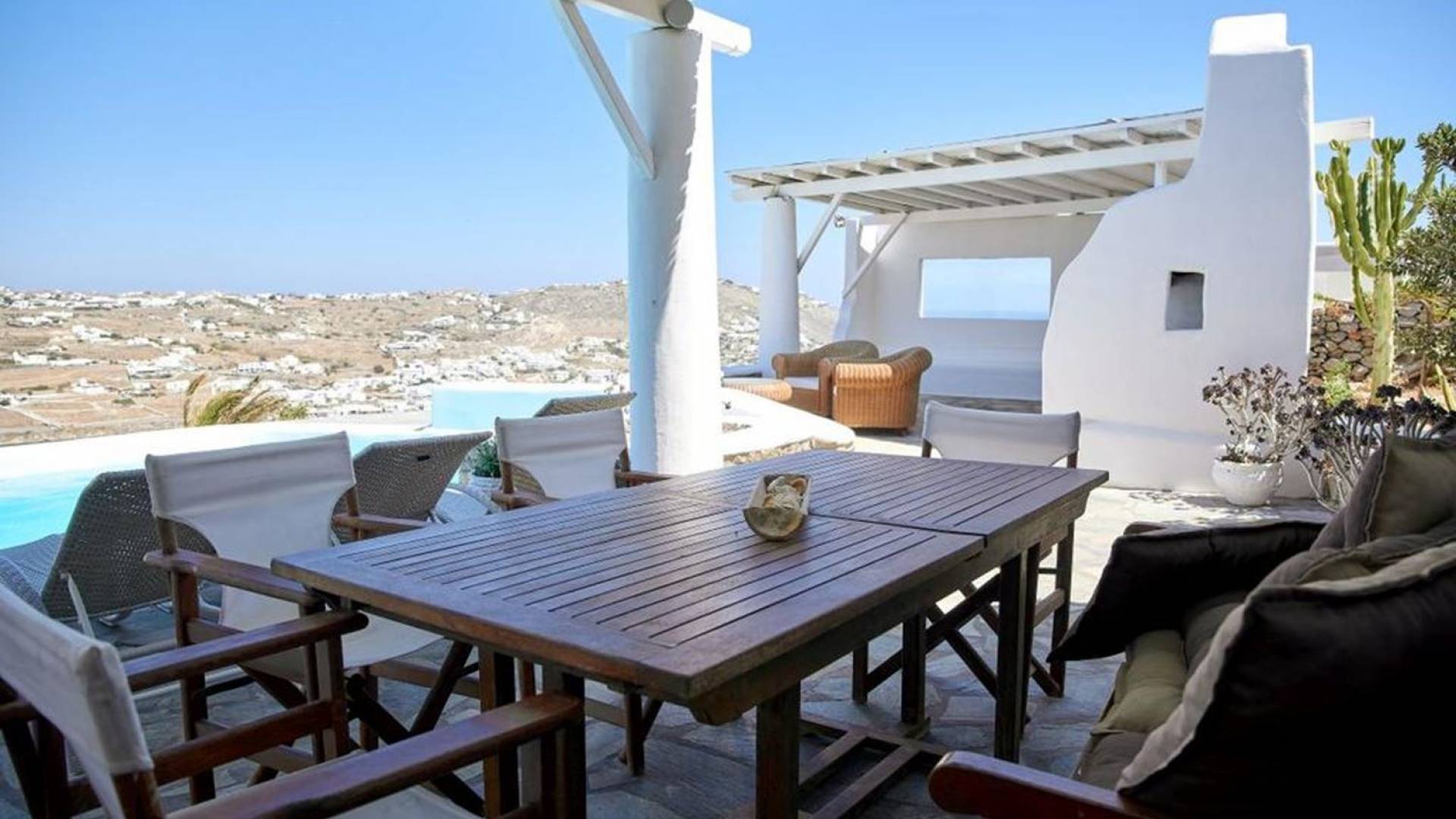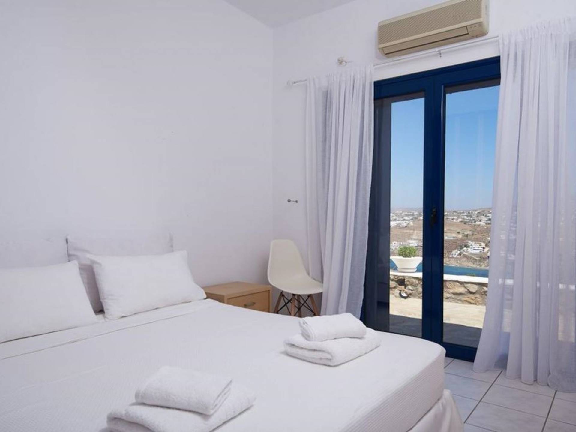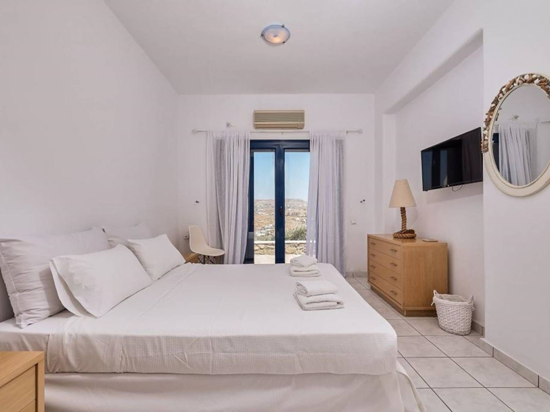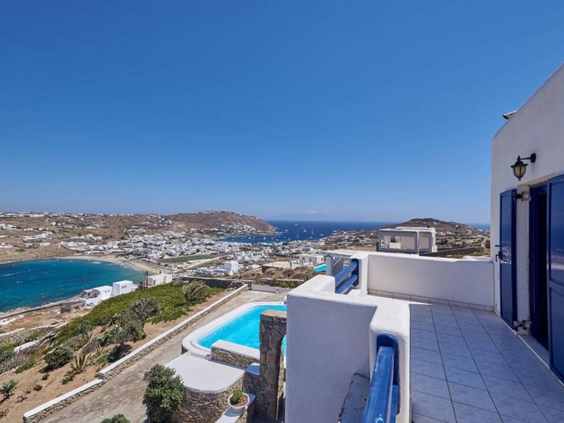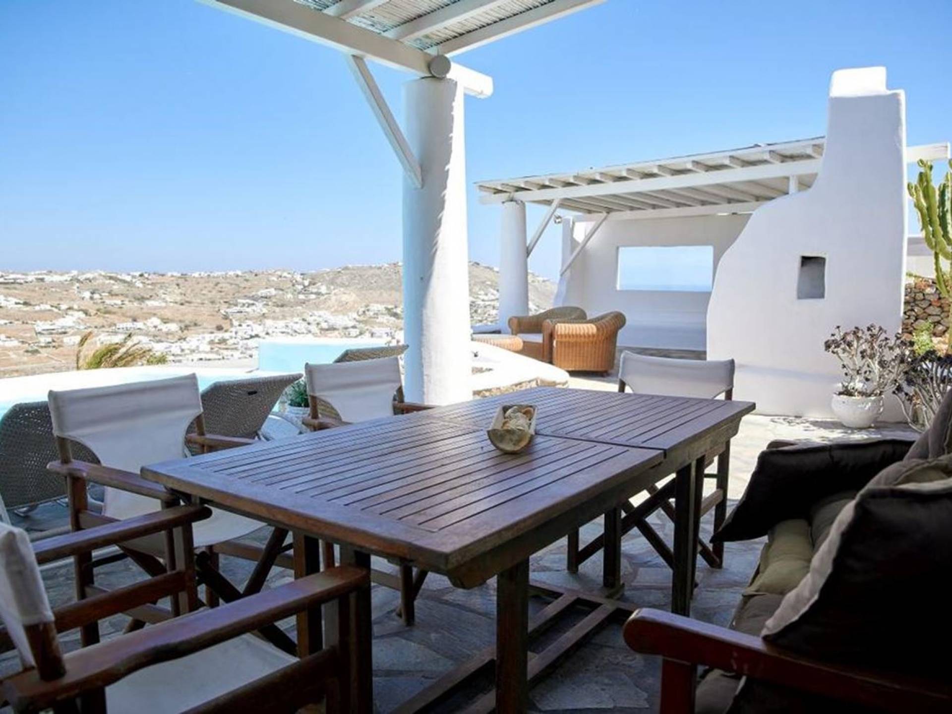 Aella Villa Mykonos ist eine Luxusvilla mit 4 Schlafzimmern und einem privaten Pool. Die Aella Villa befindet sich in der Gegend von Kanalia auf Mykonos, nur wenige Gehminuten vom atemberaubenden Strand von Ornos entfernt. Die atemberaubende Aussicht beinhaltet einen Panoramablick auf das Land und Ornos. Es verfügt über Parkplätze für 4 Autos auf einem Grundstück voller Blumen sowie einen Barbeque/Grill mit einem großen Wohnbereich, der vor Wind und Sonne geschützt ist.