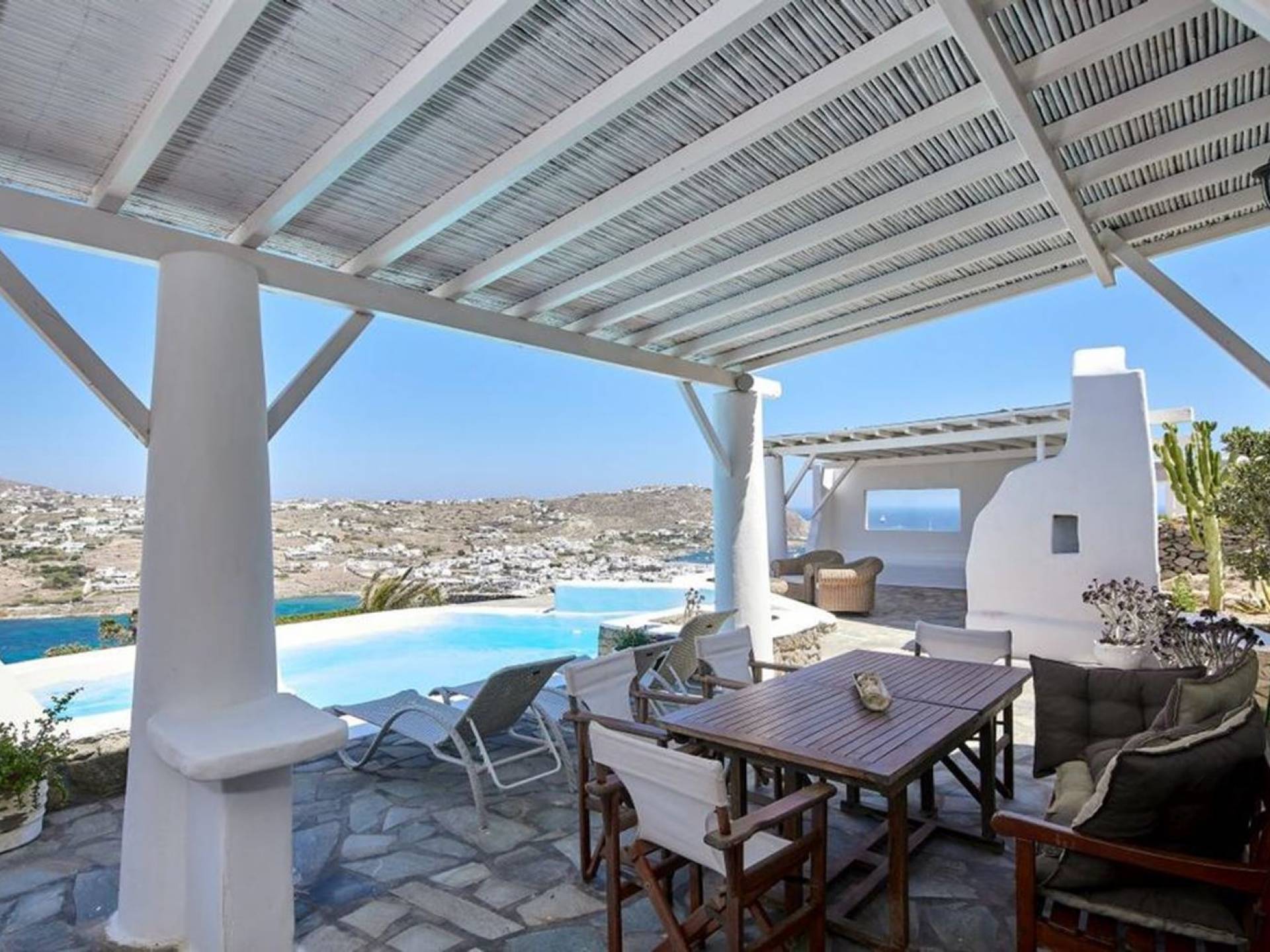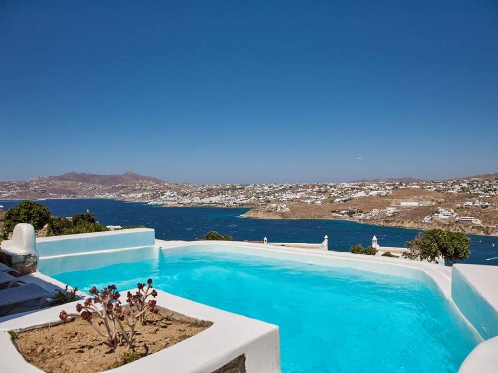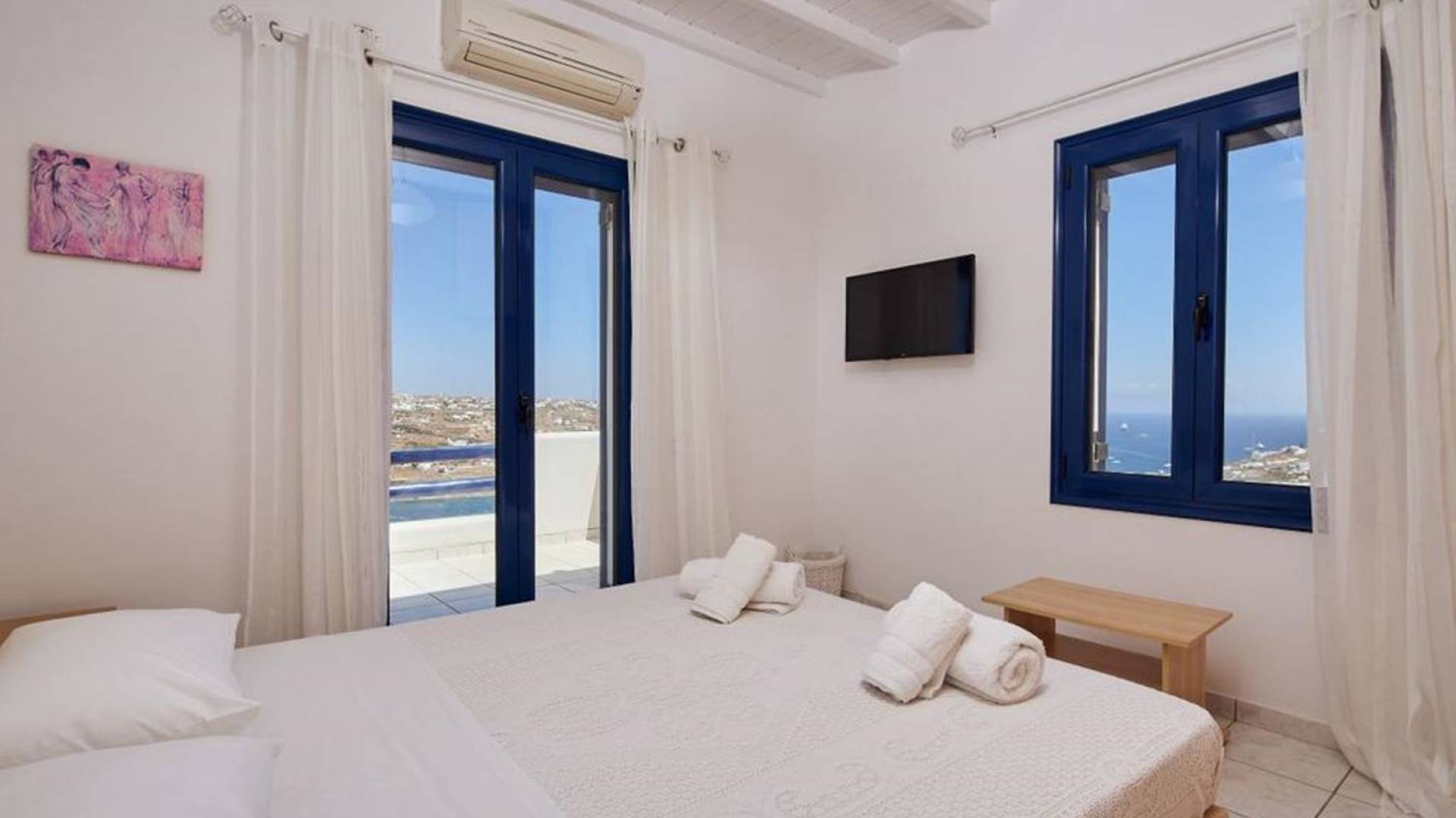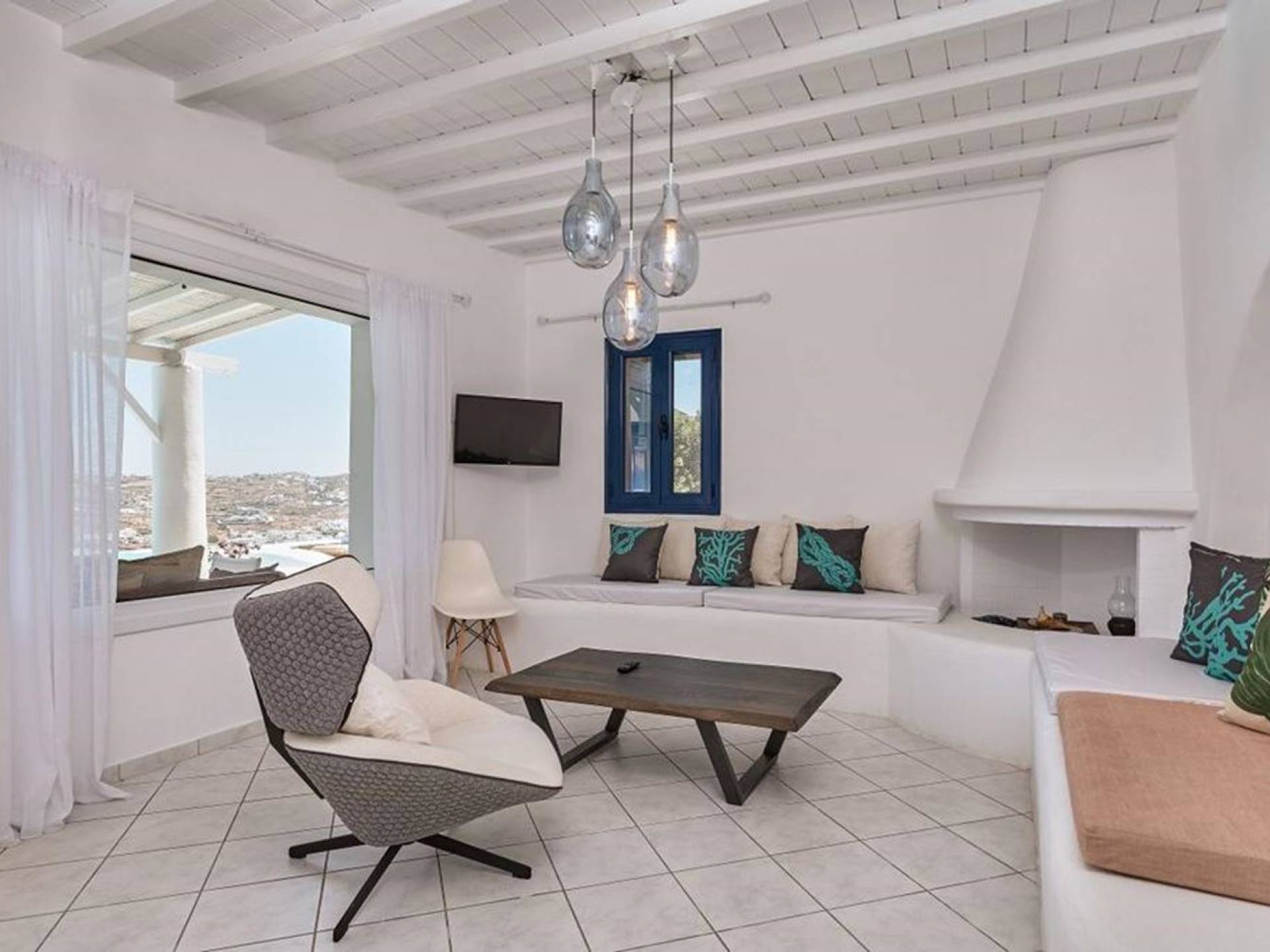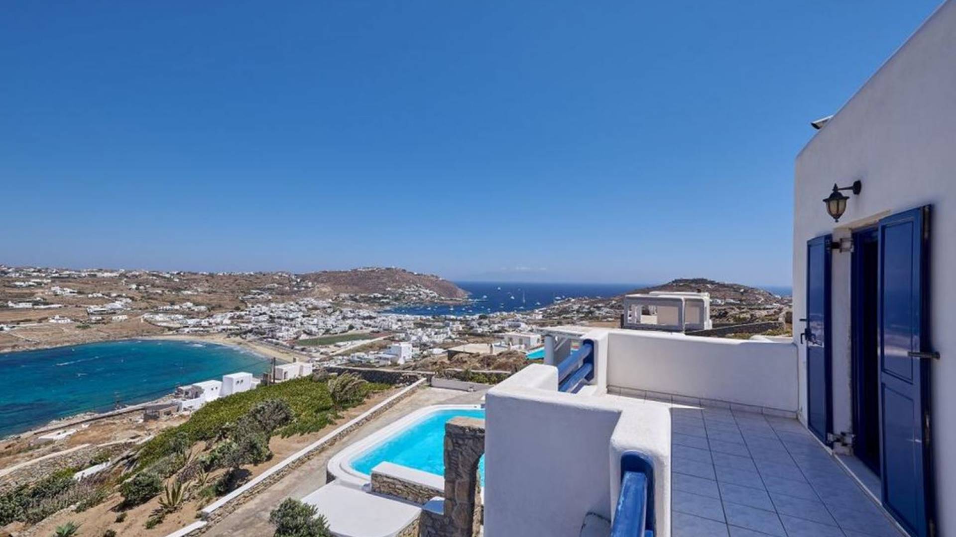 Aella Villa Mykonos ist eine Luxusvilla mit 4 Schlafzimmern und einem privaten Pool. Die Aella Villa befindet sich in der Gegend von Kanalia auf Mykonos, nur wenige Gehminuten vom atemberaubenden Strand von Ornos entfernt. Die atemberaubende Aussicht beinhaltet einen Panoramablick auf das Land und Ornos. Es verfügt über Parkplätze für 4 Autos auf einem Grundstück voller Blumen sowie einen Barbeque/Grill mit einem großen Wohnbereich, der vor Wind und Sonne geschützt ist.