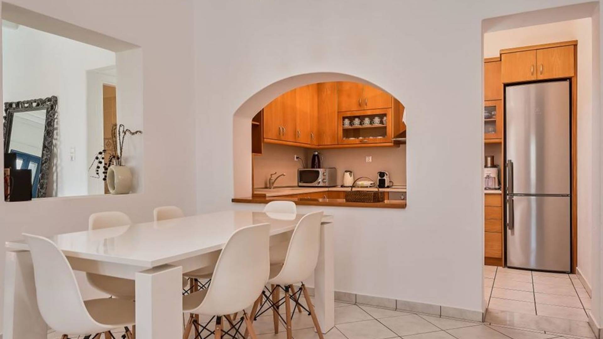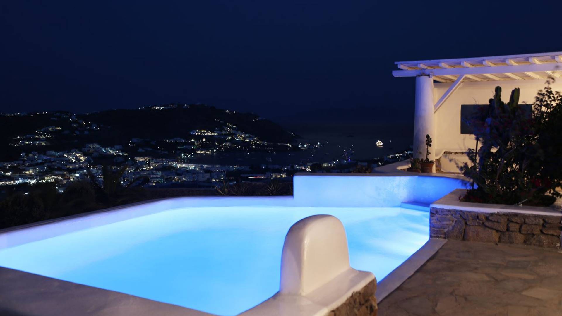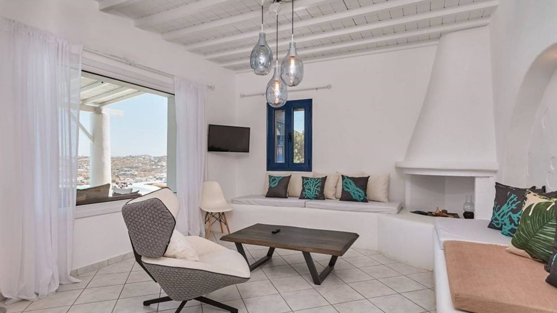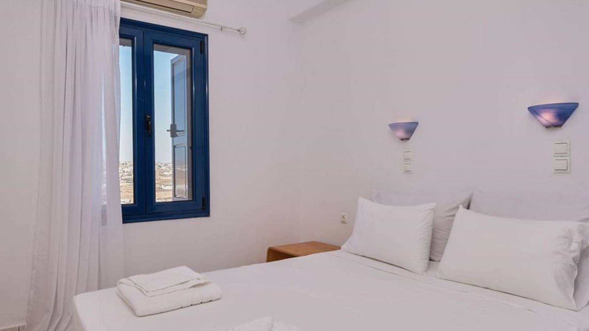 Aella Villa Mykonos ist eine Luxusvilla mit 4 Schlafzimmern und einem privaten Pool. Die Aella Villa befindet sich in der Gegend von Kanalia auf Mykonos, nur wenige Gehminuten vom atemberaubenden Strand von Ornos entfernt. Die atemberaubende Aussicht beinhaltet einen Panoramablick auf das Land und Ornos. Es verfügt über Parkplätze für 4 Autos auf einem Grundstück voller Blumen sowie einen Barbeque/Grill mit einem großen Wohnbereich, der vor Wind und Sonne geschützt ist.