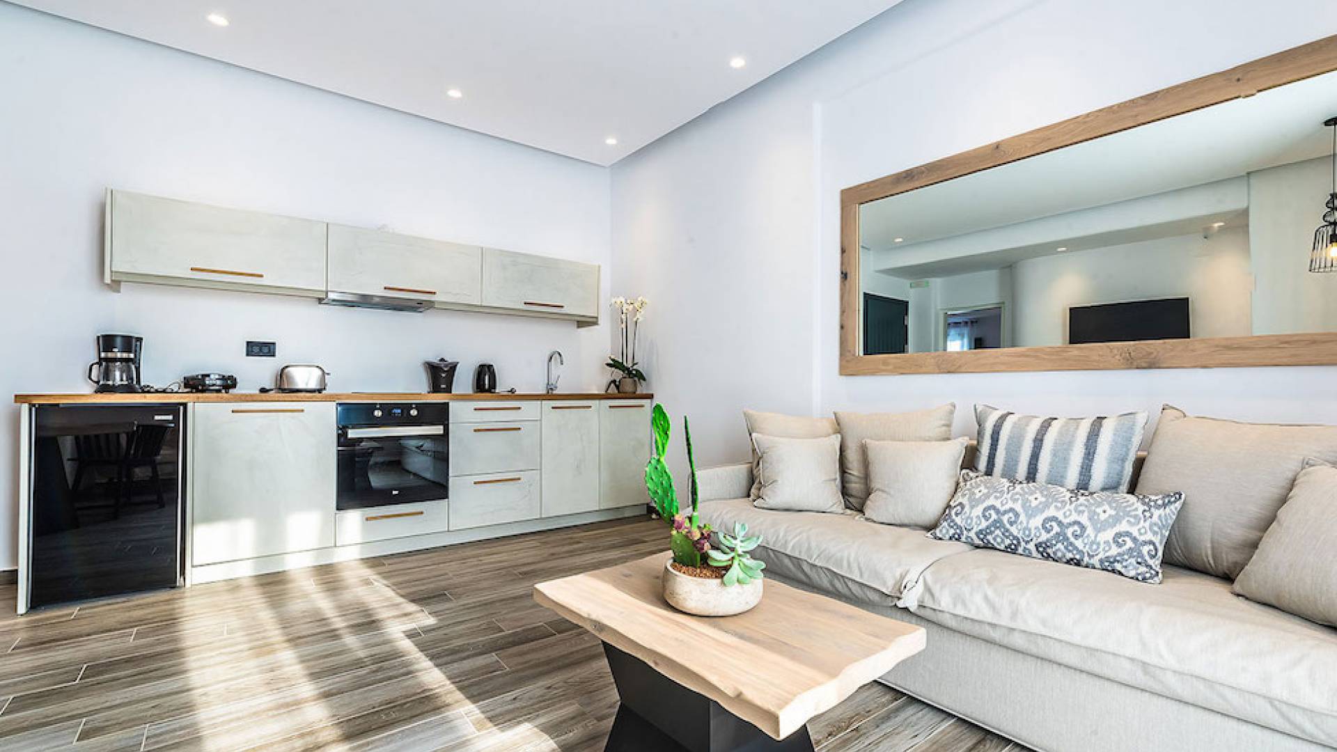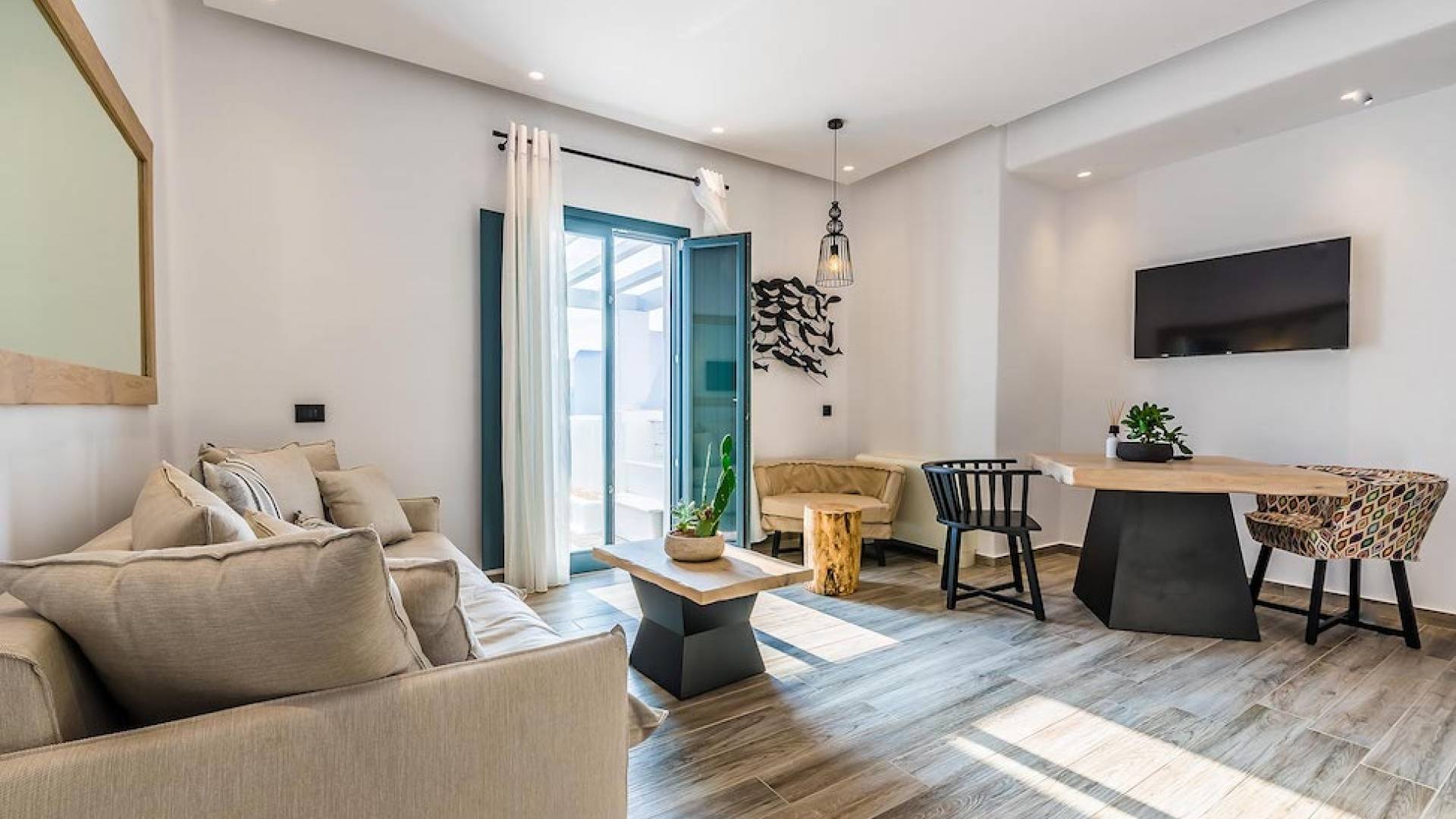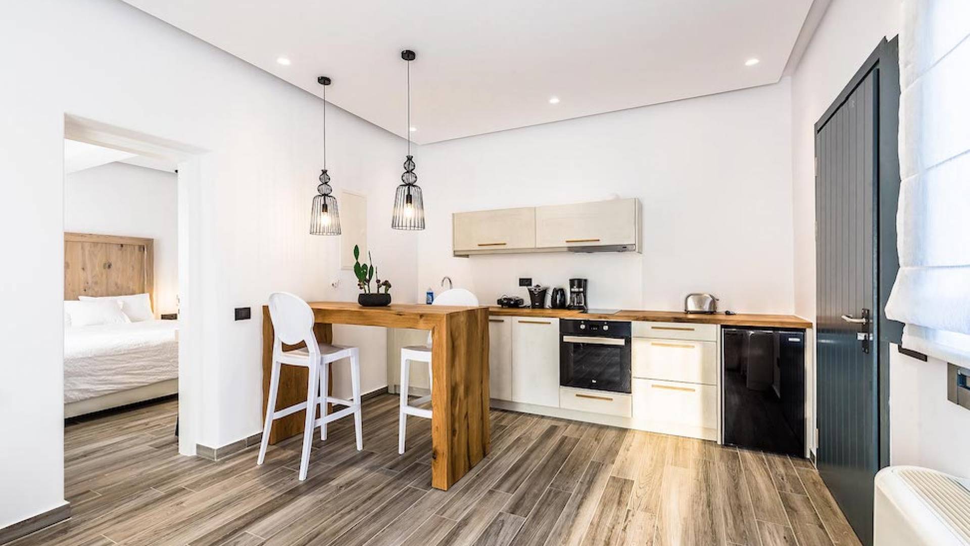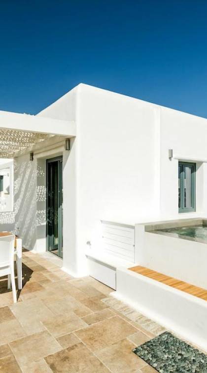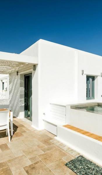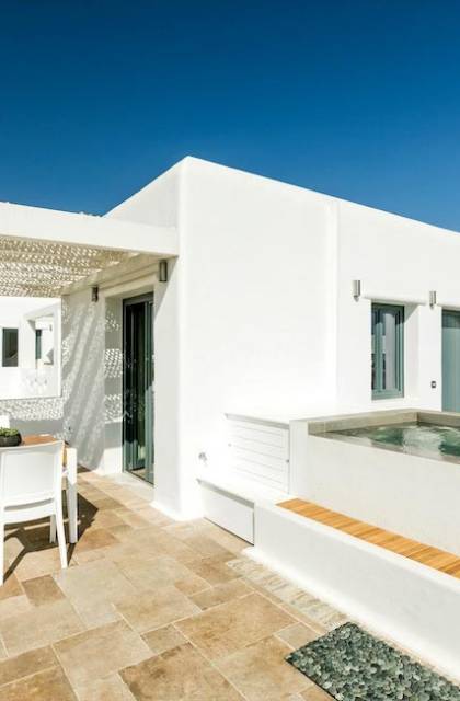 Die Portes Honeymoon Suites wurden entwickelt, um Liebhaber von purem Luxus und gutem Geschmack zu verwöhnen, und schaffen ein erstaunliches Gefühl von Intimität und Privatsphäre, ideal für Hochzeitsreisende oder Besucher, die das romantischste Erlebnis suchen. Geräumig und mit klaren Linien verfügen sie über ein ing-Size-Doppelbett, ein Badezimmer mit Dusche und ein offenes Wohnzimmer mit voll ausgestatteter Küche. Hier herrscht das Weiß der Ägäis vor, während modernes Dekor und Mobiliar die ideale Kulisse für die Flitterwochen Ihrer Träume schaffen. Genießen Sie Ihren eigenen Mini-Jet-Pool auf Ihrer privaten Veranda, die mit der unverwechselbaren kykladischen Architektur gestaltet ist, und genießen Sie die Aussicht auf die Ägäis und die Inselumgebung.