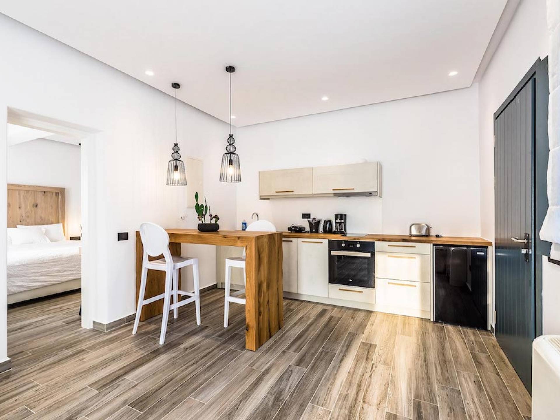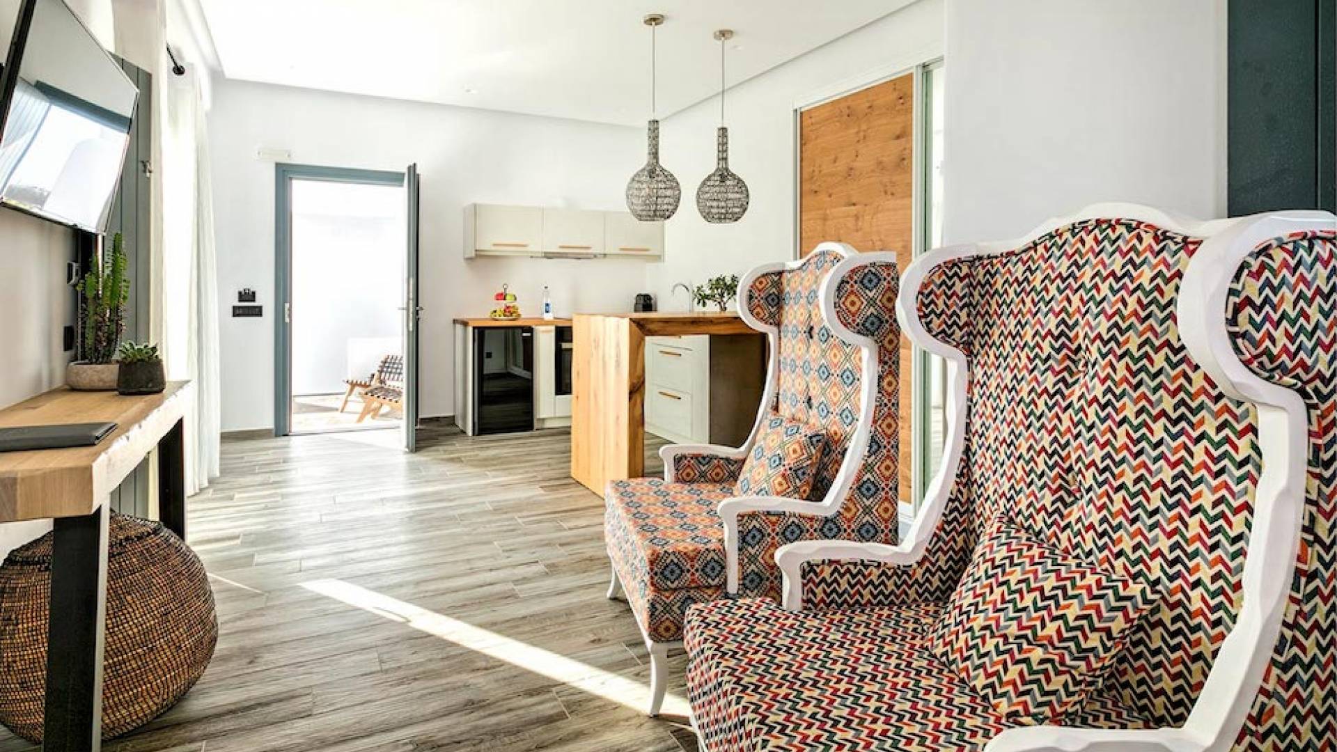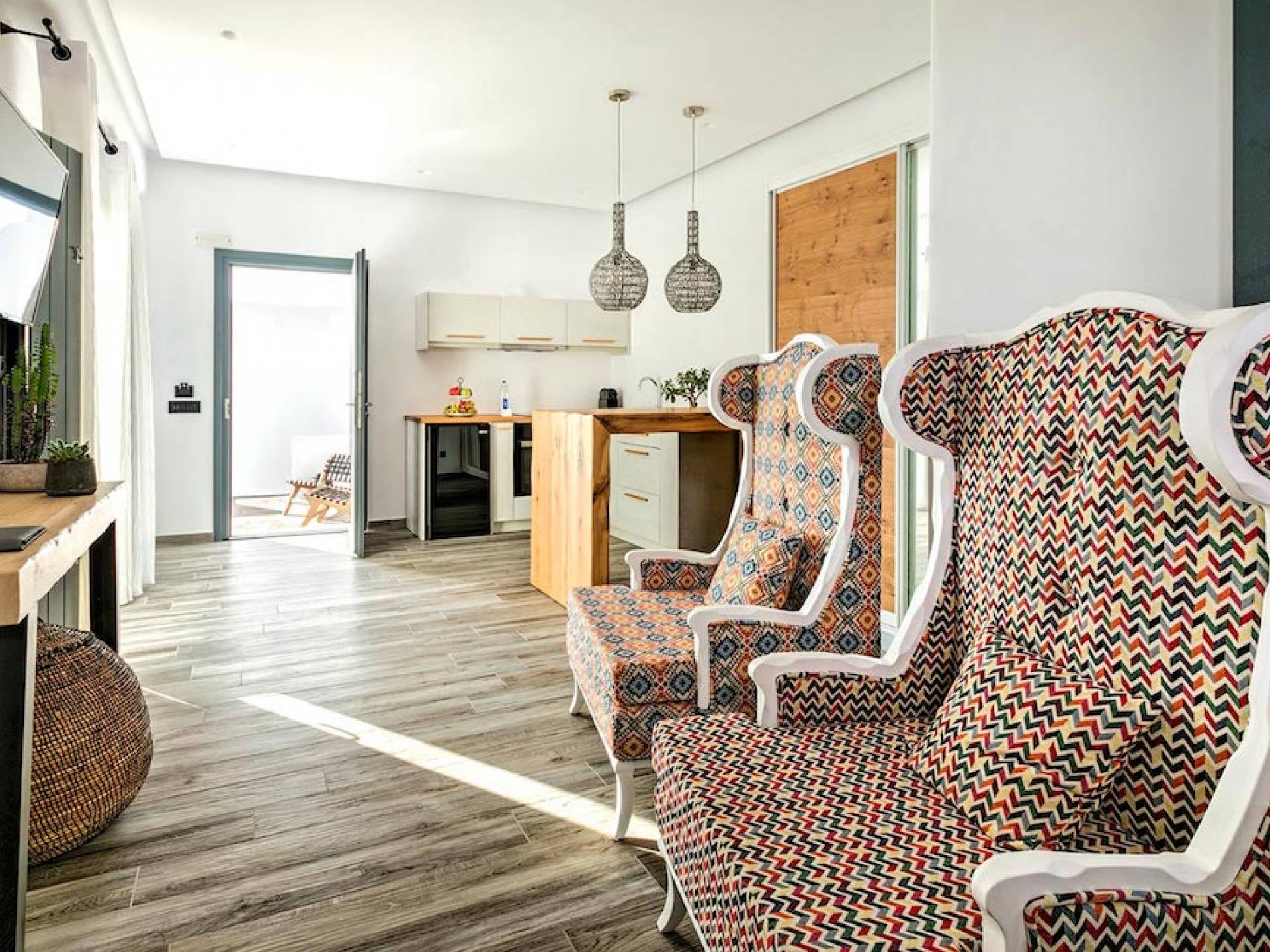 Die Portes Honeymoon Suites wurden entwickelt, um Liebhaber von purem Luxus und gutem Geschmack zu verwöhnen, und schaffen ein erstaunliches Gefühl von Intimität und Privatsphäre, ideal für Hochzeitsreisende oder Besucher, die das romantischste Erlebnis suchen. Geräumig und mit klaren Linien verfügen sie über ein ing-Size-Doppelbett, ein Badezimmer mit Dusche und ein offenes Wohnzimmer mit voll ausgestatteter Küche. Hier herrscht das Weiß der Ägäis vor, während modernes Dekor und Mobiliar die ideale Kulisse für die Flitterwochen Ihrer Träume schaffen. Genießen Sie Ihren eigenen Mini-Jet-Pool auf Ihrer privaten Veranda, die mit der unverwechselbaren kykladischen Architektur gestaltet ist, und genießen Sie die Aussicht auf die Ägäis und die Inselumgebung.