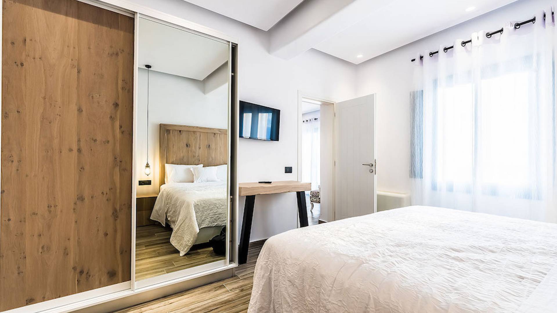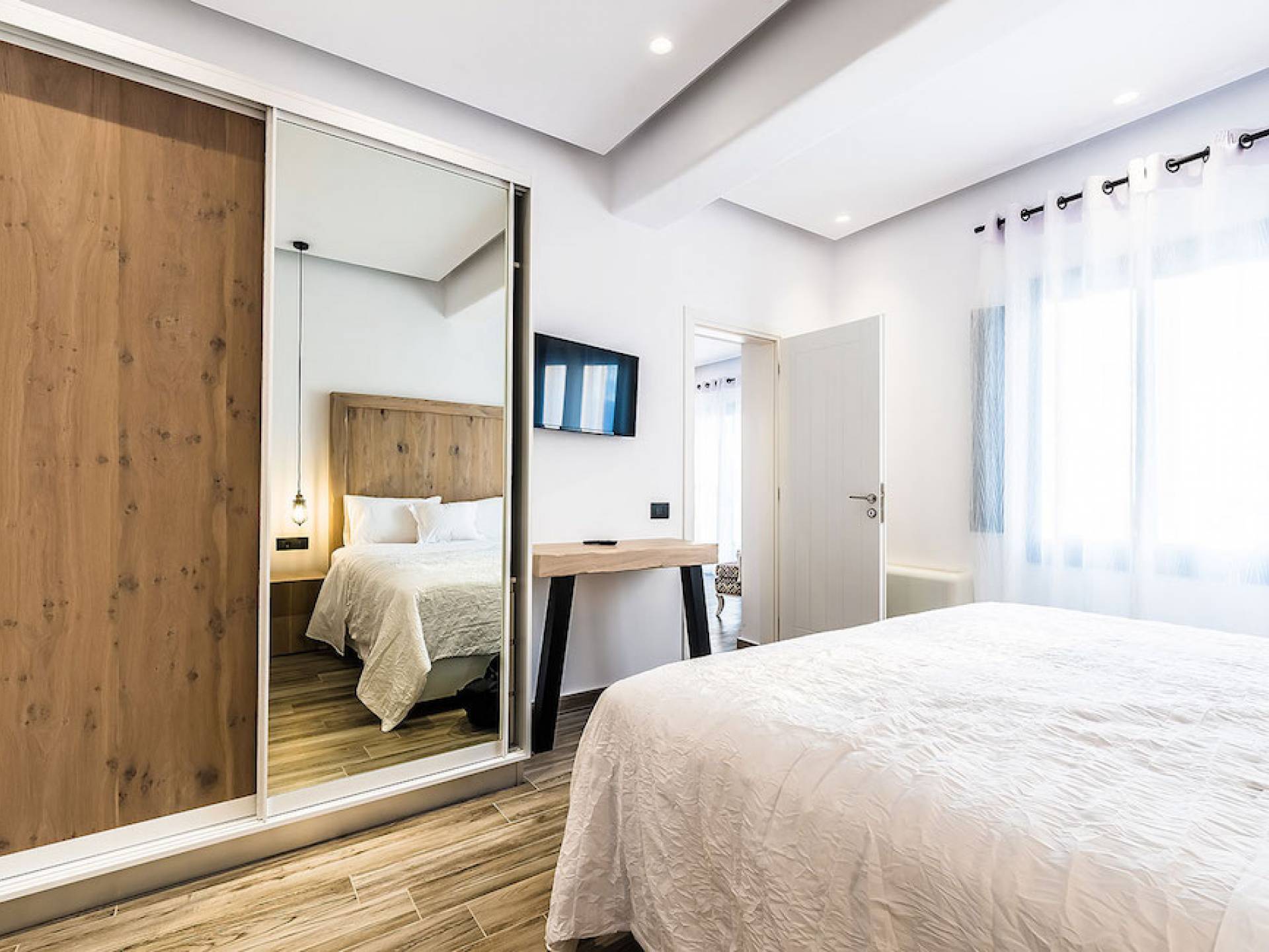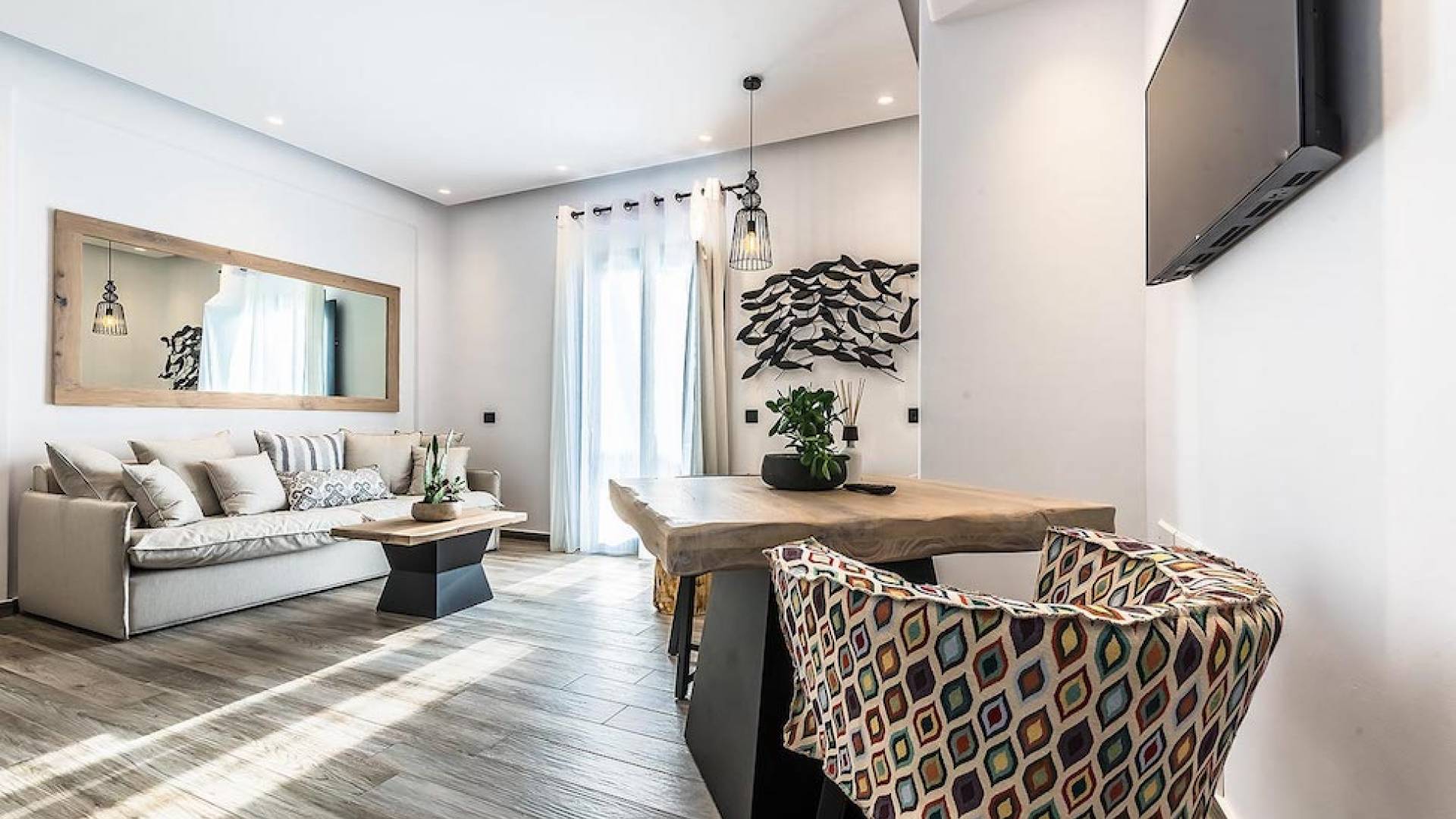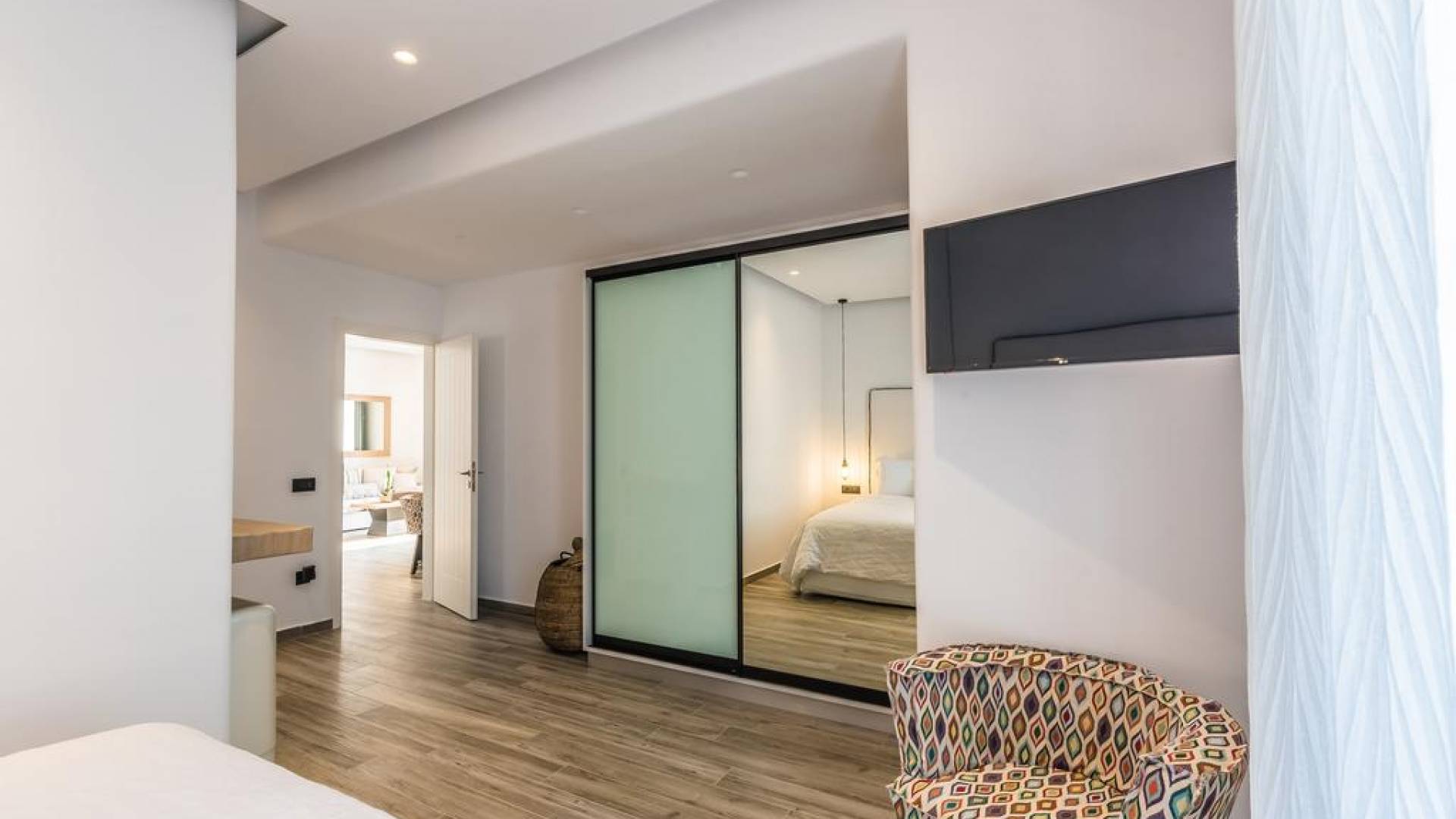 Die Portes Honeymoon Suites wurden entwickelt, um Liebhaber von purem Luxus und gutem Geschmack zu verwöhnen, und schaffen ein erstaunliches Gefühl von Intimität und Privatsphäre, ideal für Hochzeitsreisende oder Besucher, die das romantischste Erlebnis suchen. Geräumig und mit klaren Linien verfügen sie über ein ing-Size-Doppelbett, ein Badezimmer mit Dusche und ein offenes Wohnzimmer mit voll ausgestatteter Küche. Hier herrscht das Weiß der Ägäis vor, während modernes Dekor und Mobiliar die ideale Kulisse für die Flitterwochen Ihrer Träume schaffen. Genießen Sie Ihren eigenen Mini-Jet-Pool auf Ihrer privaten Veranda, die mit der unverwechselbaren kykladischen Architektur gestaltet ist, und genießen Sie die Aussicht auf die Ägäis und die Inselumgebung.