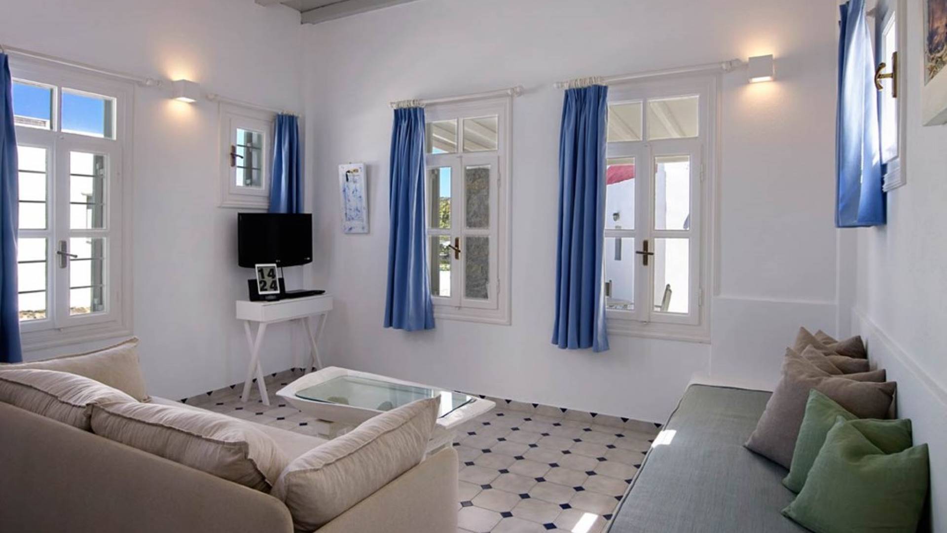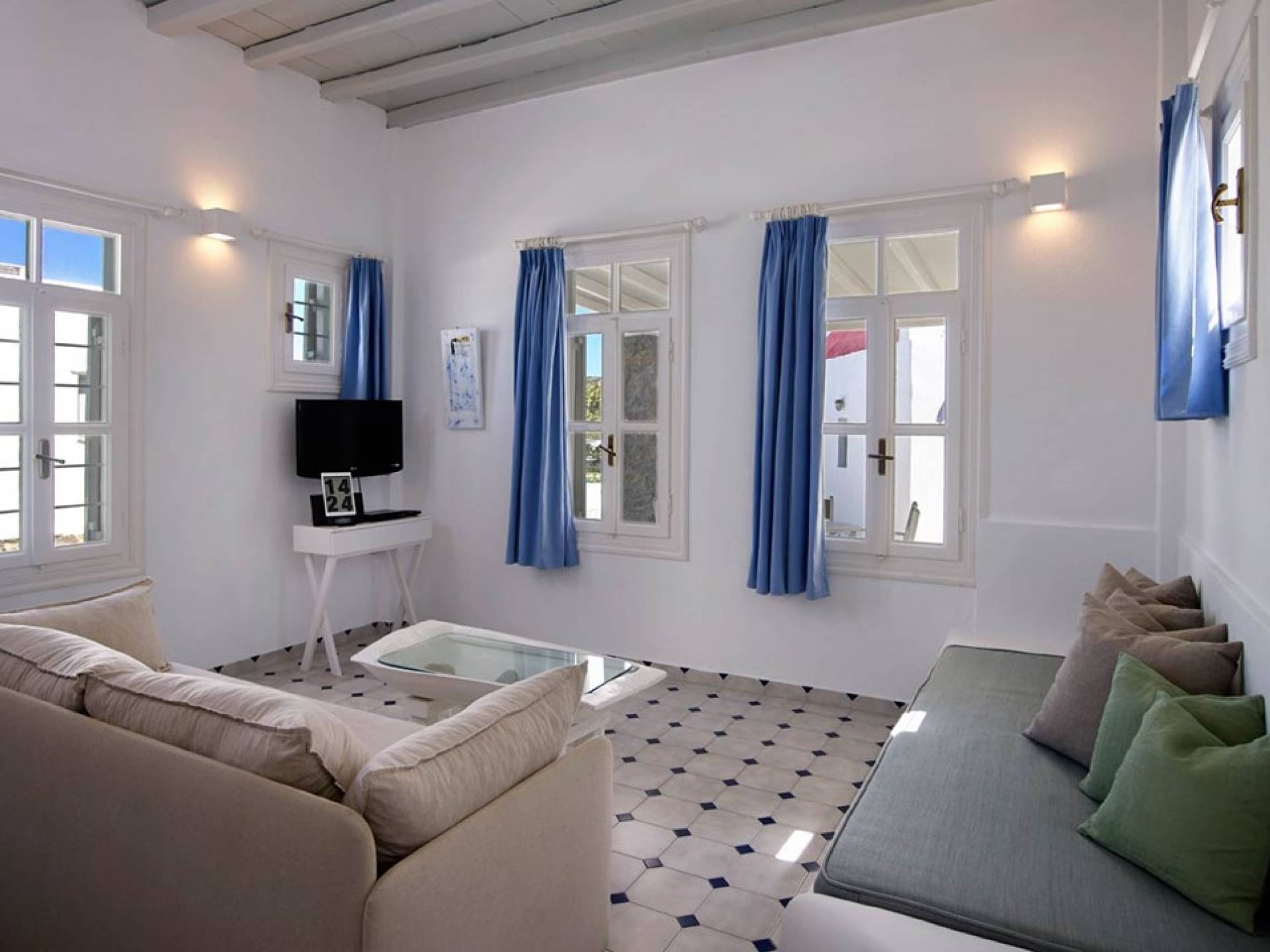 Leonis Summer Houses ist ein Komplex aus 4 Häusern, 3 Studios, 2 Suiten und 1 Villa, die nach der traditionellen mykonischen Architektur auf einem 5000 Quadratmeter großen Feld gebaut und so gestaltet wurden, dass die Privatsphäre geschützt und maximiert wird und Komfort seiner Gäste. Es ist in unebenen Ebenen gebaut, so dass alle Unterkünfte über private Veranden mit atemberaubendem Meerblick auf den Strand von Ornos, den Strand von Korfu und die Stadt Mykonos verfügen. Es ist ideal für Gäste, die nicht nur ein Hotelzimmer, sondern ein Erlebnis suchen.
