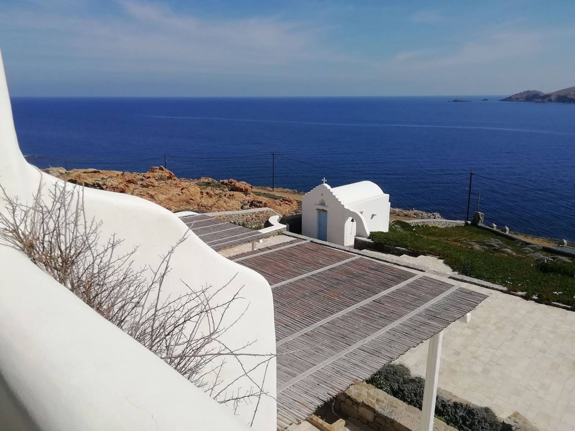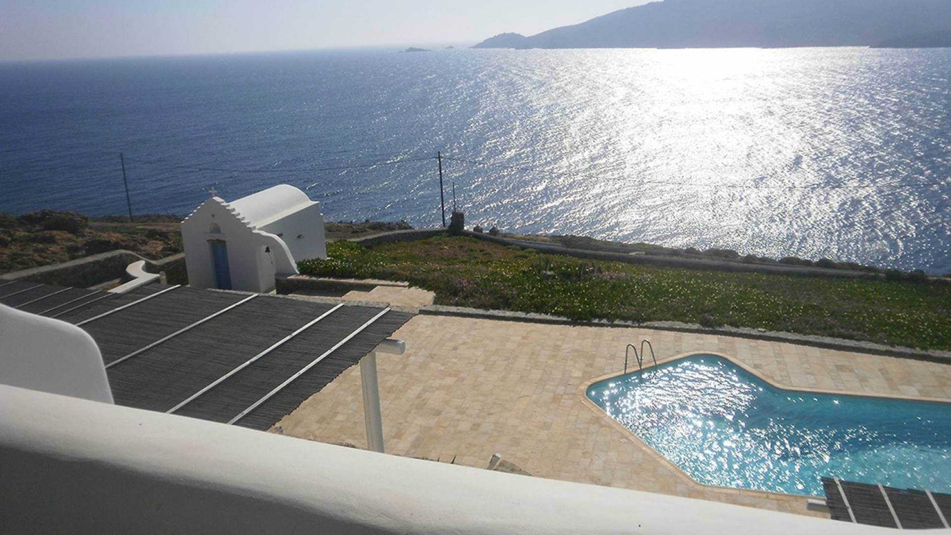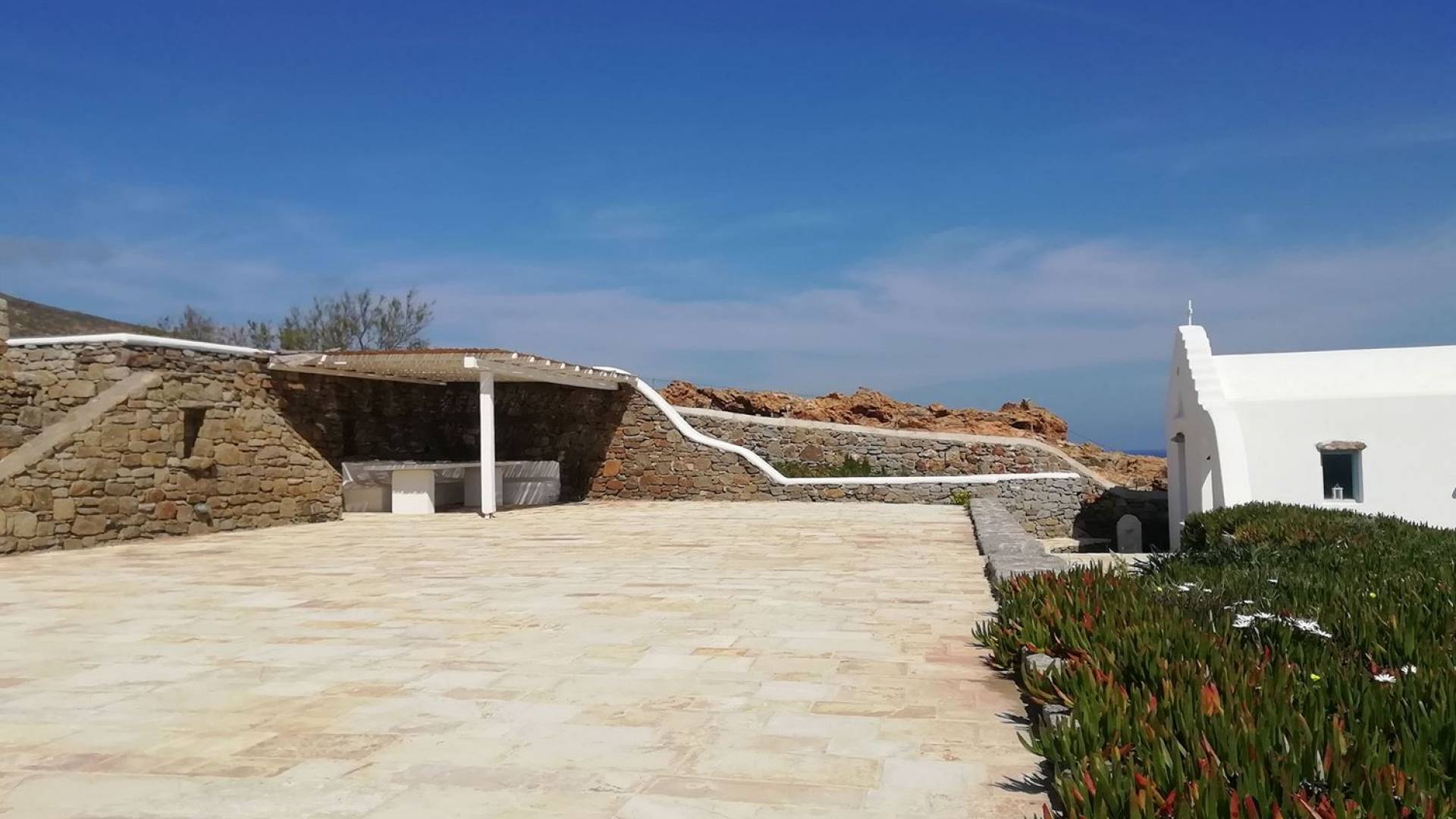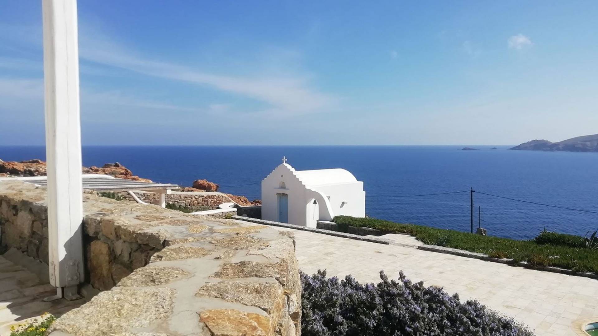 Die geräumige Poolterrasse ist perfekt für Dinnerpartys oder Hochzeiten! Was können sich ein paar mehr wünschen als weite, erstaunliche Aussichten, eine private kleine malerische Kirche und türkisfarbenes Wasser direkt vor ihrer wunderschönen Villa ... Nach intensiven mykonischen Nächten schätzen alle Gäste das Flair eines abgelegenen Zufluchtsorts und die atemberaubende Aussicht auf den Sonnenaufgang. p>