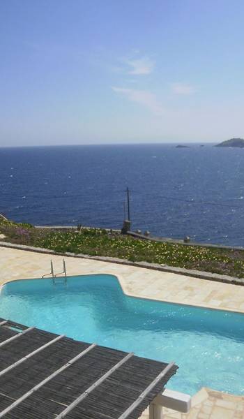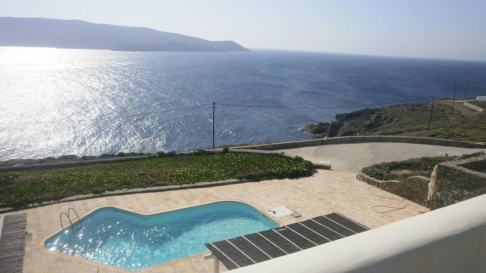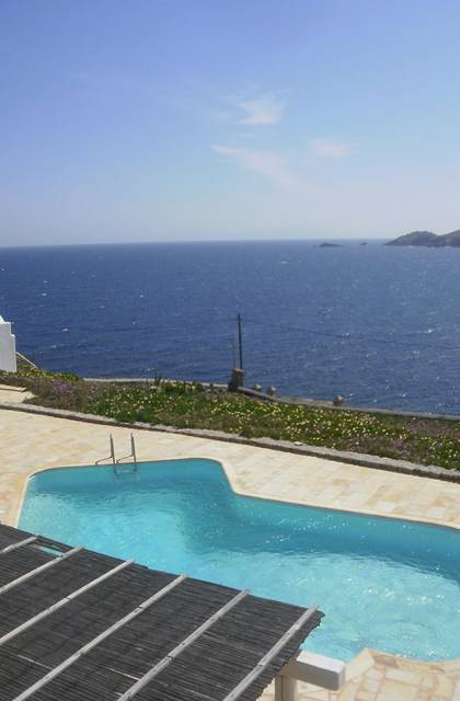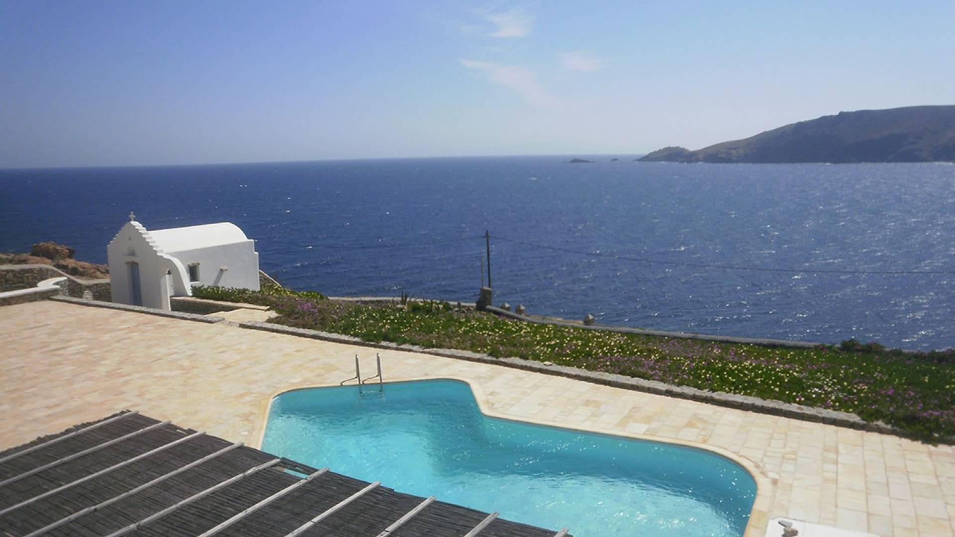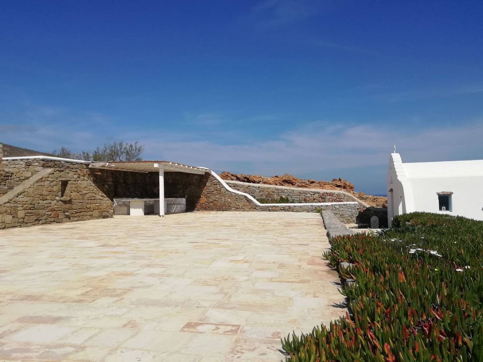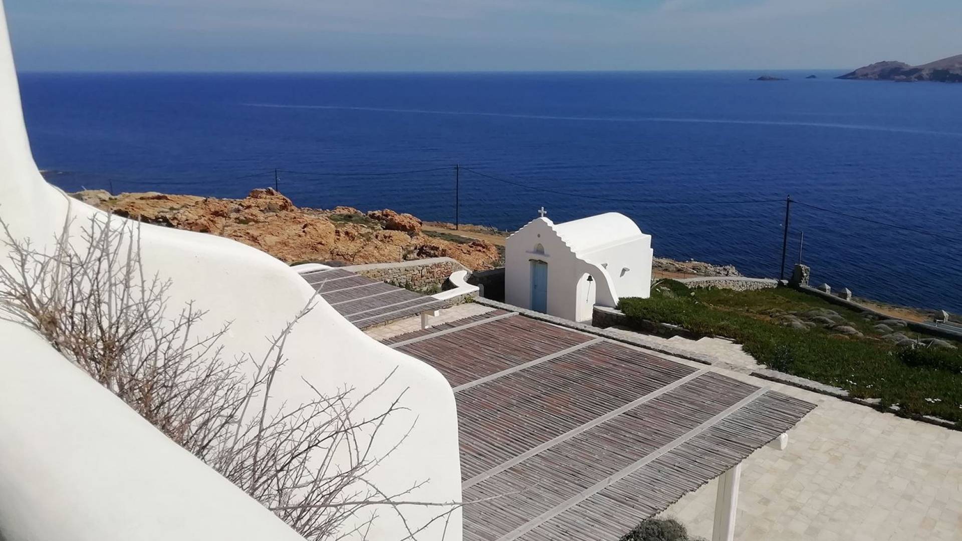 Die geräumige Poolterrasse ist perfekt für Dinnerpartys oder Hochzeiten! Was können sich ein paar mehr wünschen als weite, erstaunliche Aussichten, eine private kleine malerische Kirche und türkisfarbenes Wasser direkt vor ihrer wunderschönen Villa ... Nach intensiven mykonischen Nächten schätzen alle Gäste das Flair eines abgelegenen Zufluchtsorts und die atemberaubende Aussicht auf den Sonnenaufgang. p>