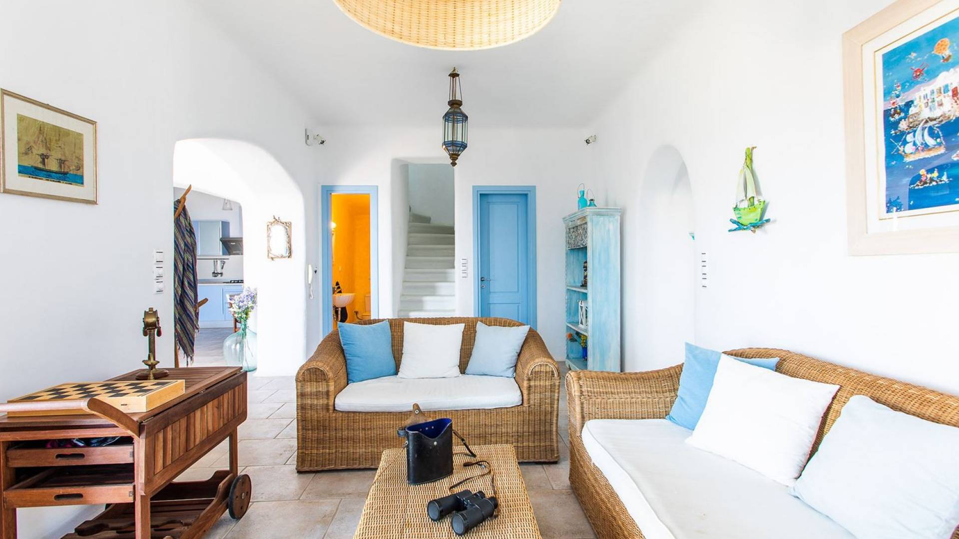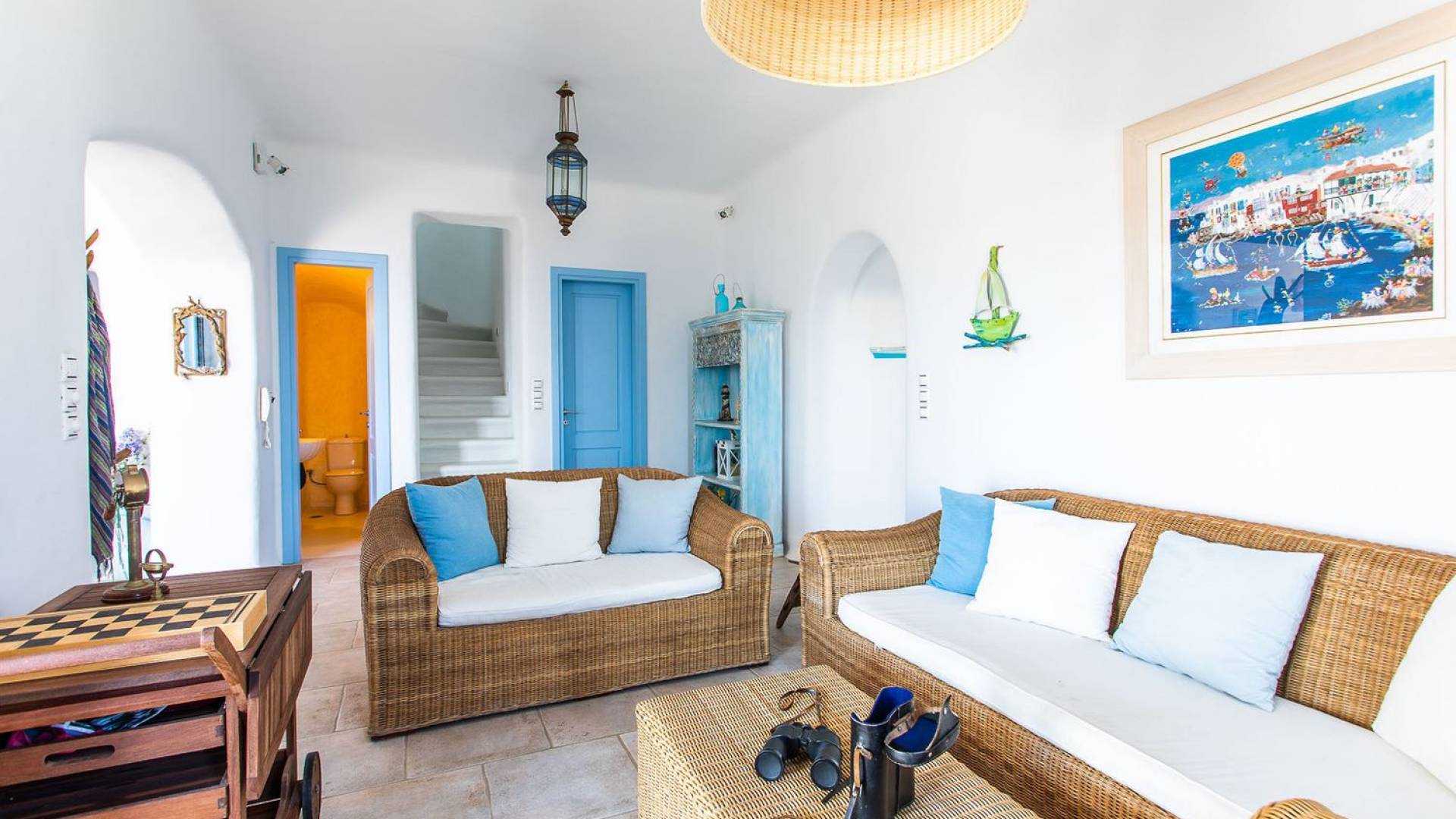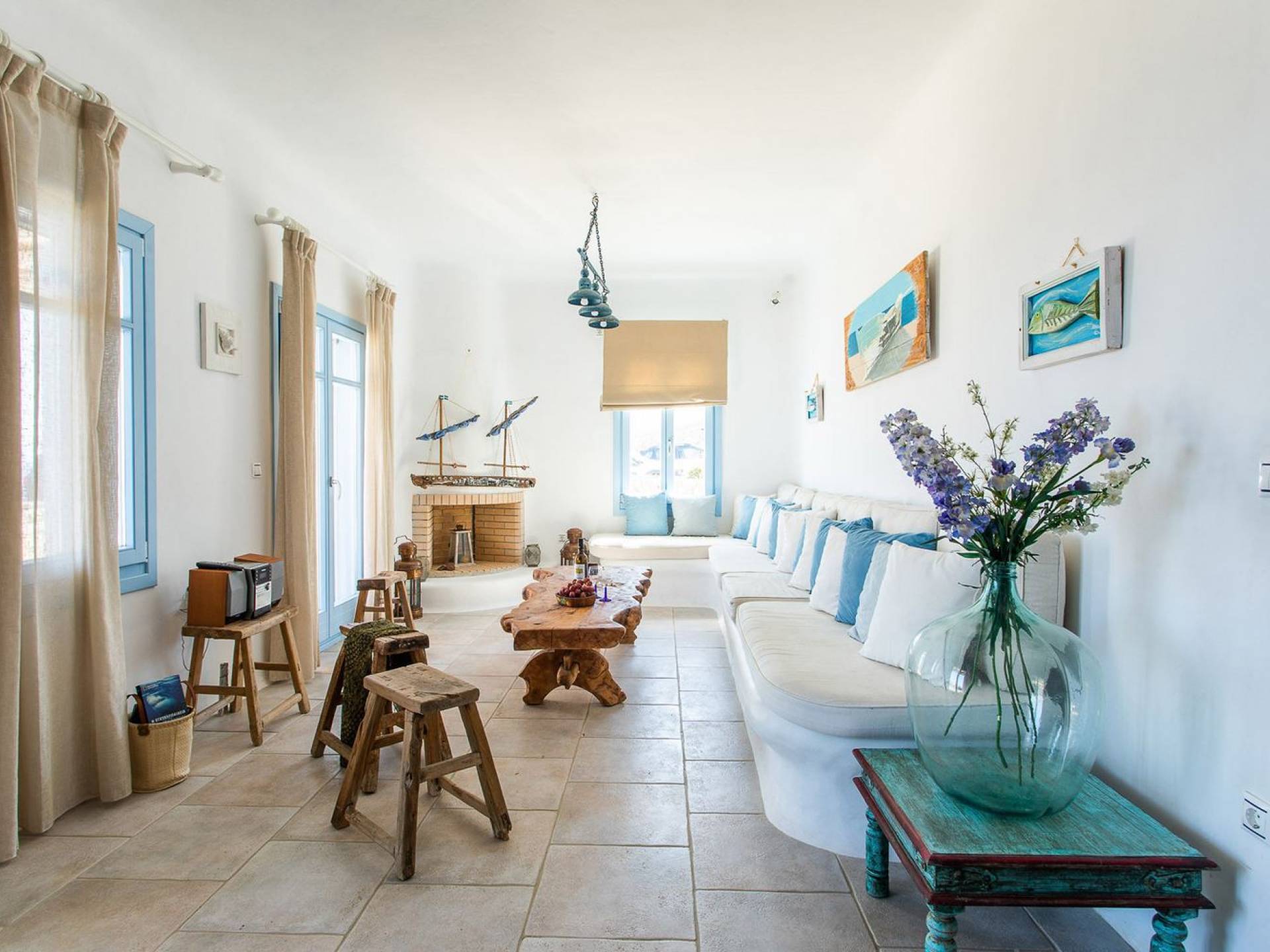Die Villa befindet sich im östlichen Teil von Mykonos und bietet einen Postkarten-Panoramablick auf die Insel Tragonisi und andere Inseln wie Naxos, Koufonisia und Ikaria. Verpassen Sie nicht einen kurzen Ausflug zum unbewohnten, felsigen Tragonisi, einem der geschützten Naturschutzgebiete und Zufluchtsorte für die Mittelmeerrobbe Monachus monachus. Wenn Sie ein unvergessliches und lohnendes Erlebnis wünschen, können Sie in den azurblauen Gewässern tauchen und schnorcheln, die Höhlen und Grotten der Insel erkunden oder an ihrem einsamen Strand entspannen.