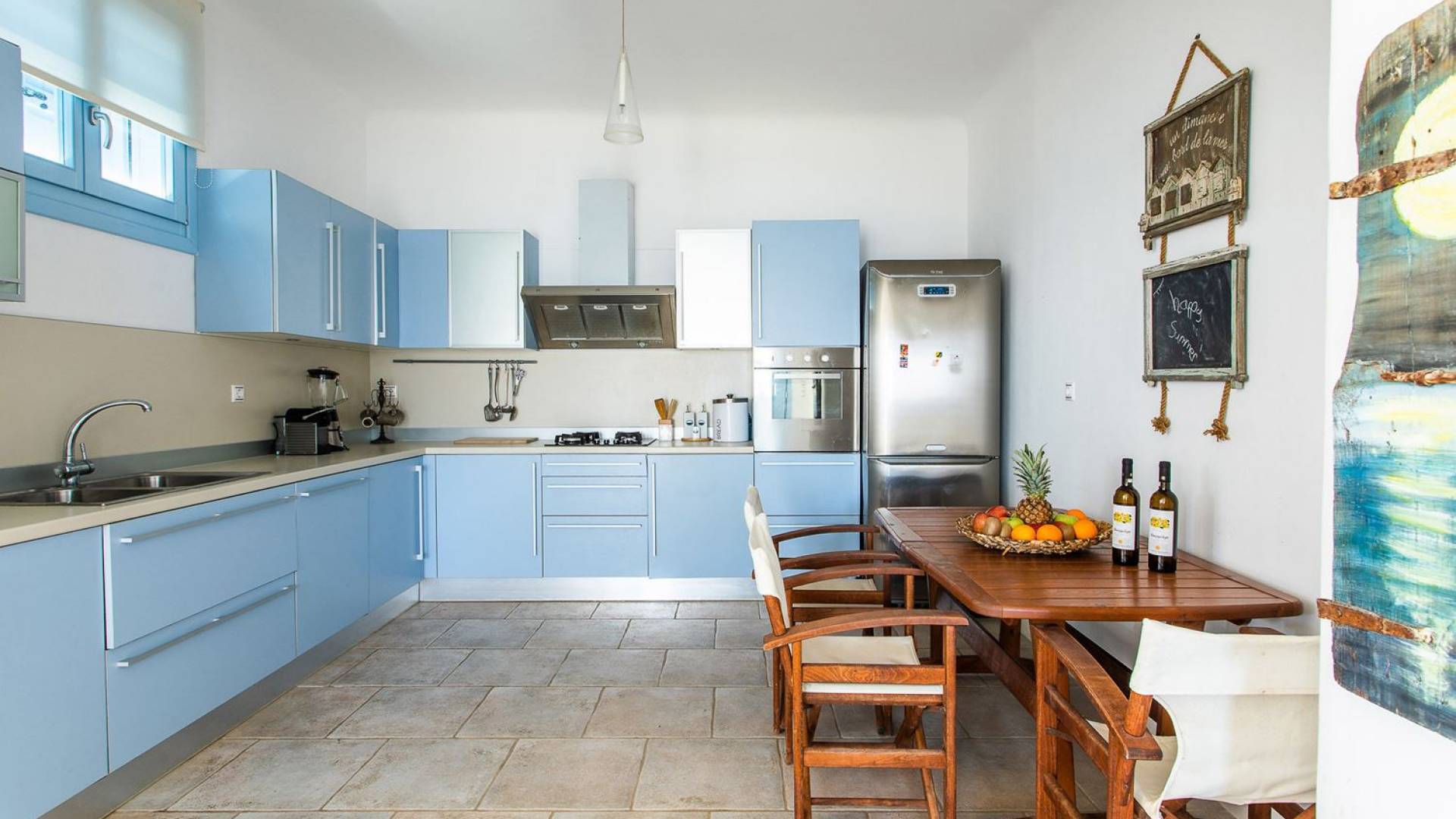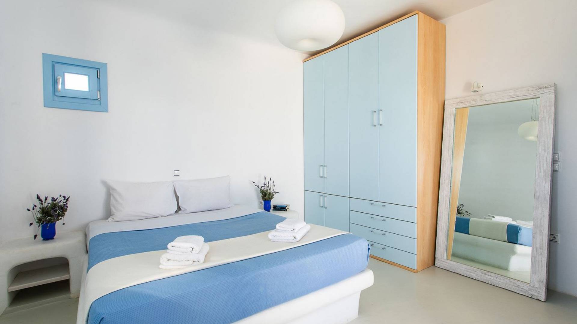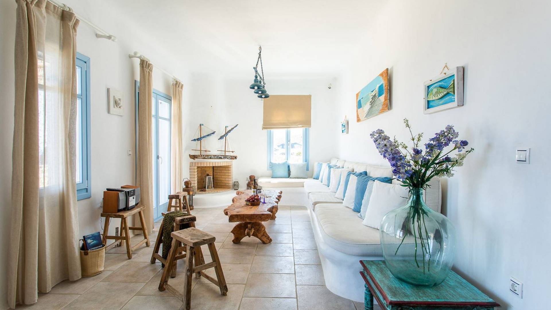 Die Villa befindet sich im östlichen Teil von Mykonos und bietet einen Postkarten-Panoramablick auf die Insel Tragonisi und andere Inseln wie Naxos, Koufonisia und Ikaria. Verpassen Sie nicht einen kurzen Ausflug zum unbewohnten, felsigen Tragonisi, einem der geschützten Naturschutzgebiete und Zufluchtsorte für die Mittelmeerrobbe Monachus monachus. Wenn Sie ein unvergessliches und lohnendes Erlebnis wünschen, können Sie in den azurblauen Gewässern tauchen und schnorcheln, die Höhlen und Grotten der Insel erkunden oder an ihrem einsamen Strand entspannen.
