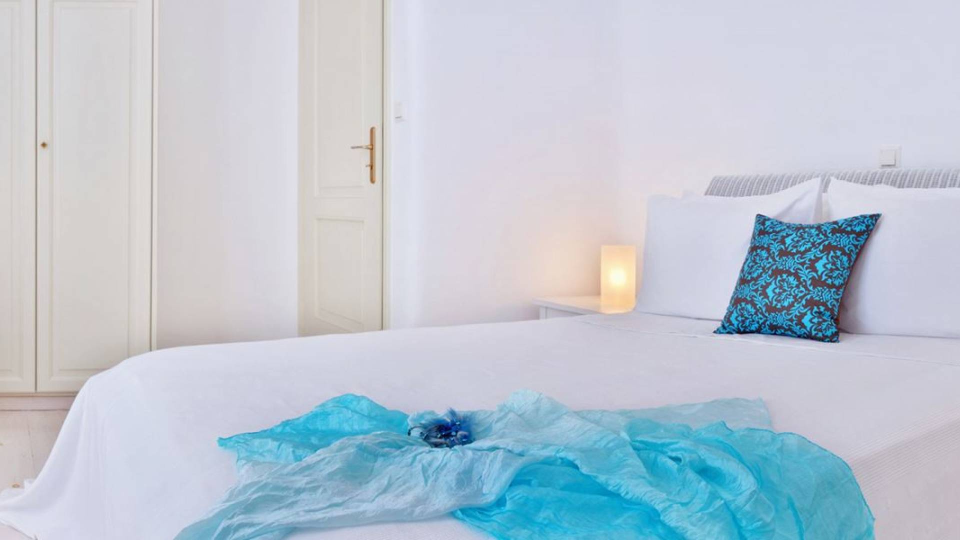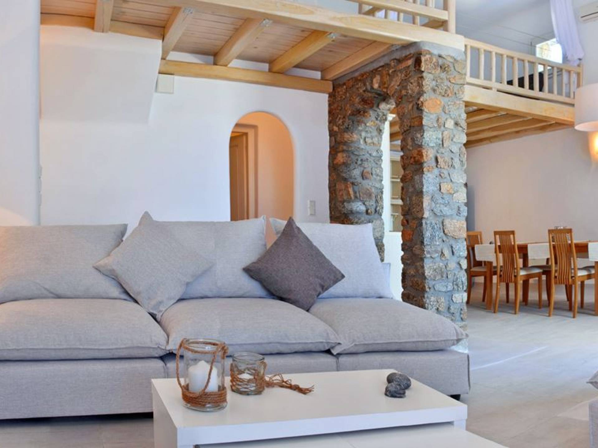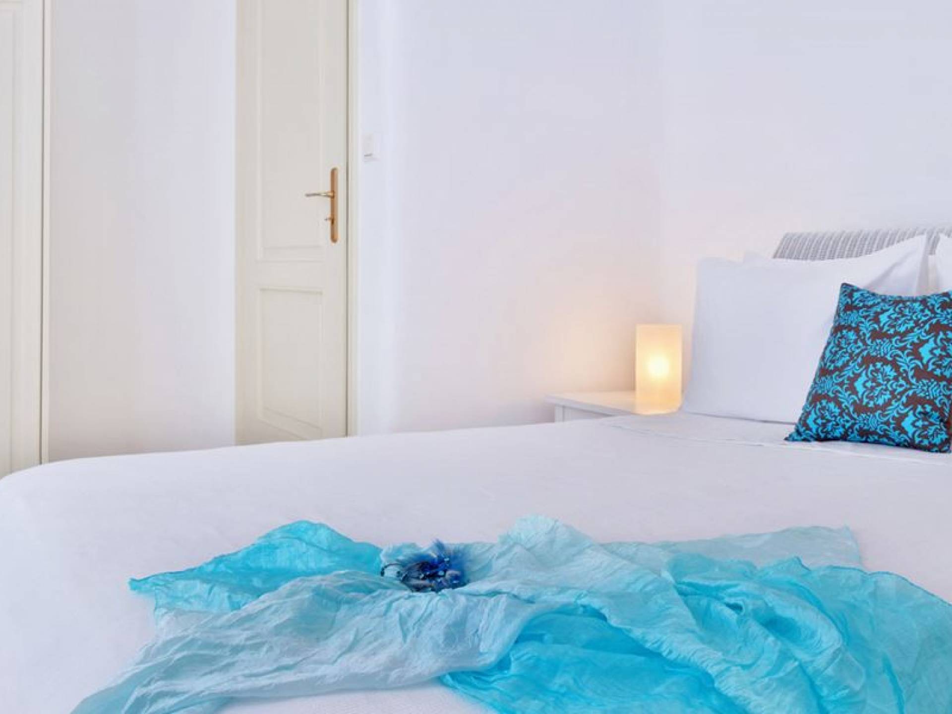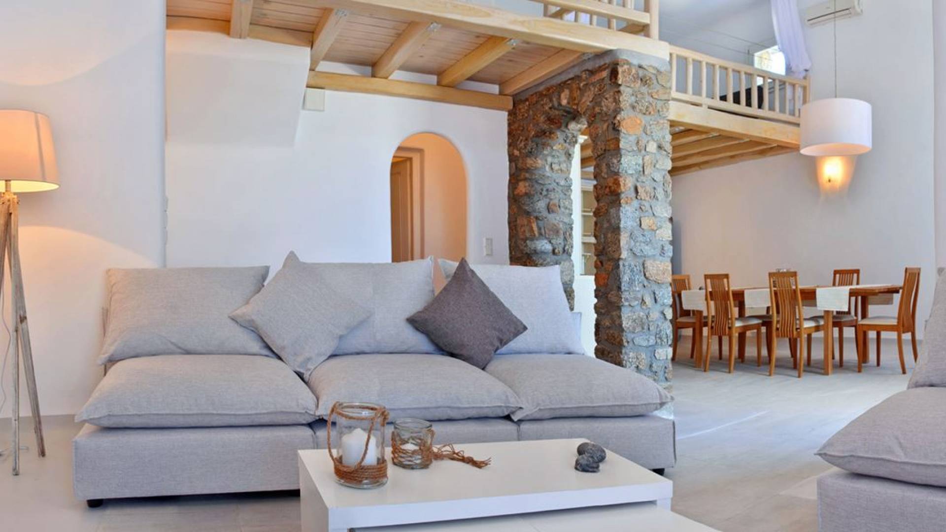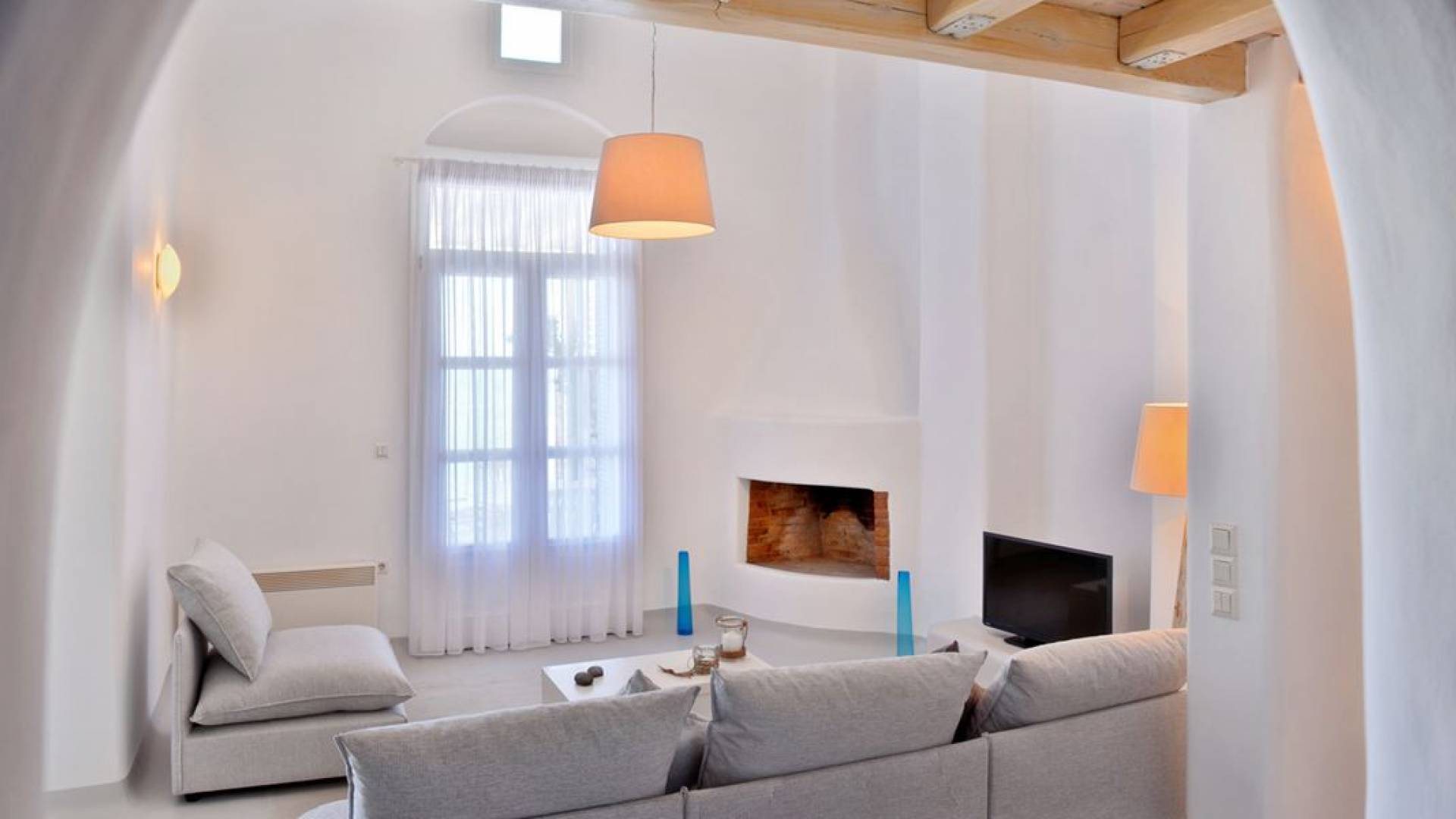 Schlichtheit und Eleganz sind die Elemente, die überall widerhallen, während die schillernde Palette von Mykonos in jedem Haus von innen nach außen den Ton angibt, wobei Weiß die Szene dominiert, während die zuckersüßen Pastelltöne ihre besondere Note hinzufügen. Die Villa Thelgo ist ohne Zweifel der perfekte Ort, um sich zurückzulehnen und bequem zu entspannen, während Sie sich den Freuden von Mykonos hingeben.