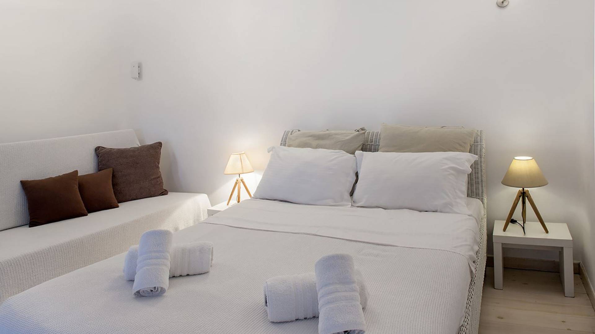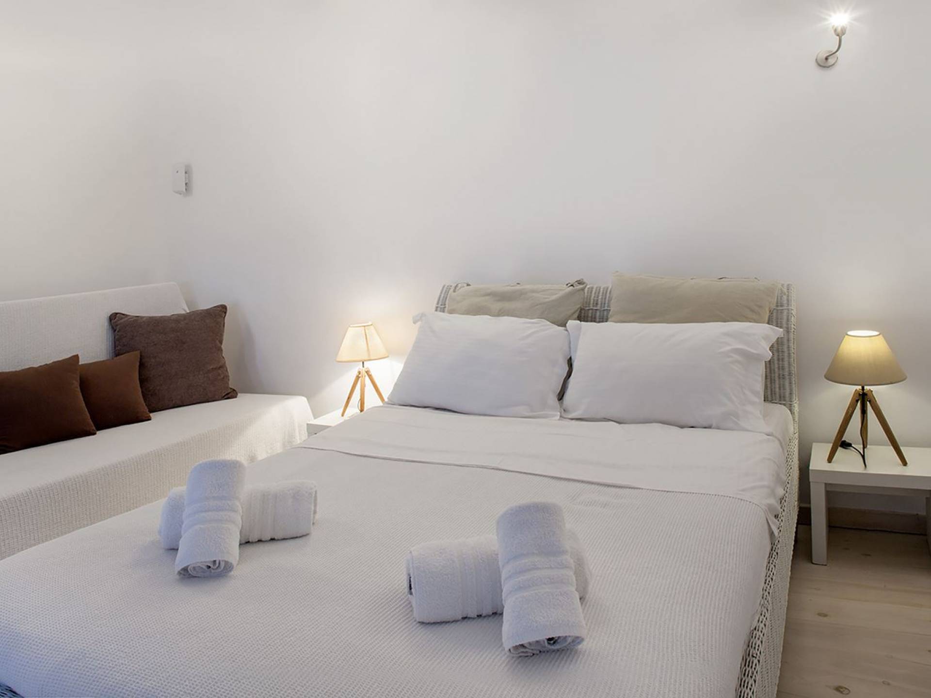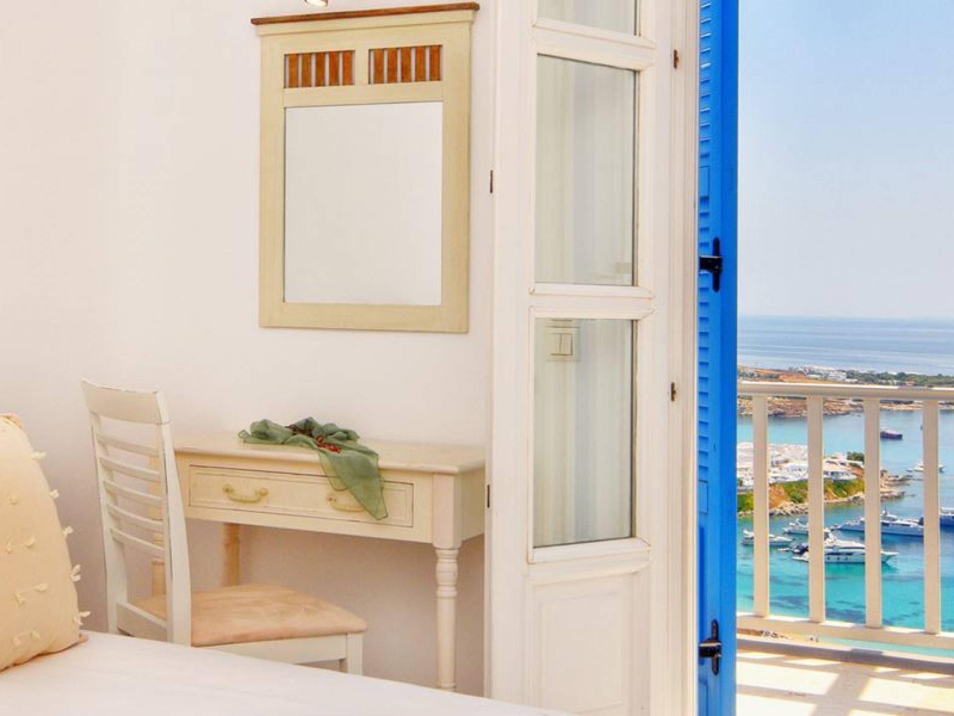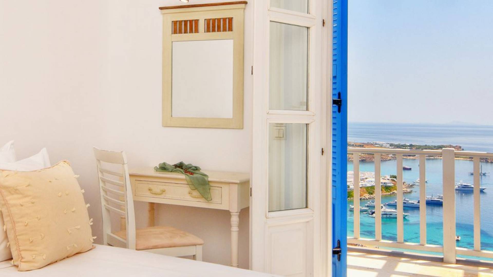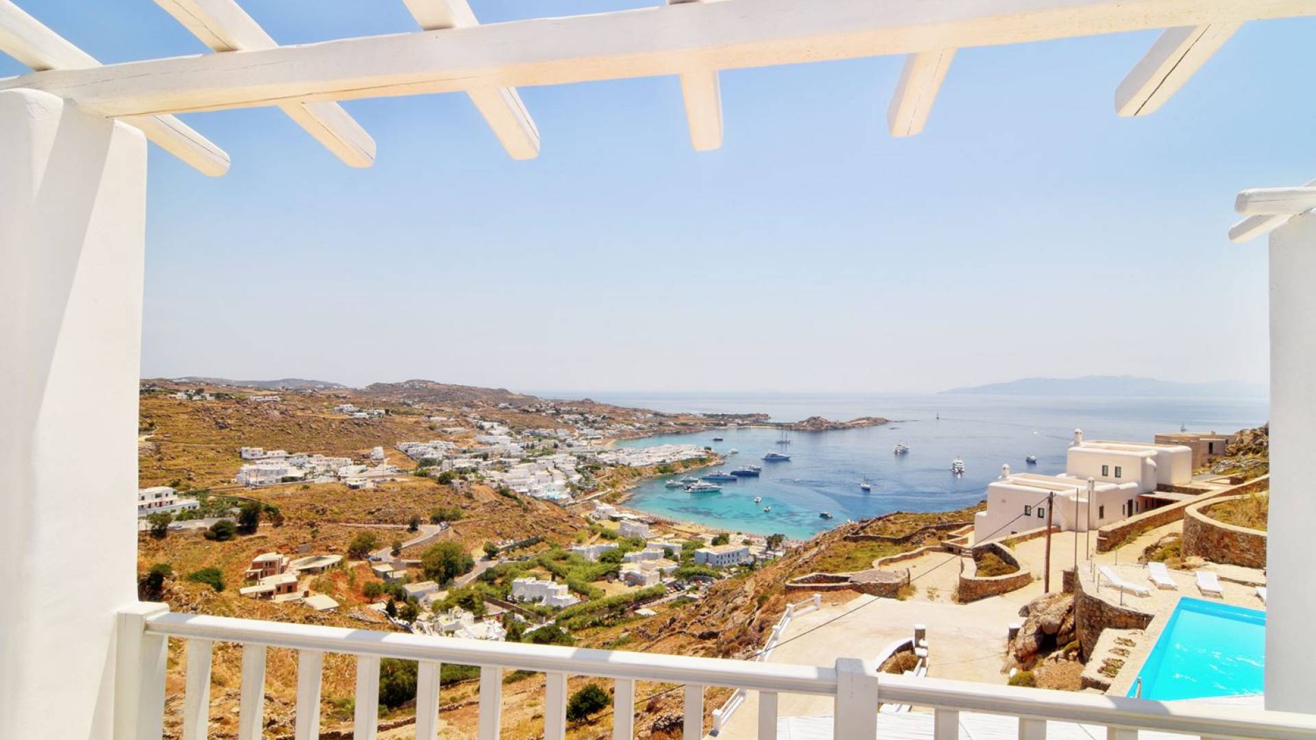 Schlichtheit und Eleganz sind die Elemente, die überall widerhallen, während die schillernde Palette von Mykonos in jedem Haus von innen nach außen den Ton angibt, wobei Weiß die Szene dominiert, während die zuckersüßen Pastelltöne ihre besondere Note hinzufügen. Die Villa Thelgo ist ohne Zweifel der perfekte Ort, um sich zurückzulehnen und bequem zu entspannen, während Sie sich den Freuden von Mykonos hingeben.