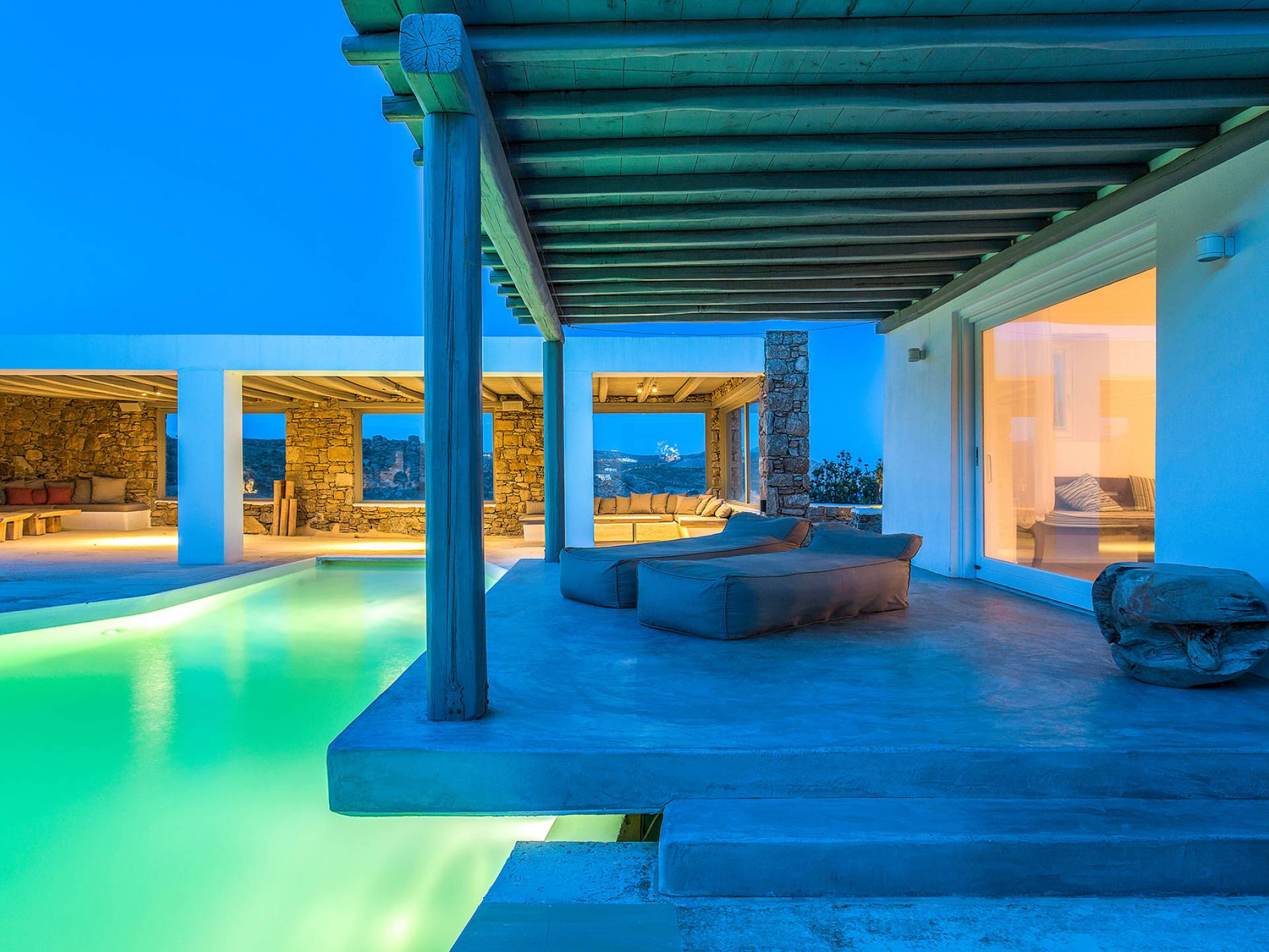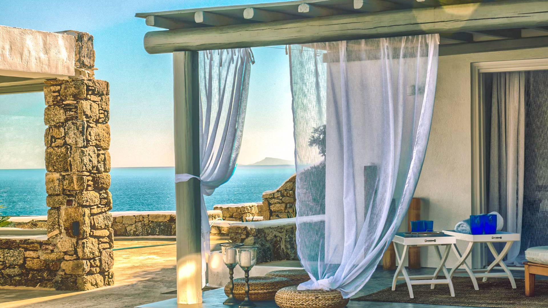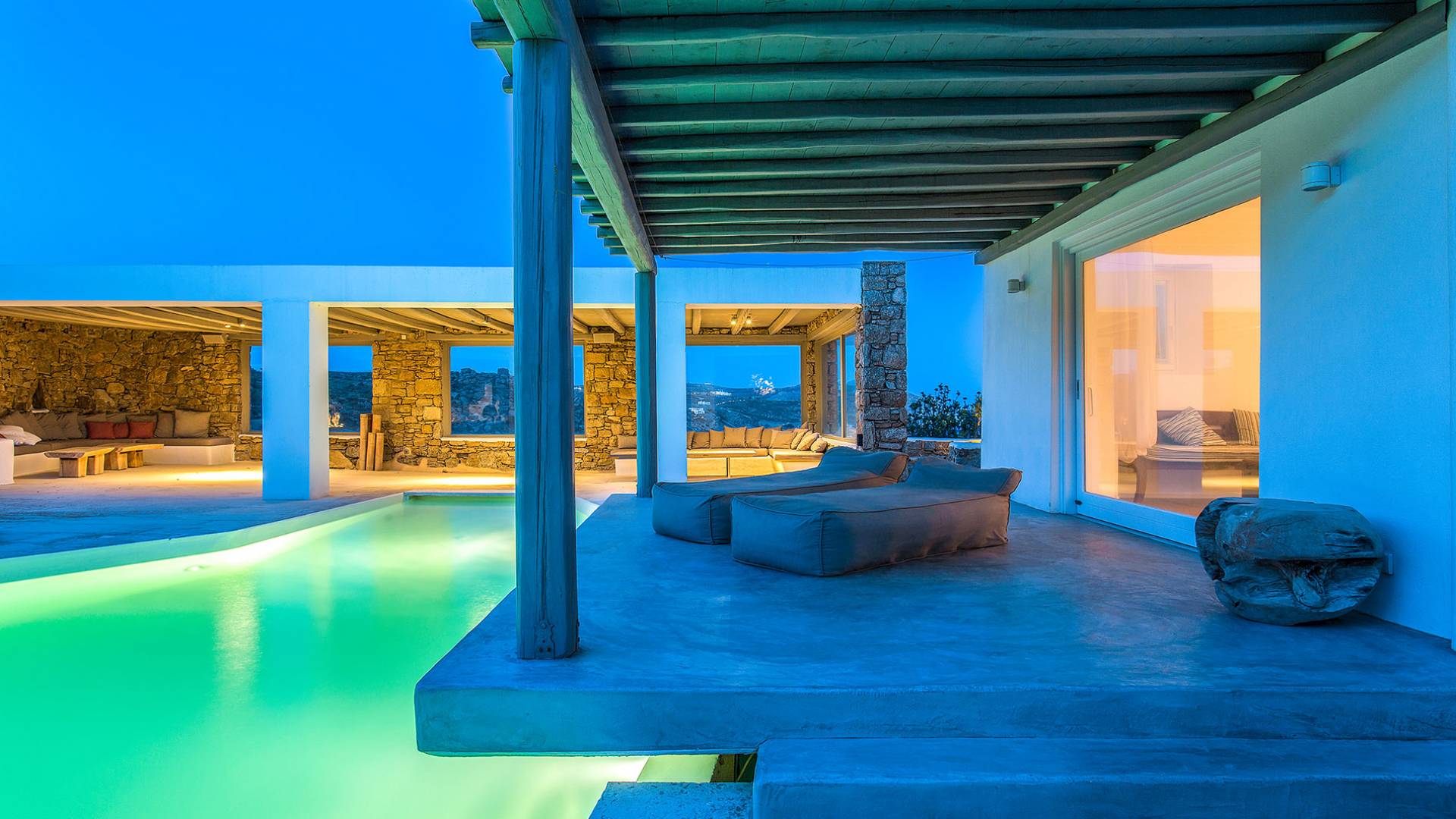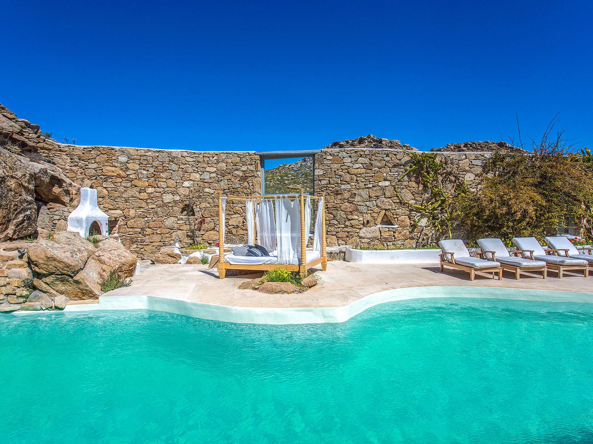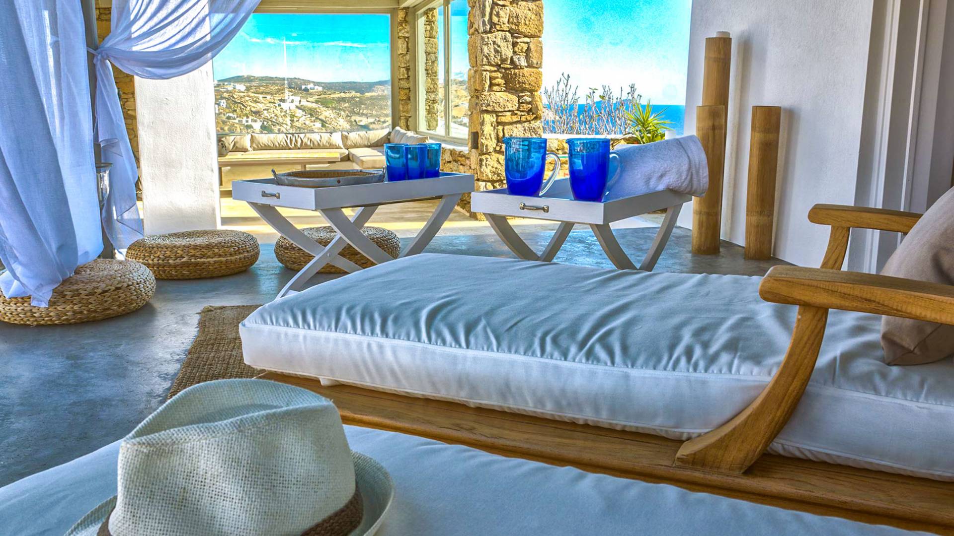 Villa Delilah Mykonos in Pyrgi ist eine luxuriöse 260 Quadratmeter große Villa, ganz in der Nähe des bekannten Super Paradise.