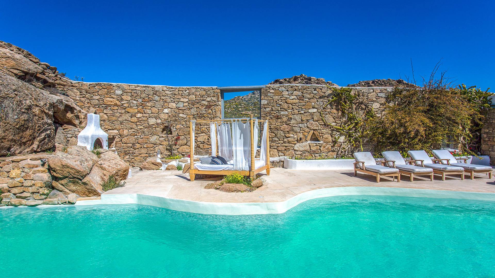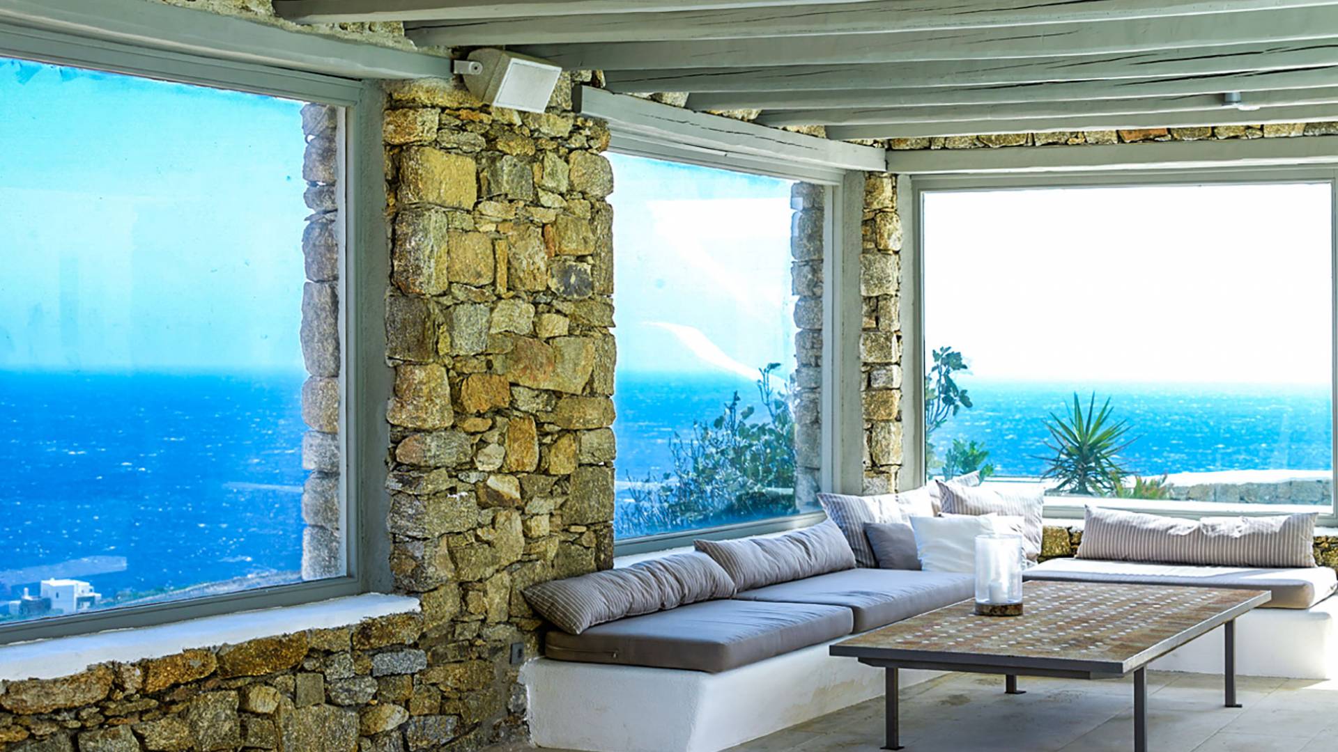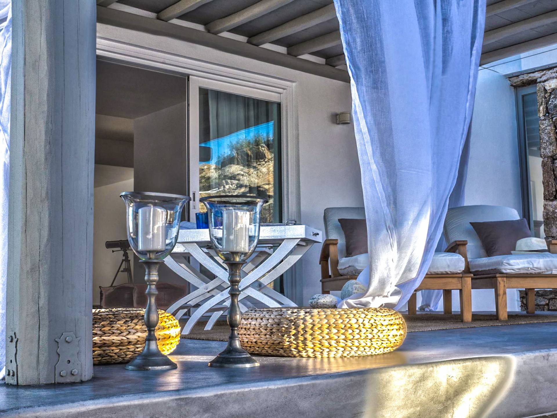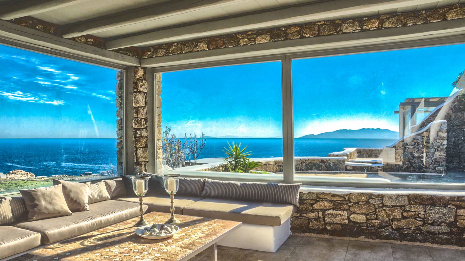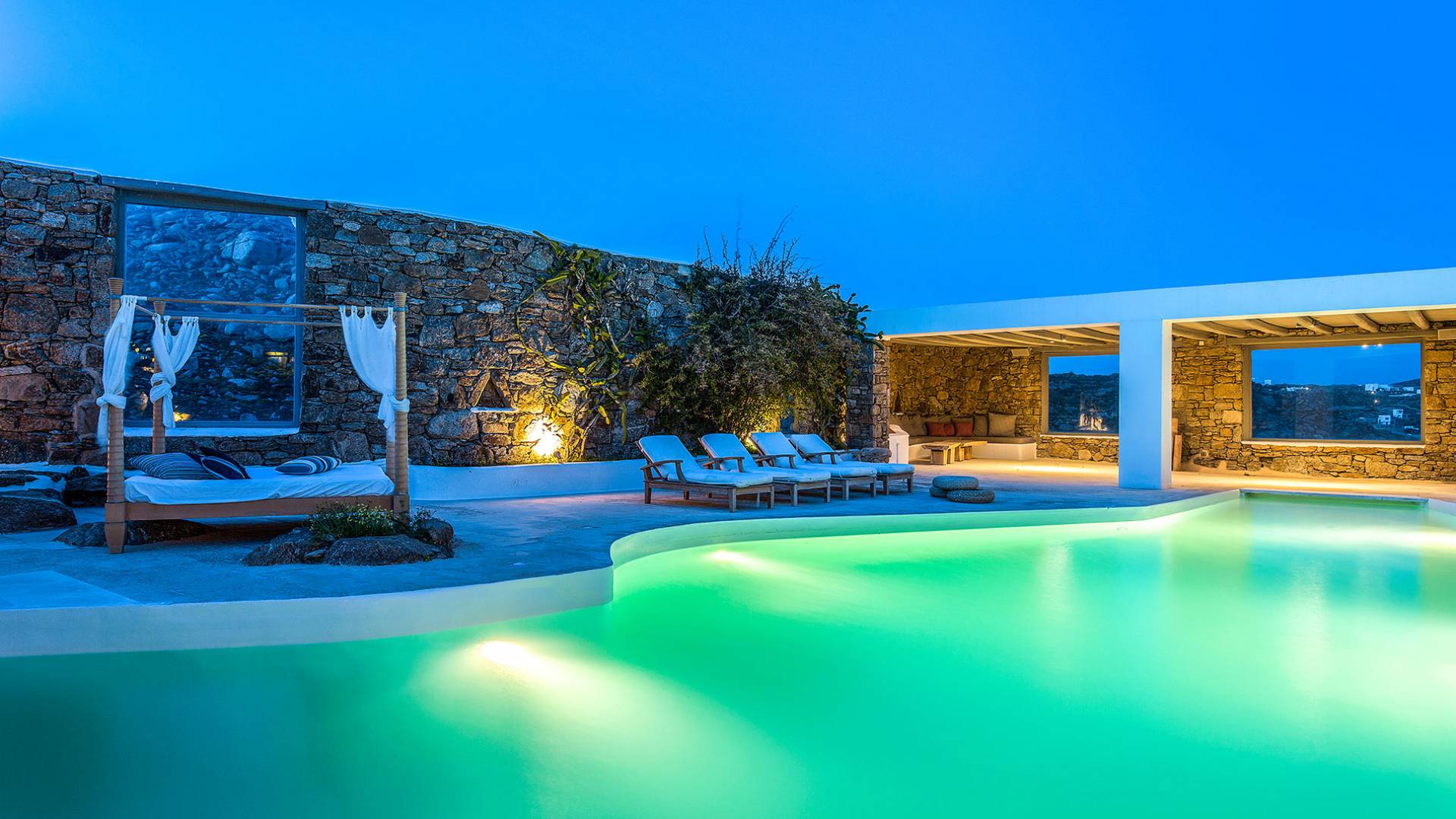 Villa Delilah Mykonos in Pyrgi ist eine luxuriöse 260 Quadratmeter große Villa, ganz in der Nähe des bekannten Super Paradise.