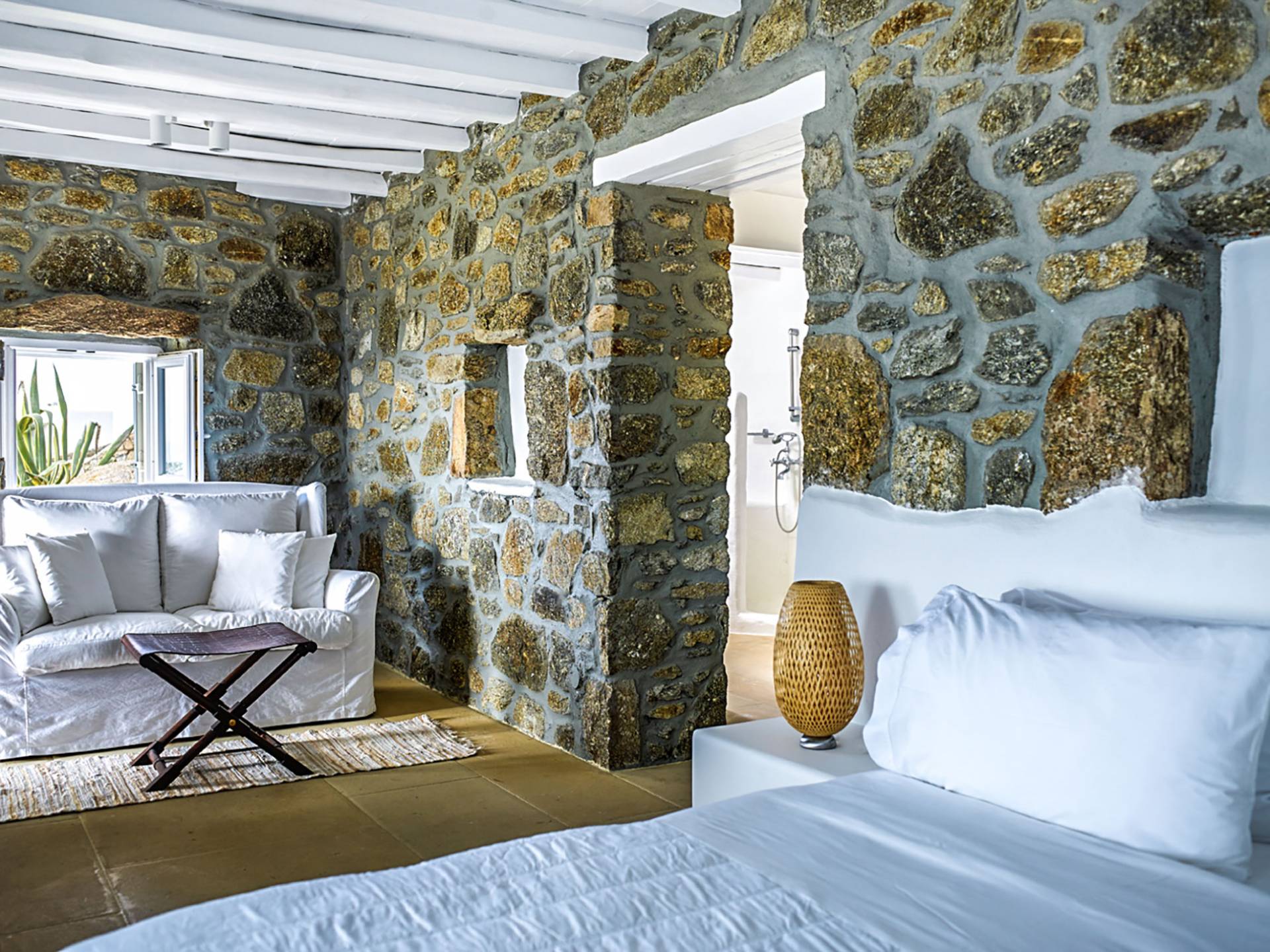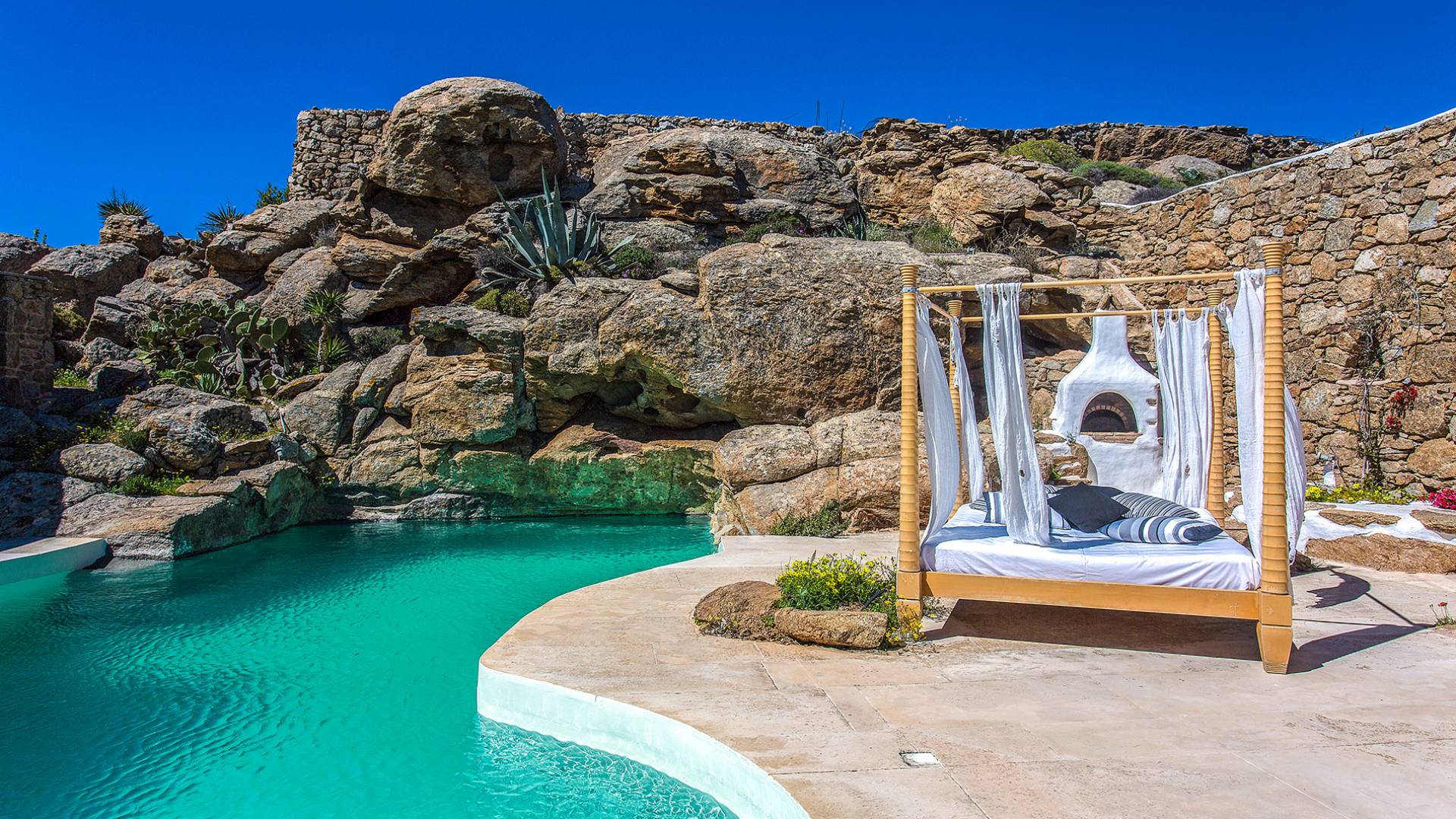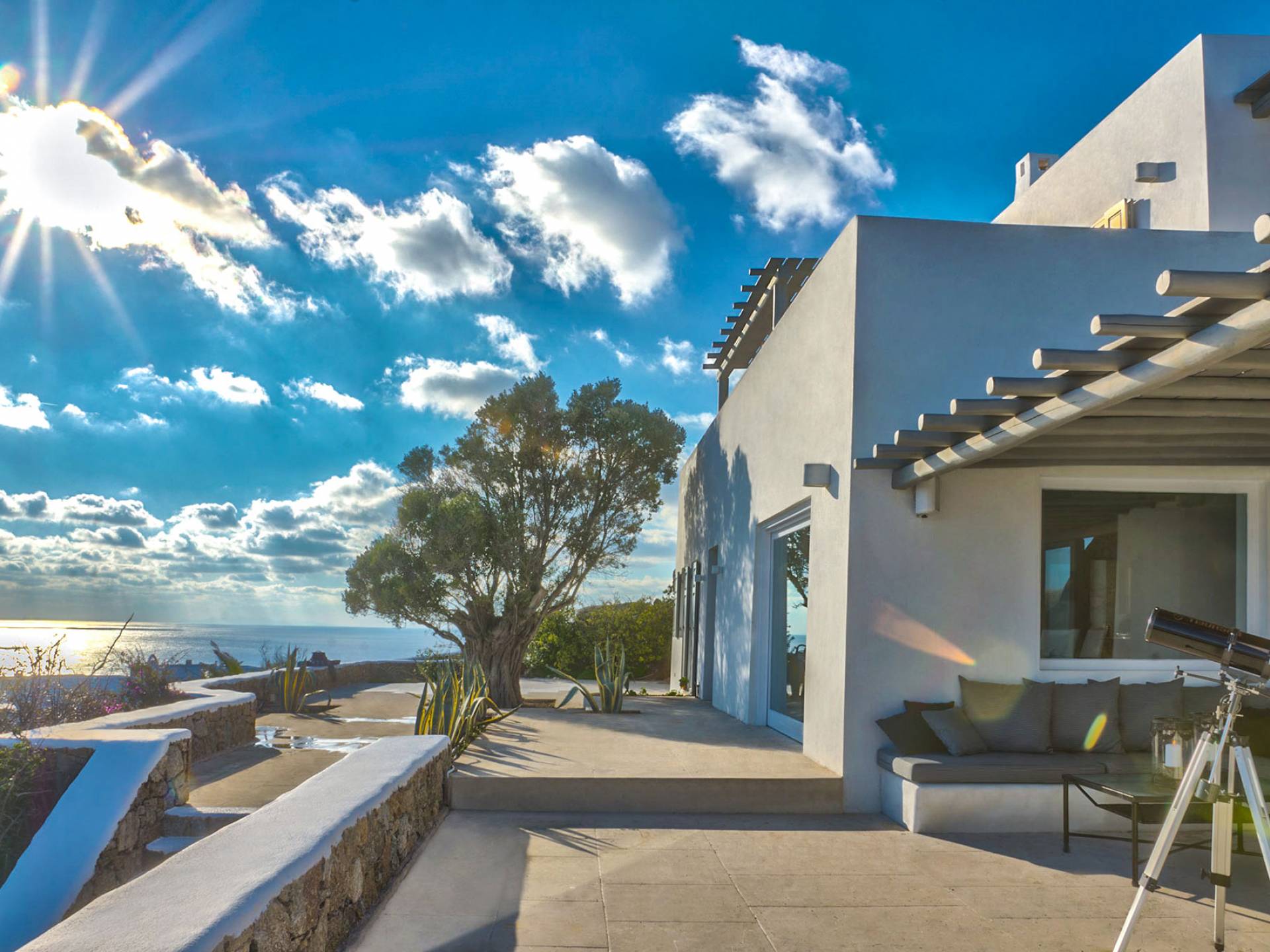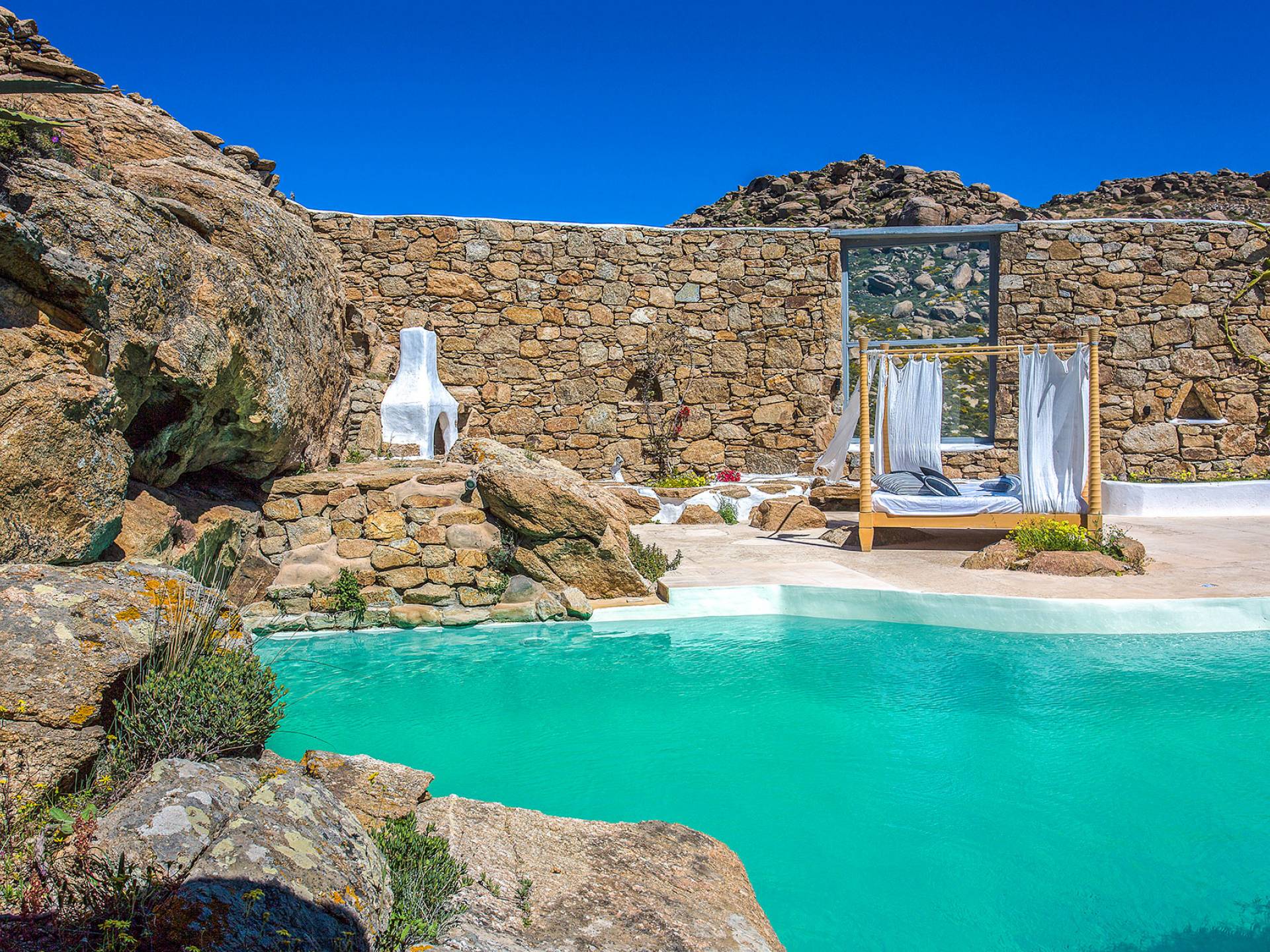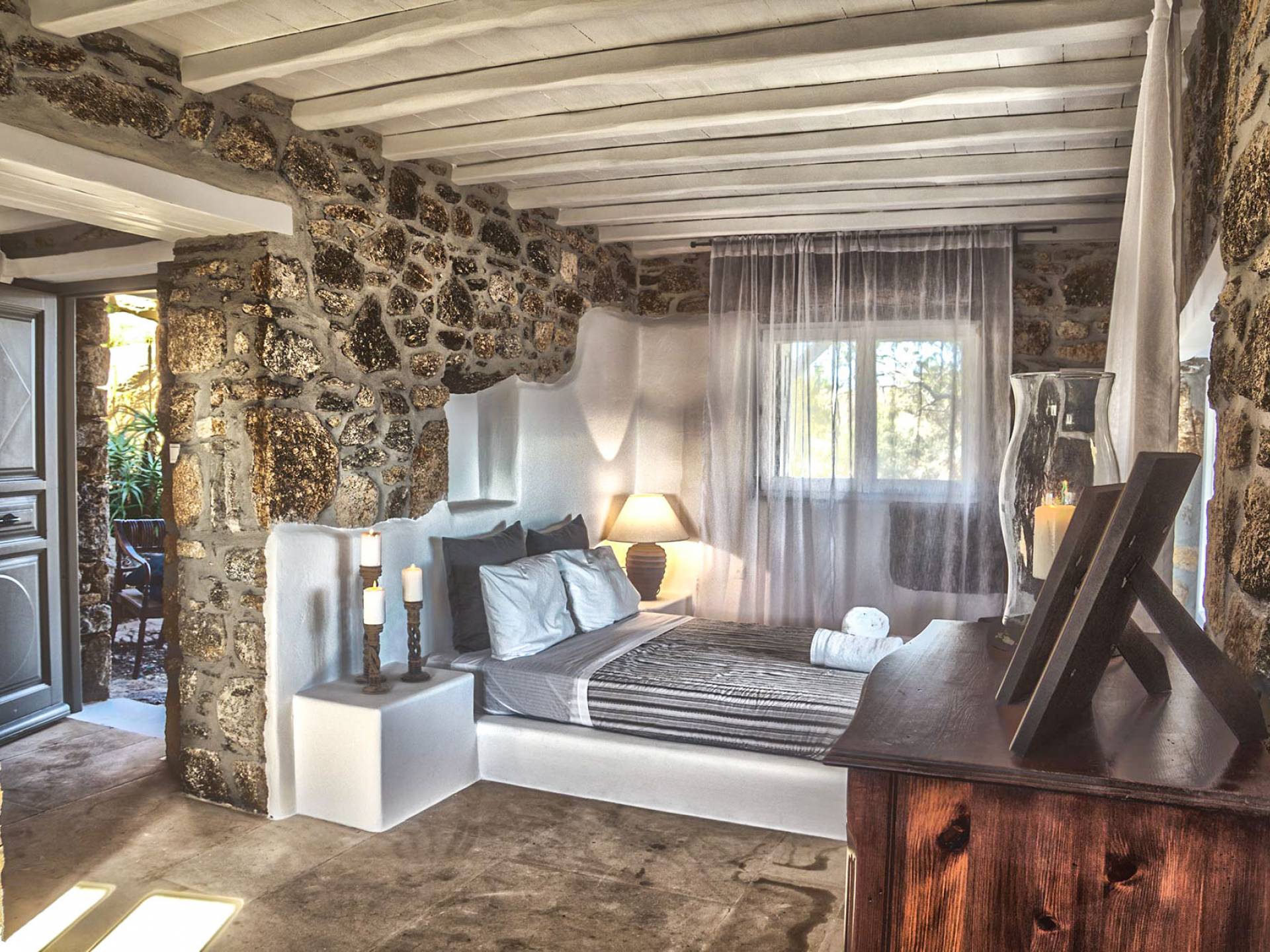 Villa Delilah Mykonos in Pyrgi ist eine luxuriöse 260 Quadratmeter große Villa, ganz in der Nähe des bekannten Super Paradise.