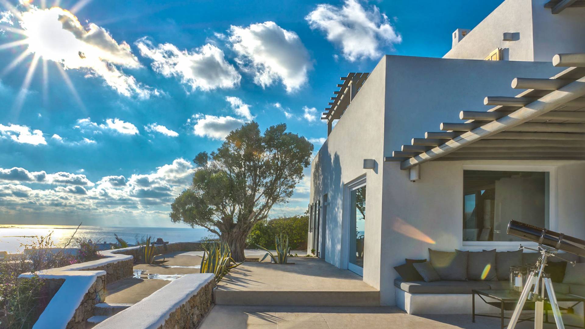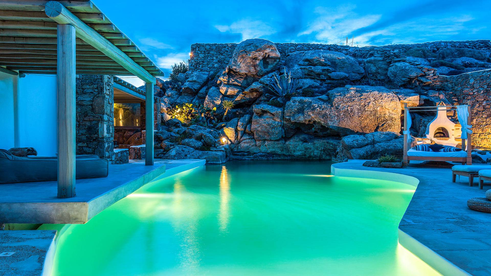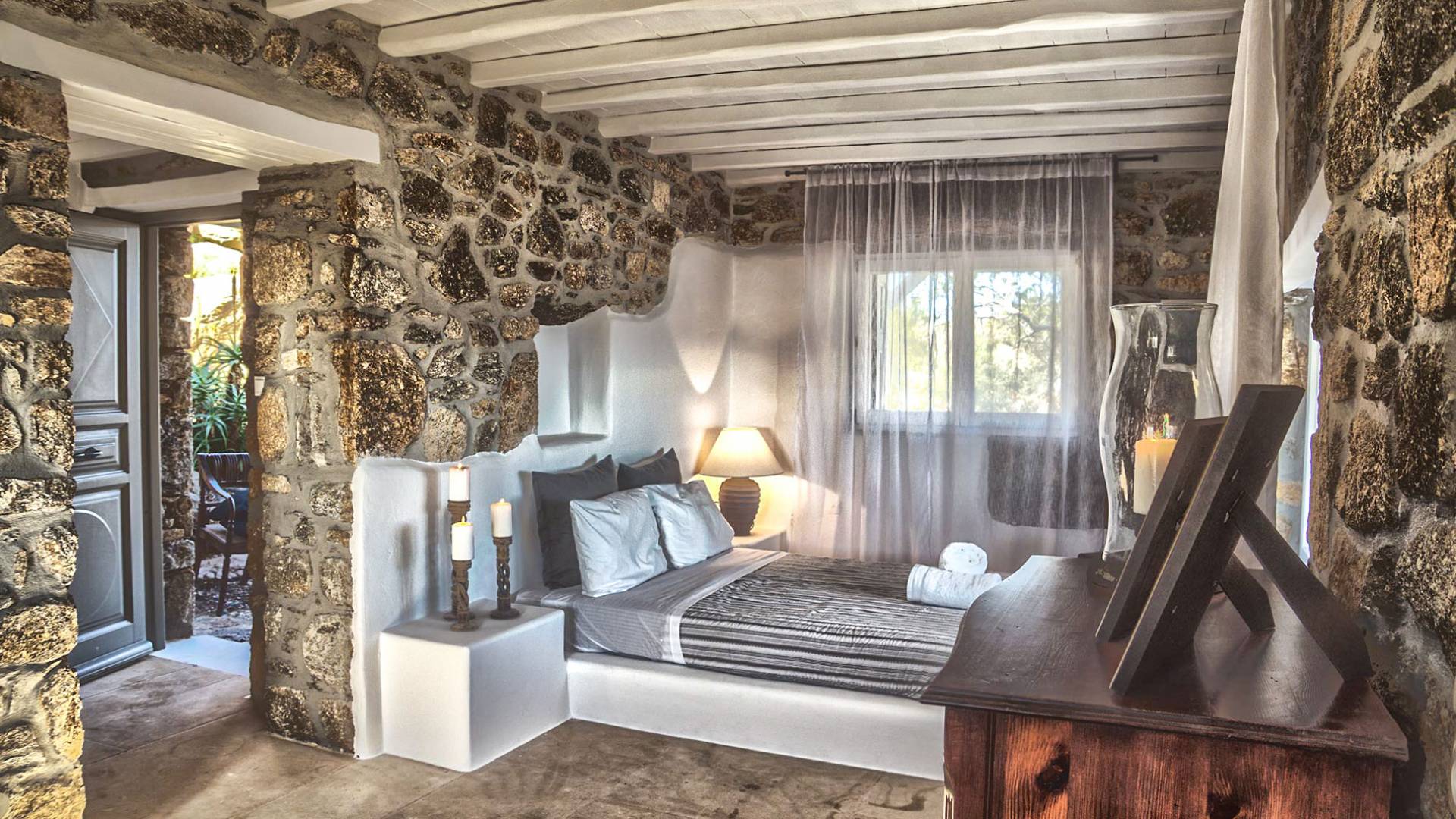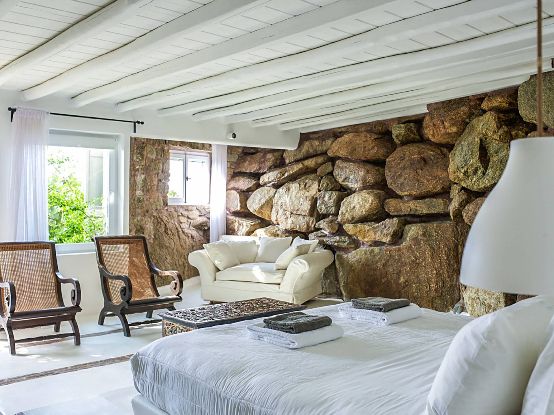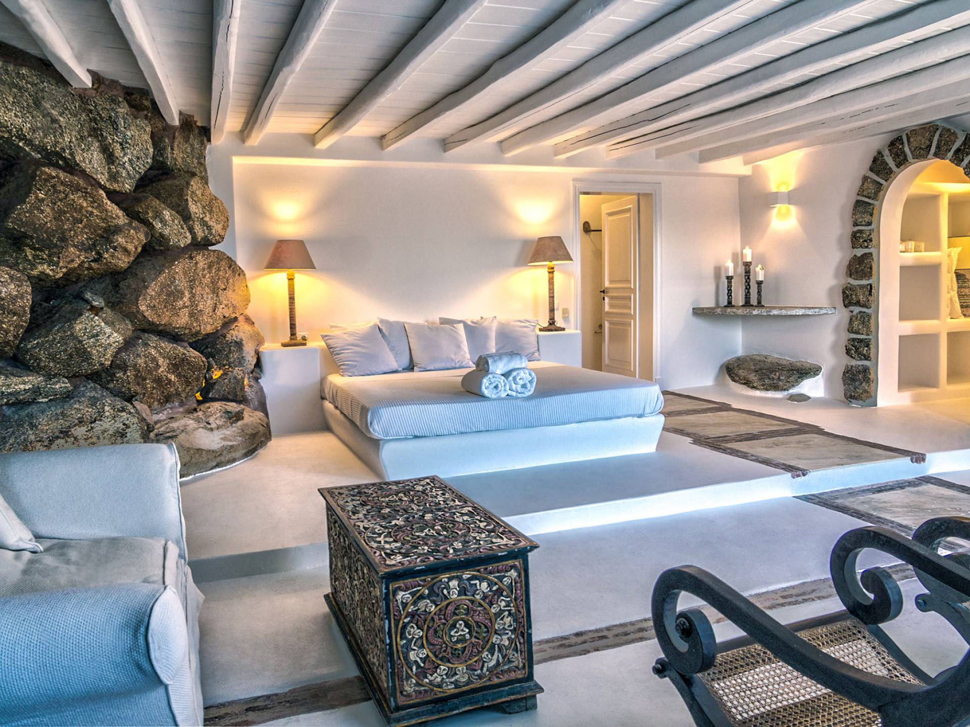 Villa Delilah Mykonos in Pyrgi ist eine luxuriöse 260 Quadratmeter große Villa, ganz in der Nähe des bekannten Super Paradise.