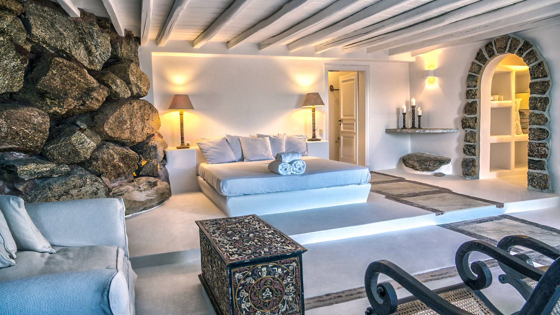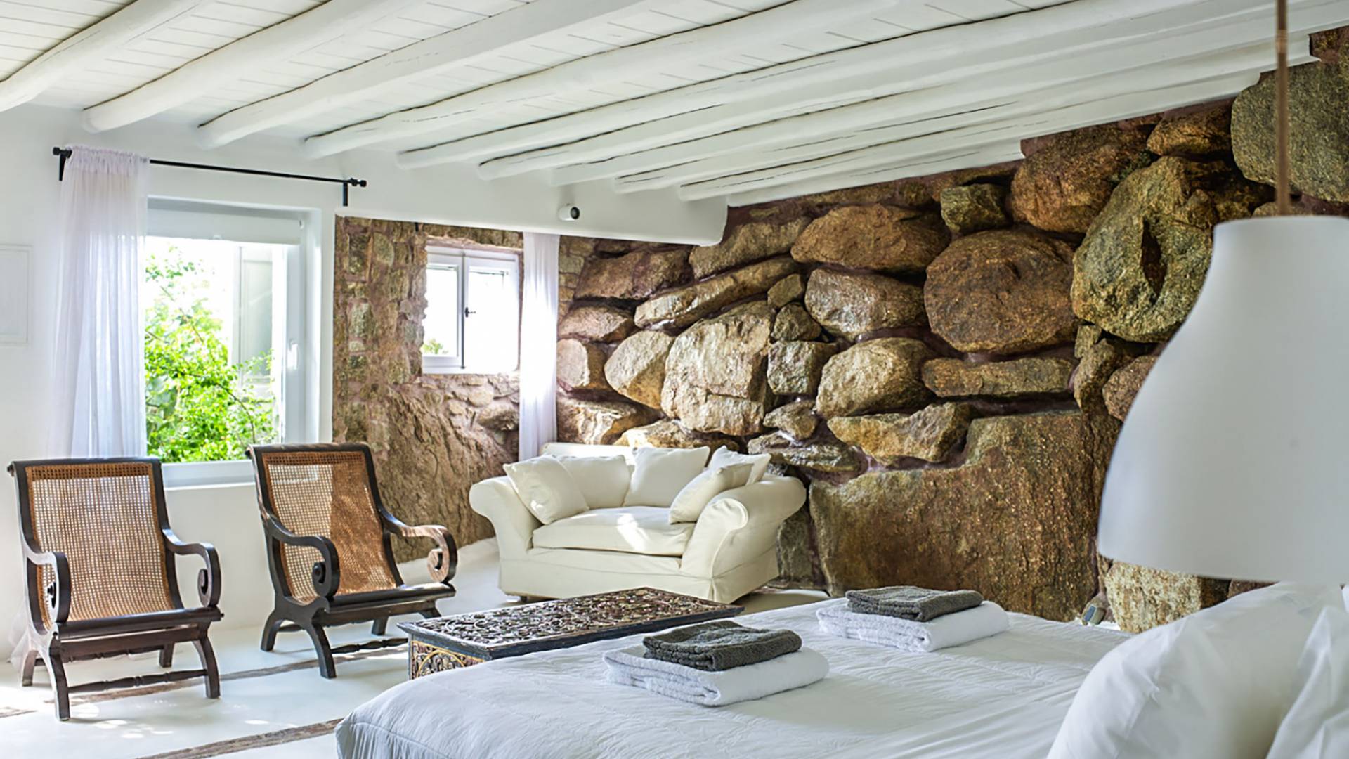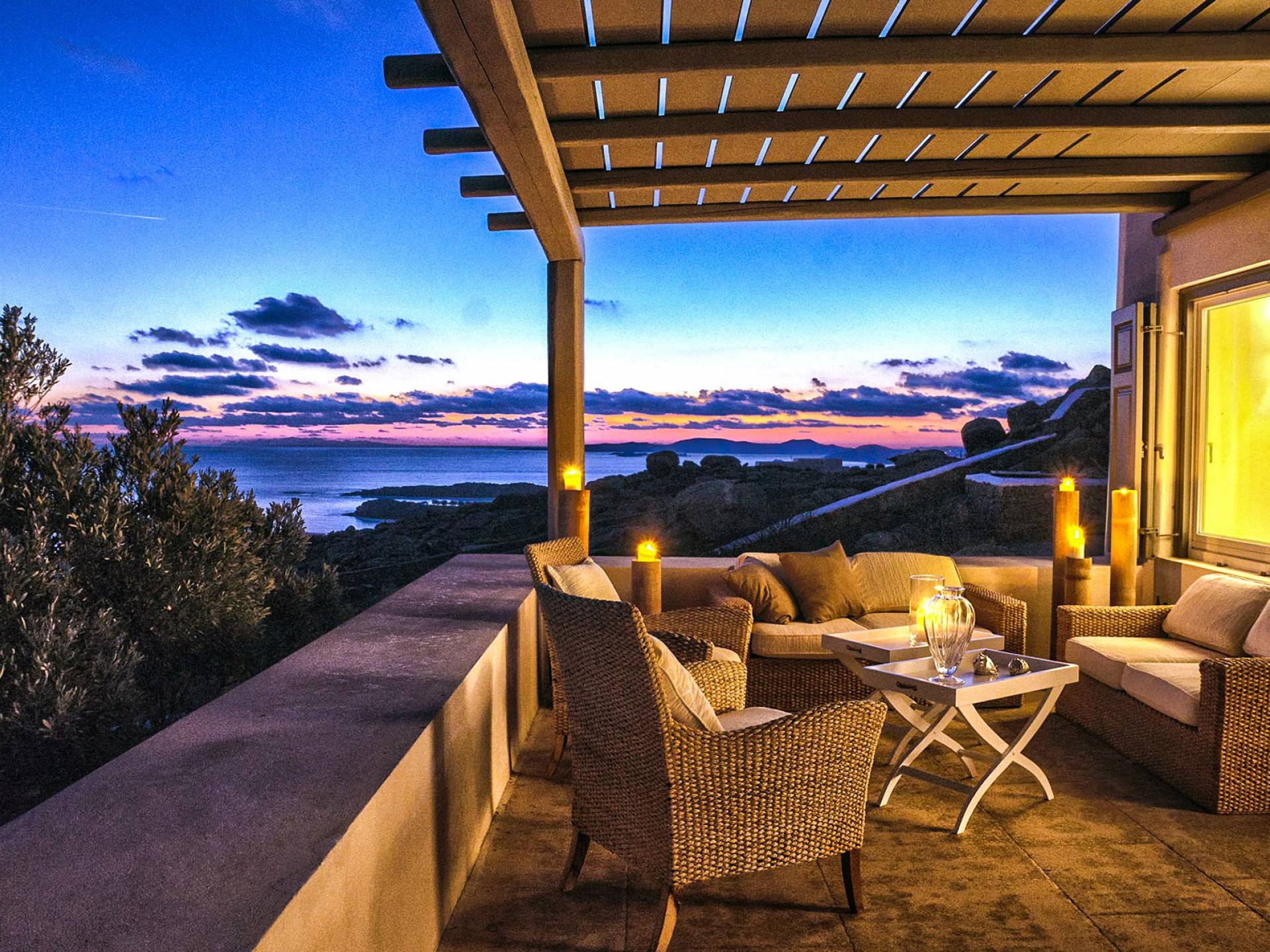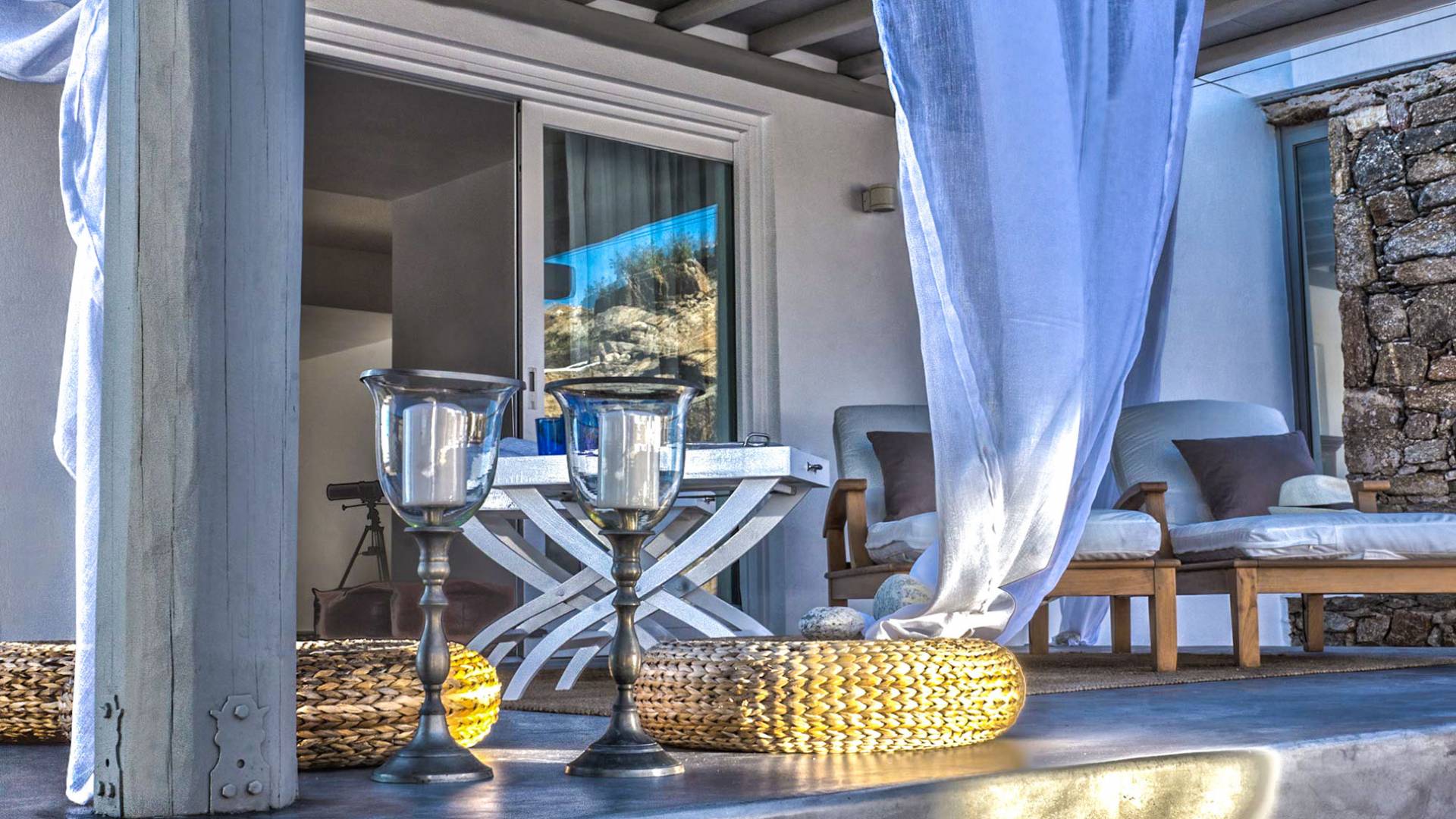 Villa Delilah Mykonos in Pyrgi ist eine luxuriöse 260 Quadratmeter große Villa, ganz in der Nähe des bekannten Super Paradise.