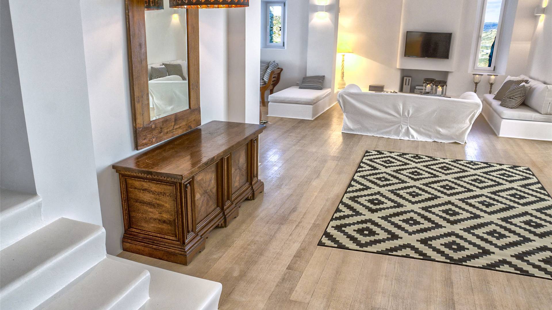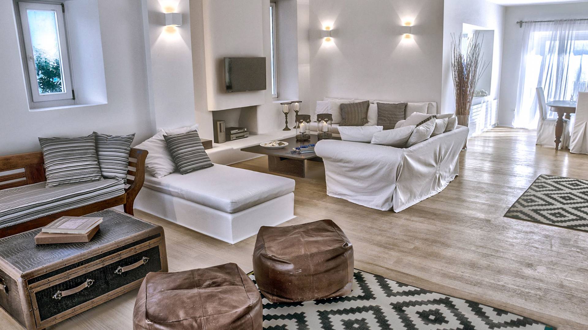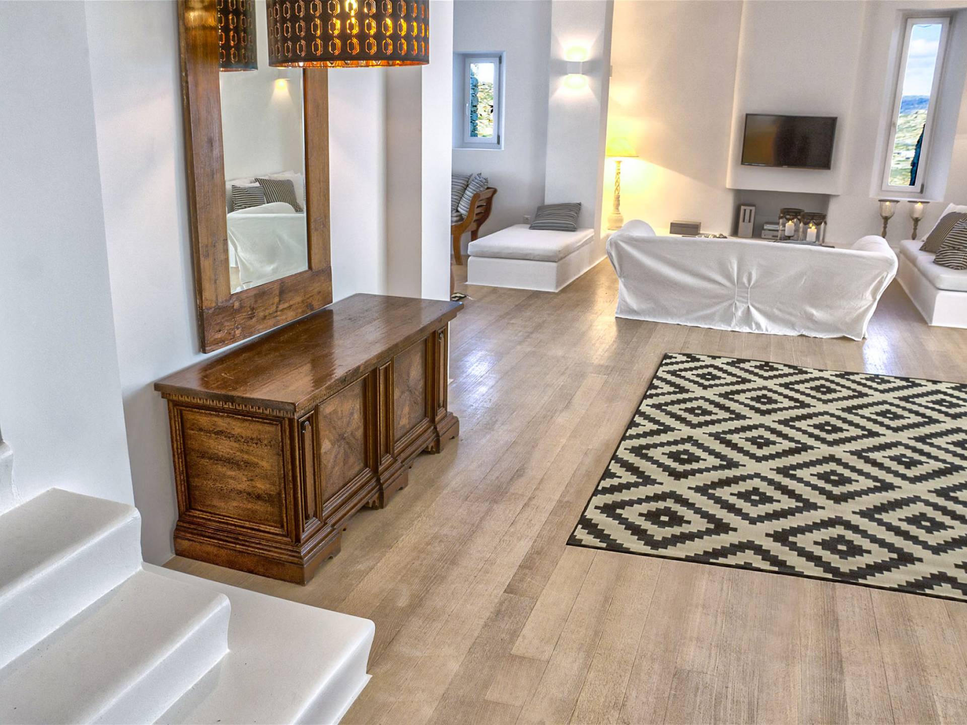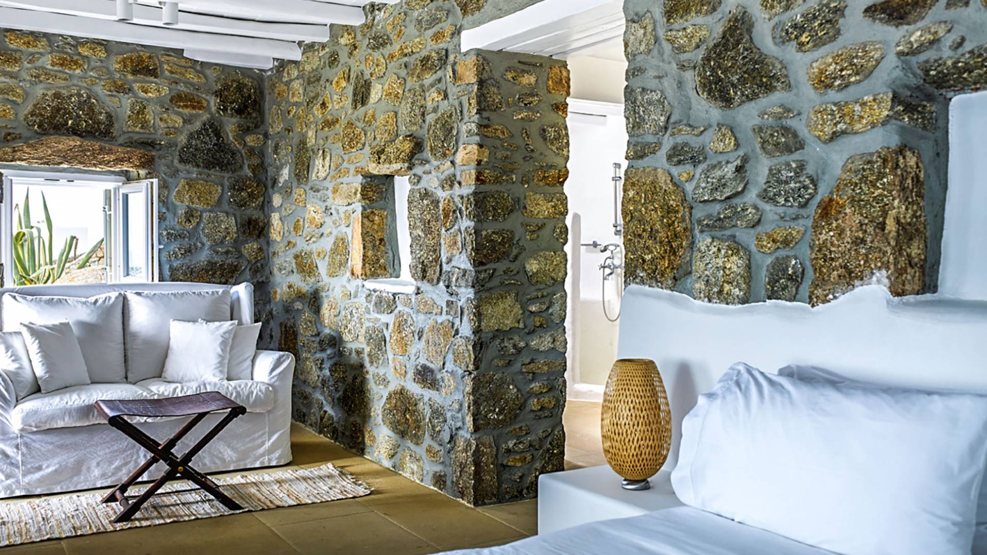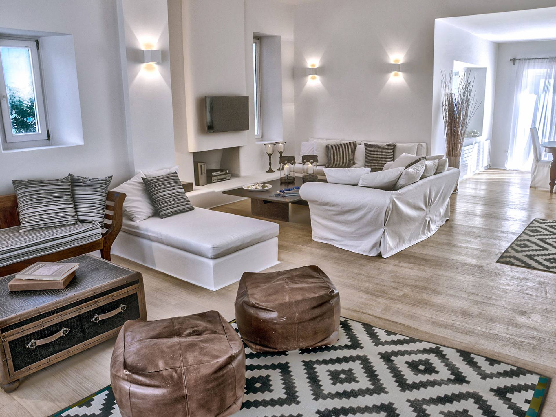 Villa Delilah Mykonos in Pyrgi ist eine luxuriöse 260 Quadratmeter große Villa, ganz in der Nähe des bekannten Super Paradise.