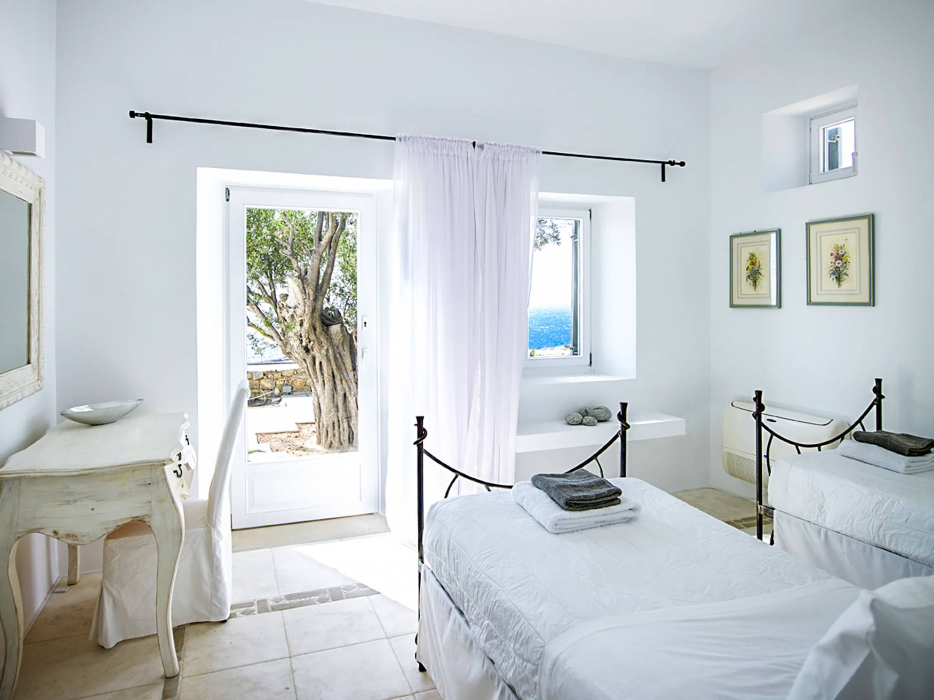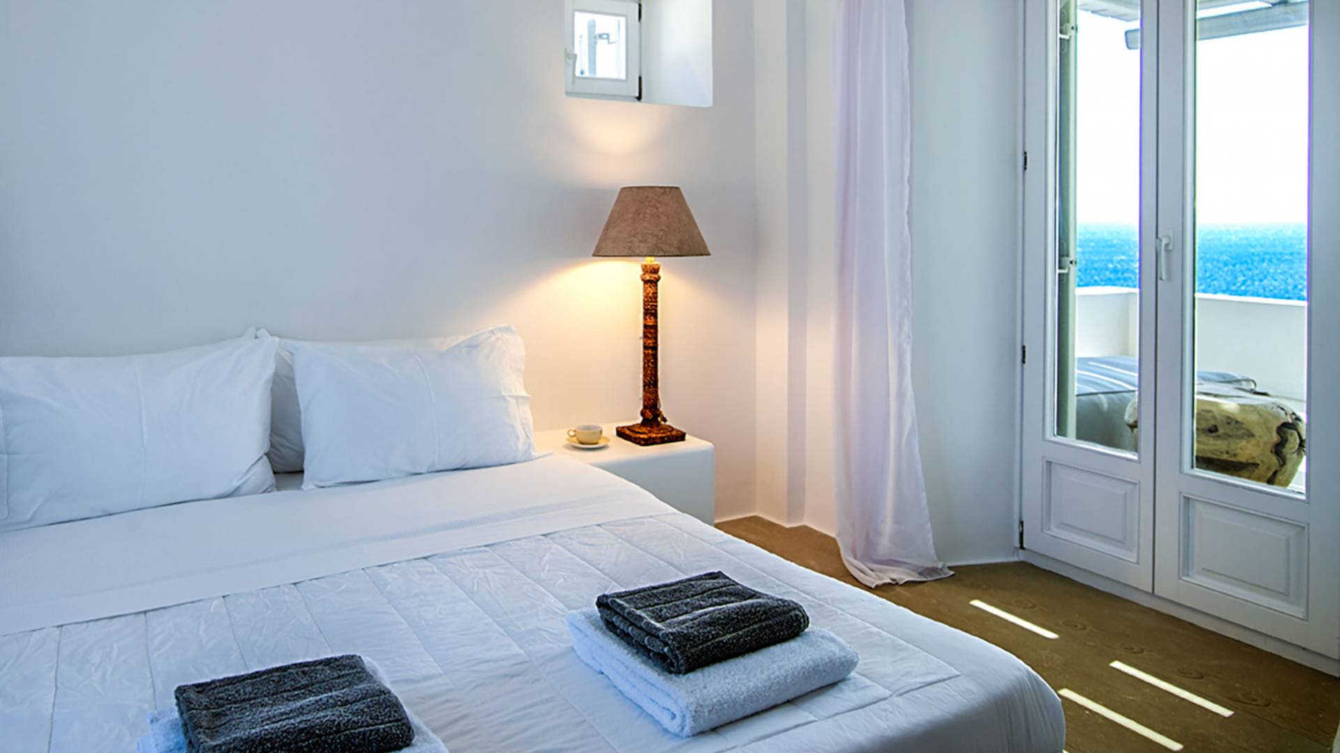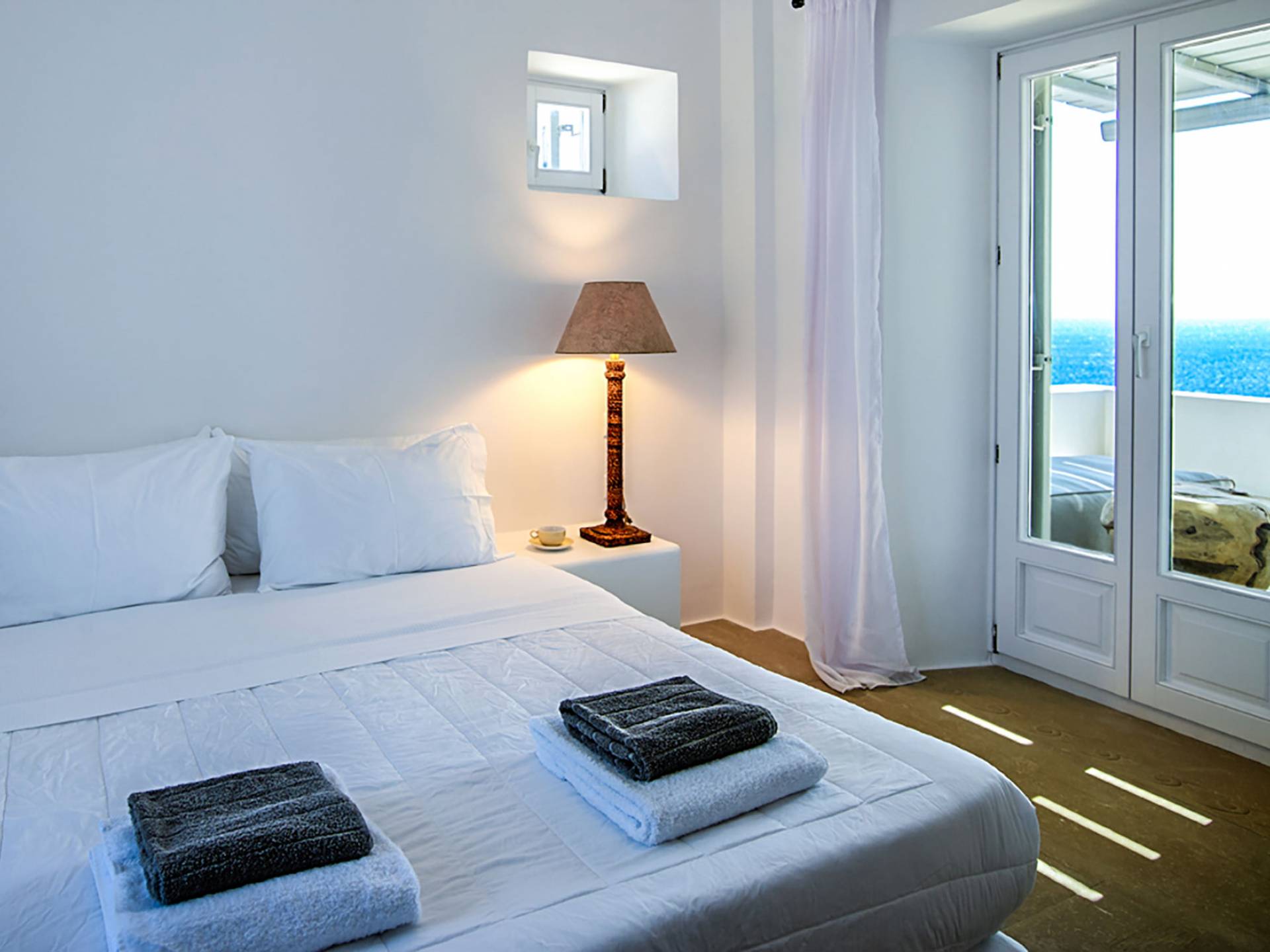 Die erste Wohnung besteht aus einem Schlafzimmer mit Doppelbett und Sofa, Klimaanlage, geräumigem Badezimmer im Hamam-Stil mit Dusche, Küchenzeile, Minikühlschrank, Garten und Kinderspielplatz. Die zweite Gästewohnung verfügt über ein Schlafzimmer mit Doppelbett, Sofa, Minikühlschrank, Klimaanlage, Badezimmer mit Dusche, Außensitzplatz mit Meerblick.
