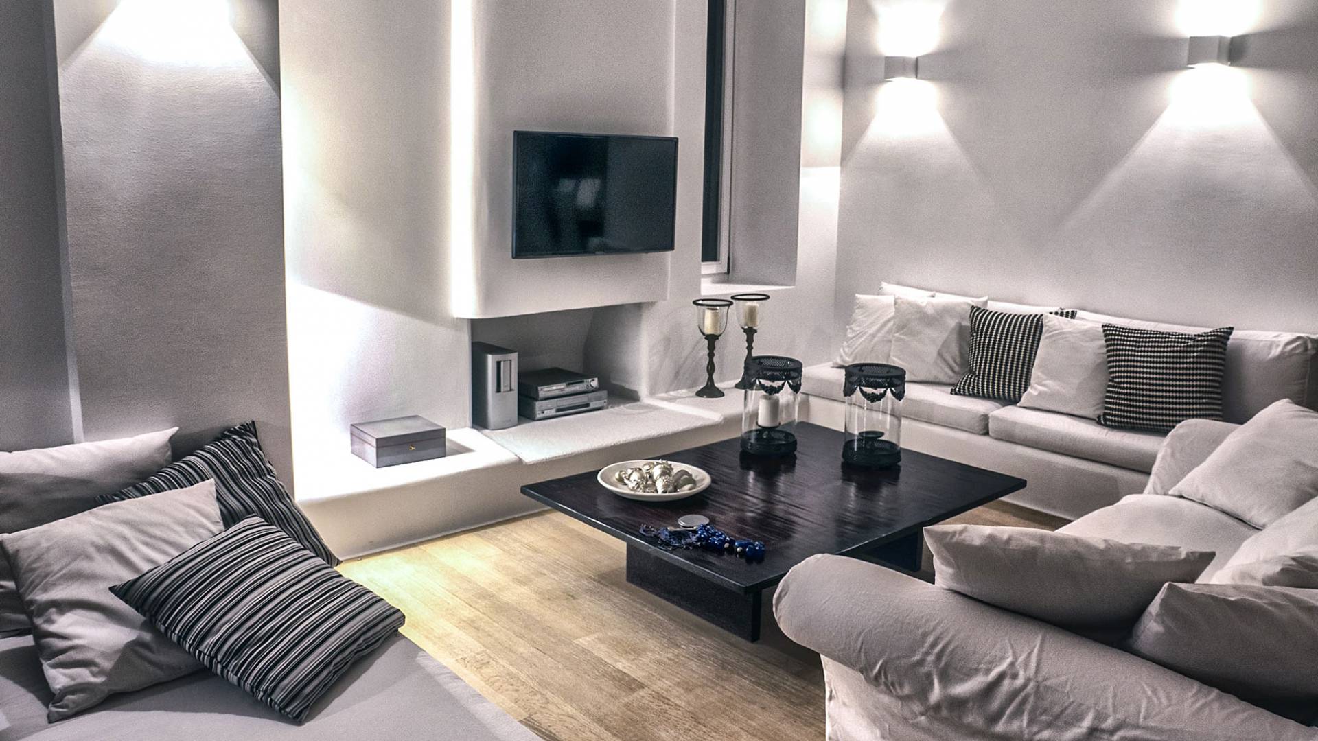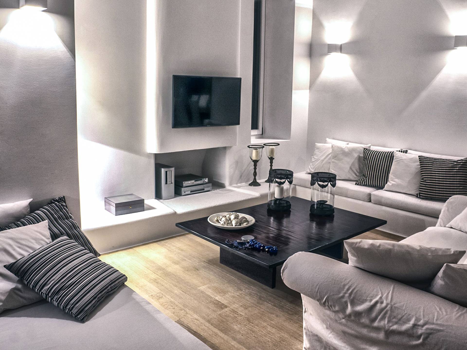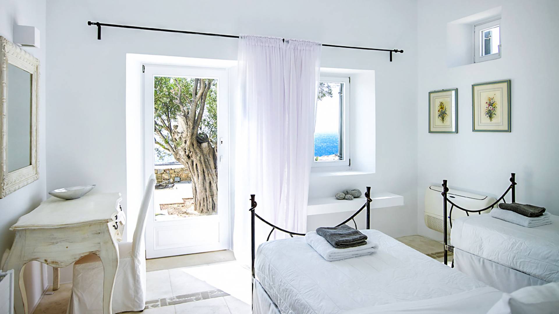 Die erste Wohnung besteht aus einem Schlafzimmer mit Doppelbett und Sofa, Klimaanlage, geräumigem Badezimmer im Hamam-Stil mit Dusche, Küchenzeile, Minikühlschrank, Garten und Kinderspielplatz. Die zweite Gästewohnung verfügt über ein Schlafzimmer mit Doppelbett, Sofa, Minikühlschrank, Klimaanlage, Badezimmer mit Dusche, Außensitzplatz mit Meerblick.