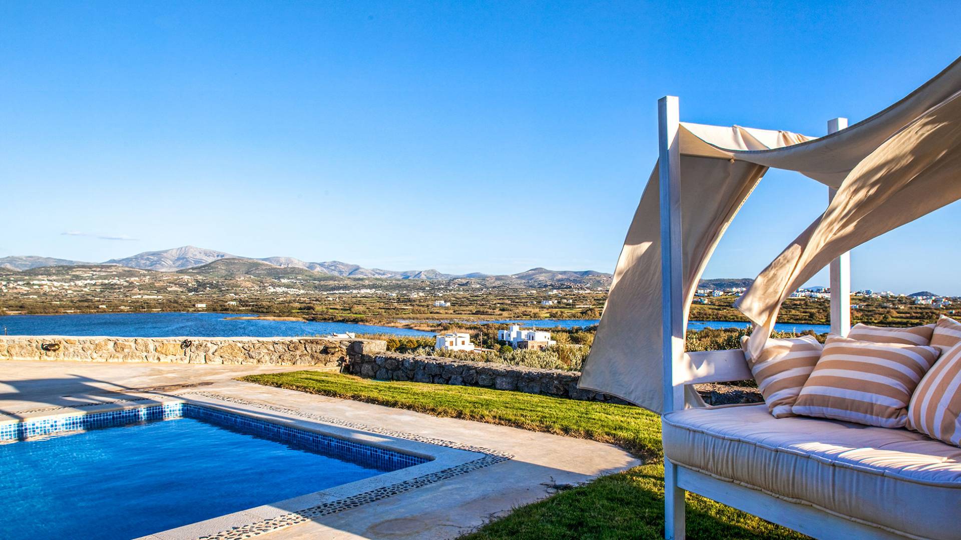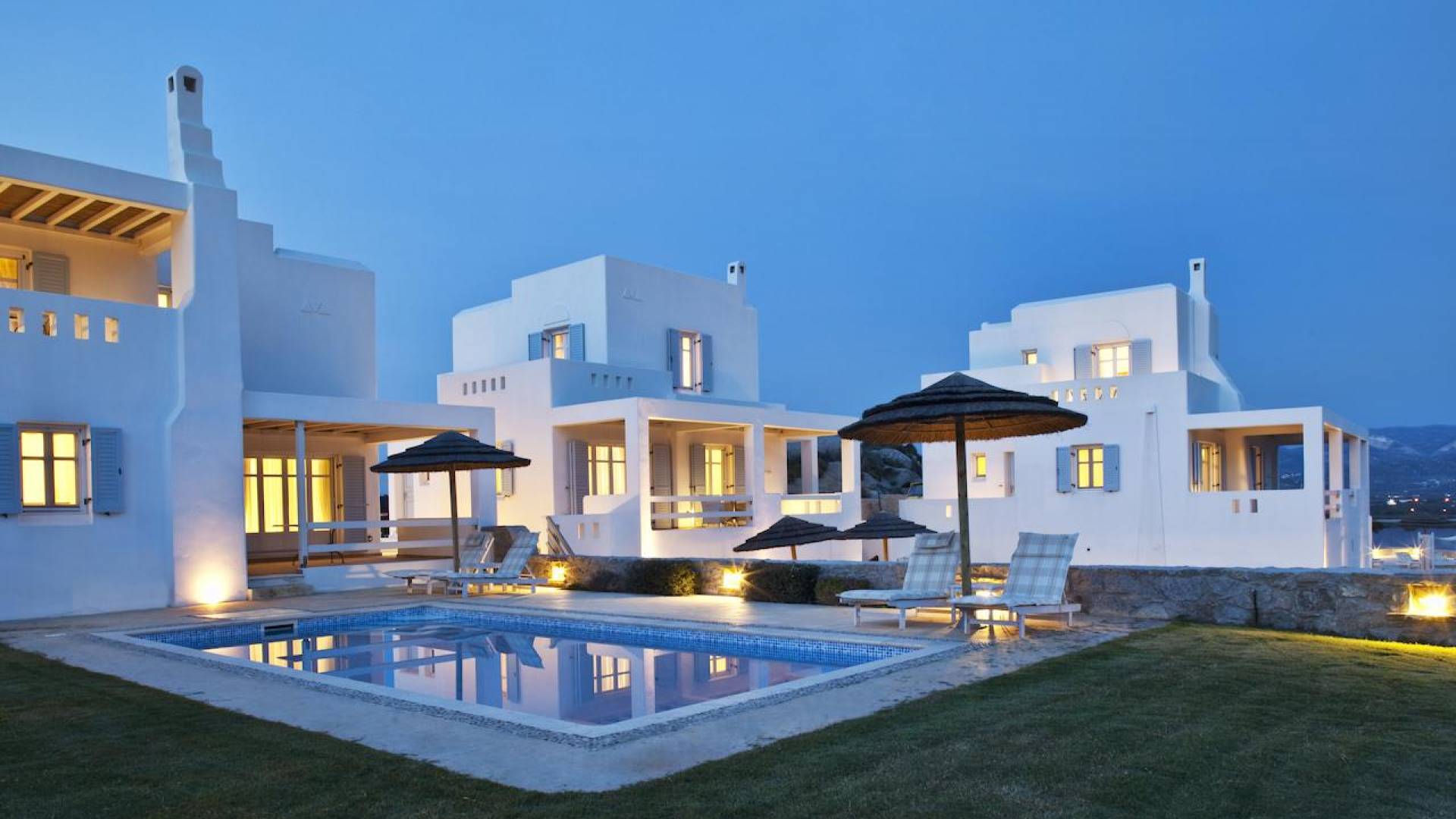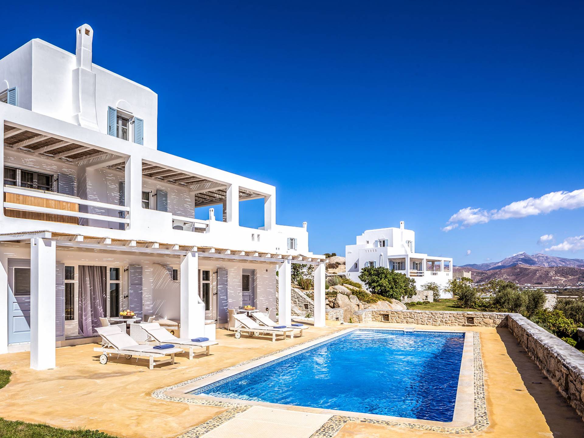 Atemberaubende Ausblicke auf die Stadt Naxos und ihre Burg, zu Fuß erreichbare Strände, ein Bio-Gemüsegarten, ein gut bewachter Weinkeller und erhabene private oder halbprivate Pools unter dem blausten Himmel der Kykladen – das erwartet die Besucher zu diesem verführerischen Anwesen, das kunstvoll Raffinesse mit entspannter Gastfreundschaft der Insel verbindet.