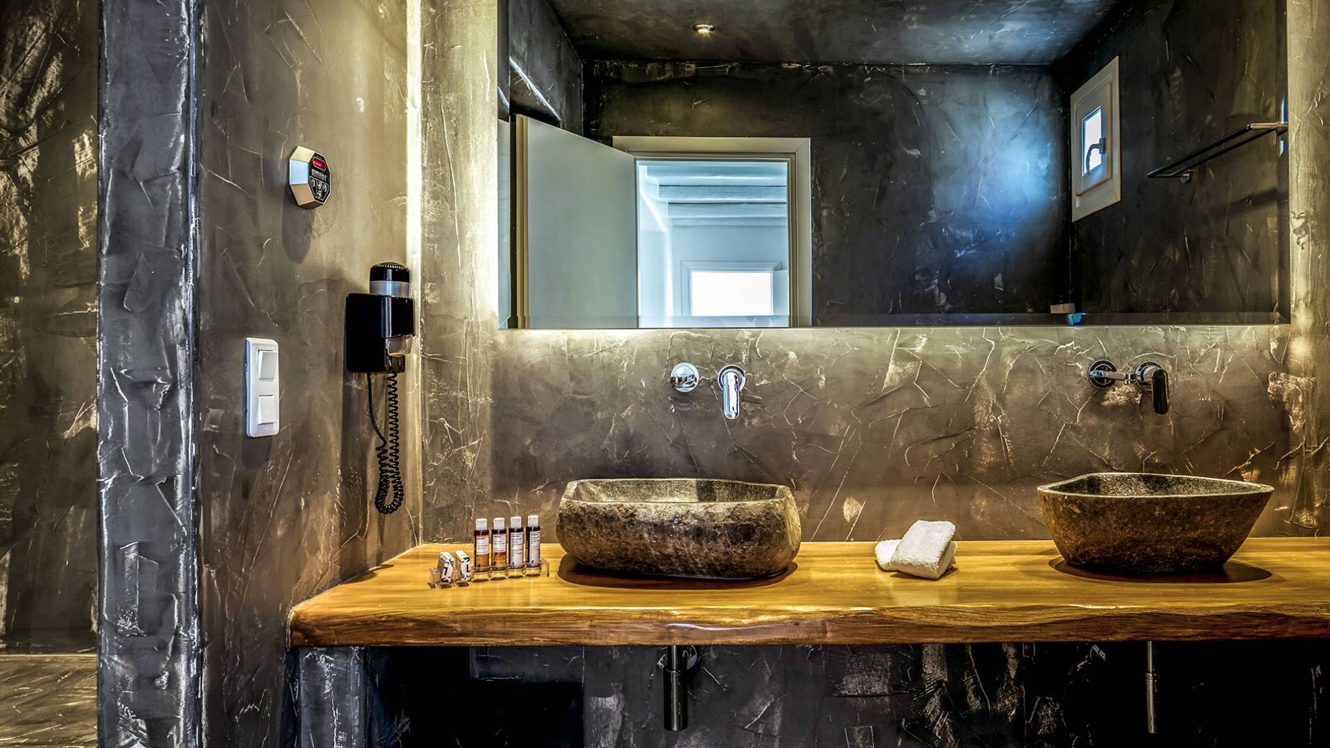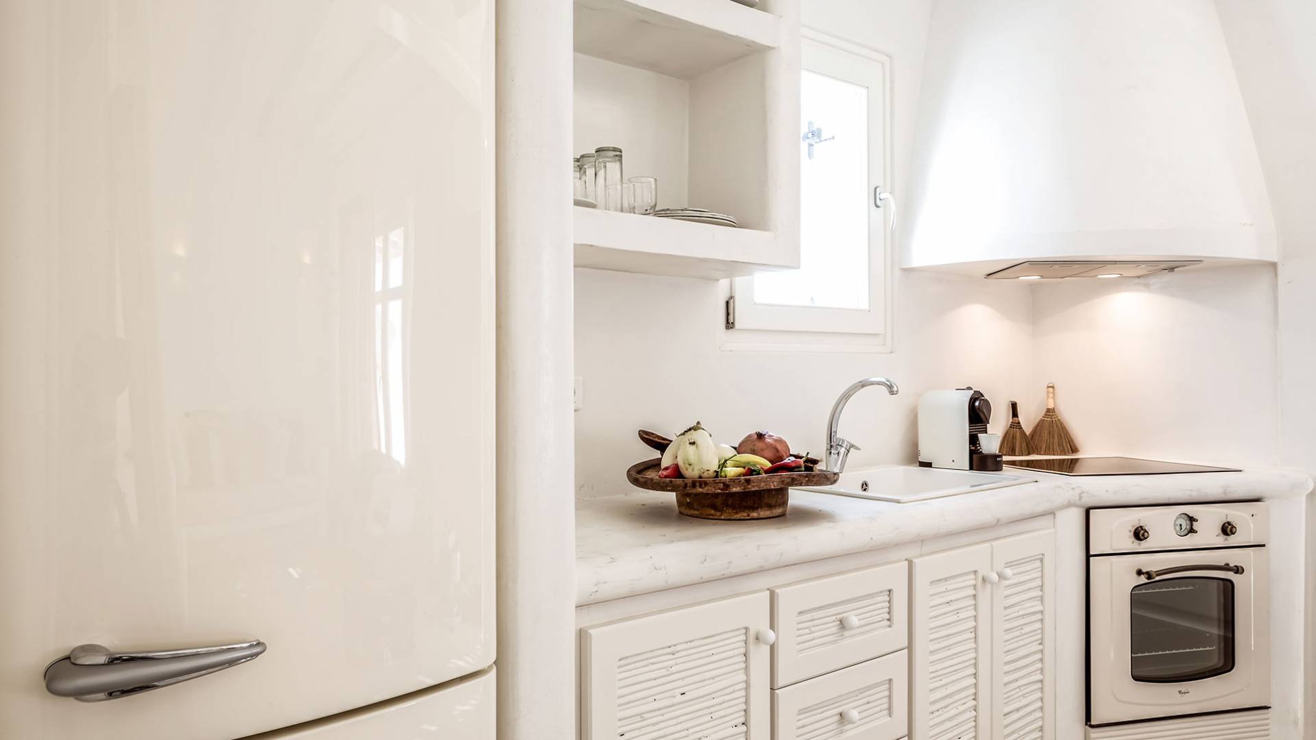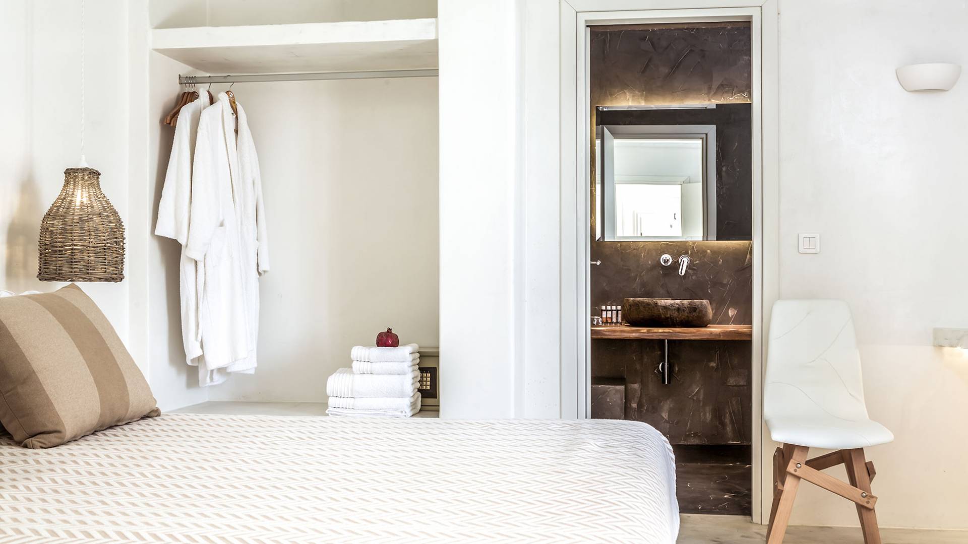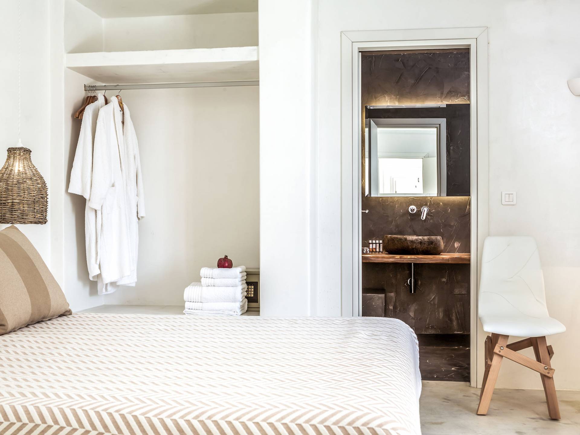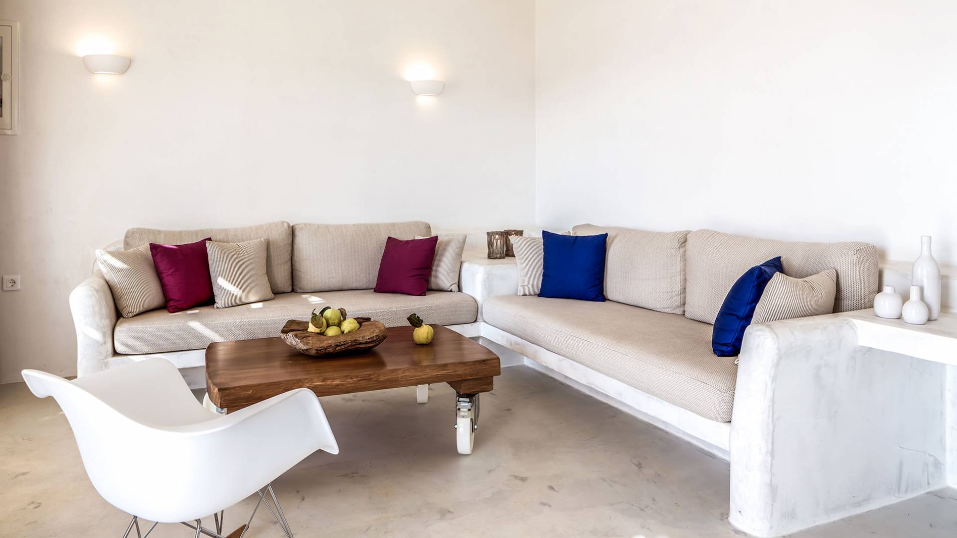 Die Grand Suite besteht aus zwei eingebauten Steinsofas und einer gewagten Dosis Weiß spiegeln den wahren Stil der Kykladen wider, während moderne Annehmlichkeiten wie ultra-geräumige Badezimmer, herrliche Betten und eine voll ausgestattete Küche zum Charme beitragen. Das private Schlafzimmer im Innenbereich und der separate Wohn-/Essbereich kontrastieren mit dem privaten Außenpool und der Terrasse, die die Wohnung nach außen erweitern. Ein oder zwei Schlafsofas sind perfekt für Kinder und bieten den Eltern absolute Privatsphäre im separaten Schlafzimmer. Größere Familien werden in den beiden miteinander verbundenen Suiten (eine davon mit voll ausgestatteter Küche) den ultimativen Urlaub genießen.