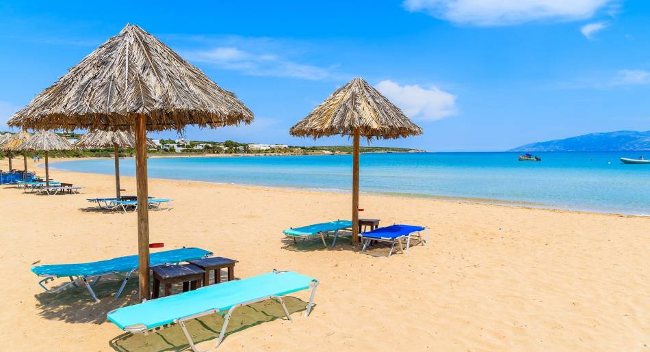 Paros, Griechenland gehört zu den beliebtesten Inseln der Kykladen. In der Antike war die Insel Paros berühmt für ihren feinen Marmor, der in Statuen und Tempeln verwendet wurde. Die Insel Paros liegt im Herzen der Ägäis und ist ideal für junge Leute, romantische Paare und Familien. Die kykladische Architektur mit weiß getünchten Zuckerhäusern, gepflasterten Straßen und blau gewölbten Kirchen ist vorherrschend. Die Strände sind berühmt für das türkisfarbene Wasser und den goldenen Sand. Die Insel Antiparos gegenüber von Paros bietet eine großartige Gelegenheit für einen Tagesausflug zu den kristallklaren Stränden und Sie werden die entspannte Atmosphäre genießen.