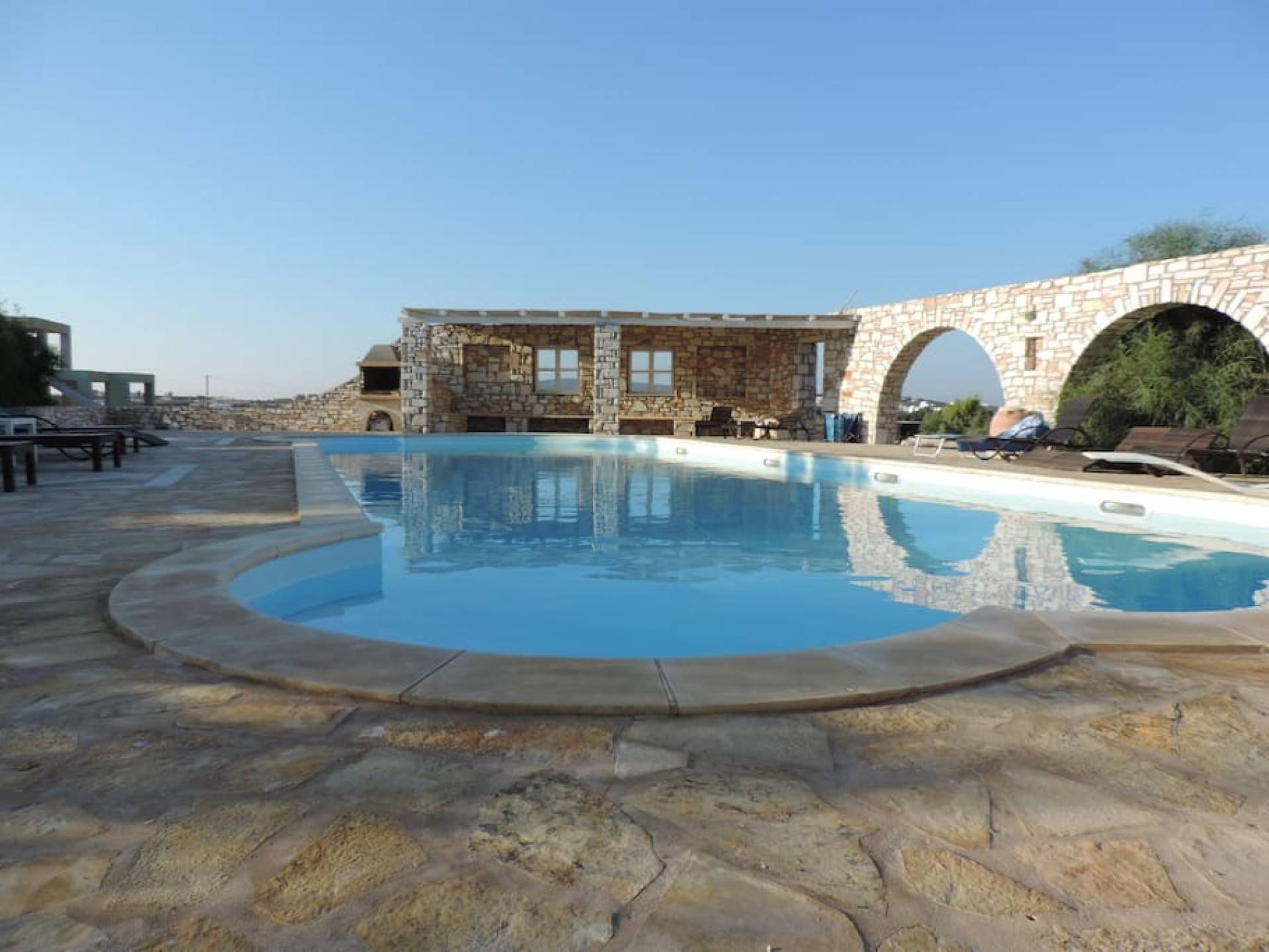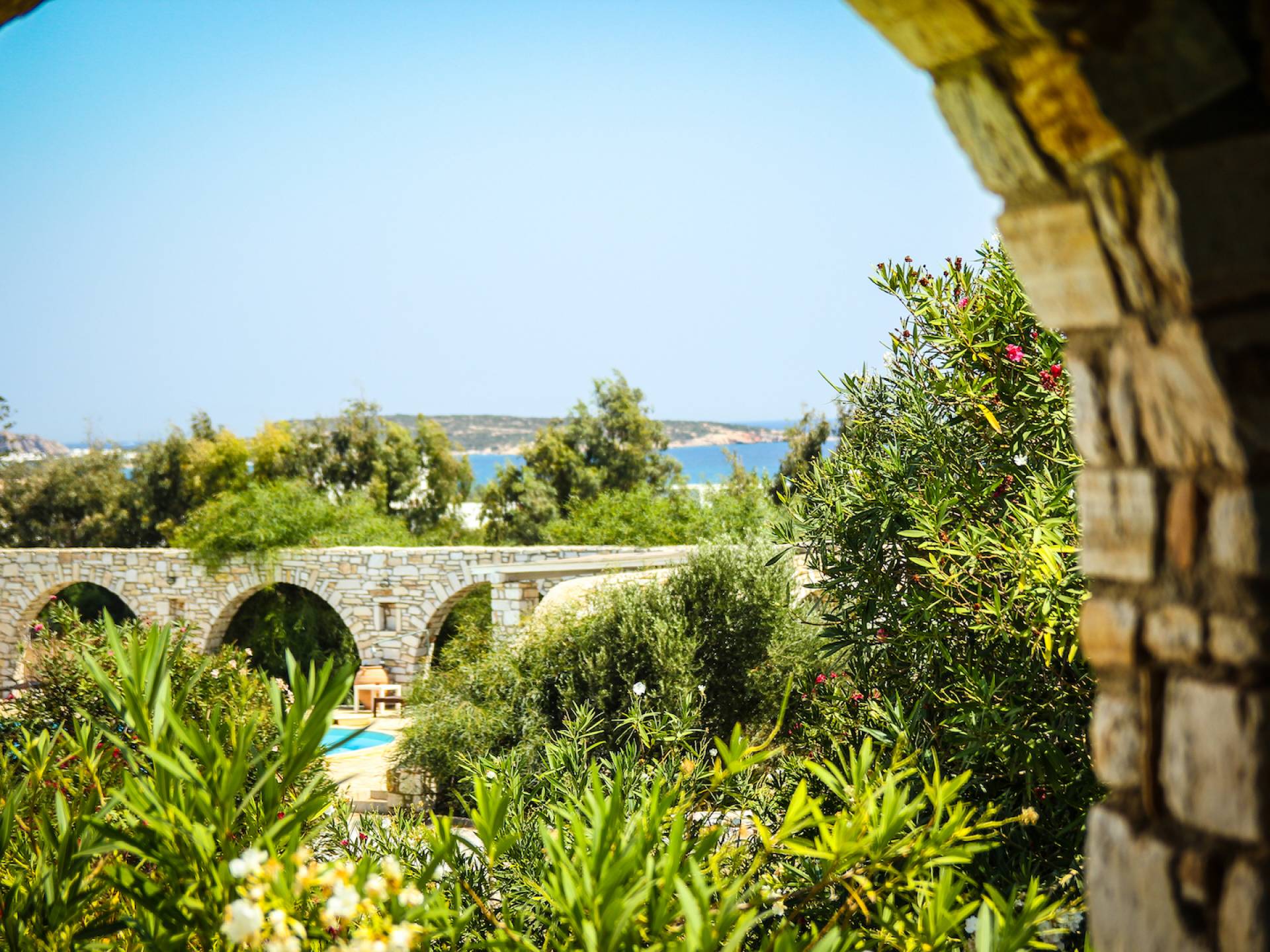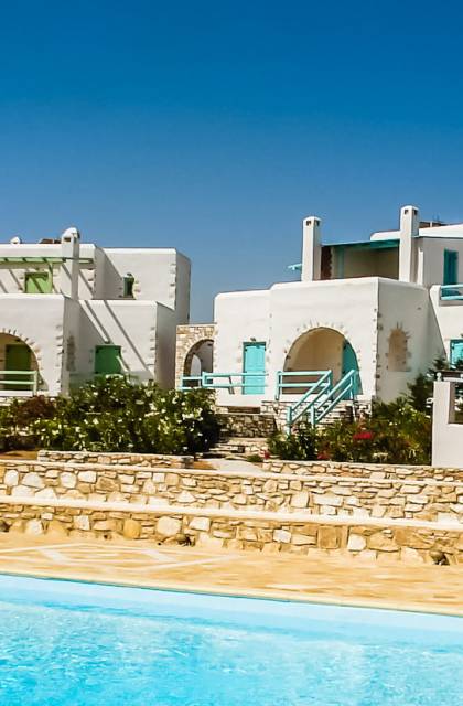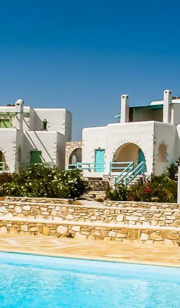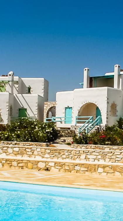 Archipelagos Villas ist ein Komplex aus fünf Villen mit einer Kapazität für 4 bis 14 Personen. Alle Villen sind nach der traditionellen kykladischen Architektur gestaltet, um absolute Harmonie mit der Umgebung zu haben. Die Balkone und Terrassen bieten einen Panoramablick auf die Ägäis und die nahe gelegene Insel Naxos. Die Villen bieten Privatsphäre, da sie durch kleine Steinzäune und Bepflanzung getrennt sind.