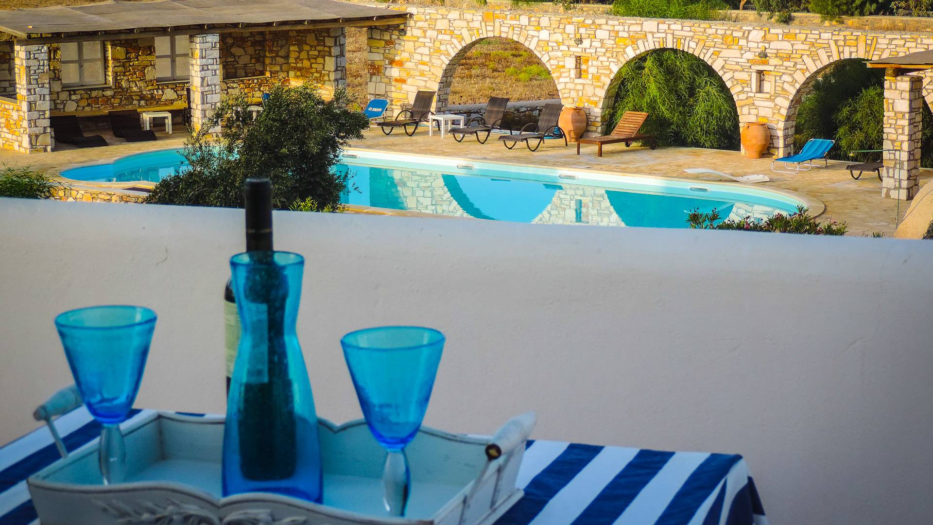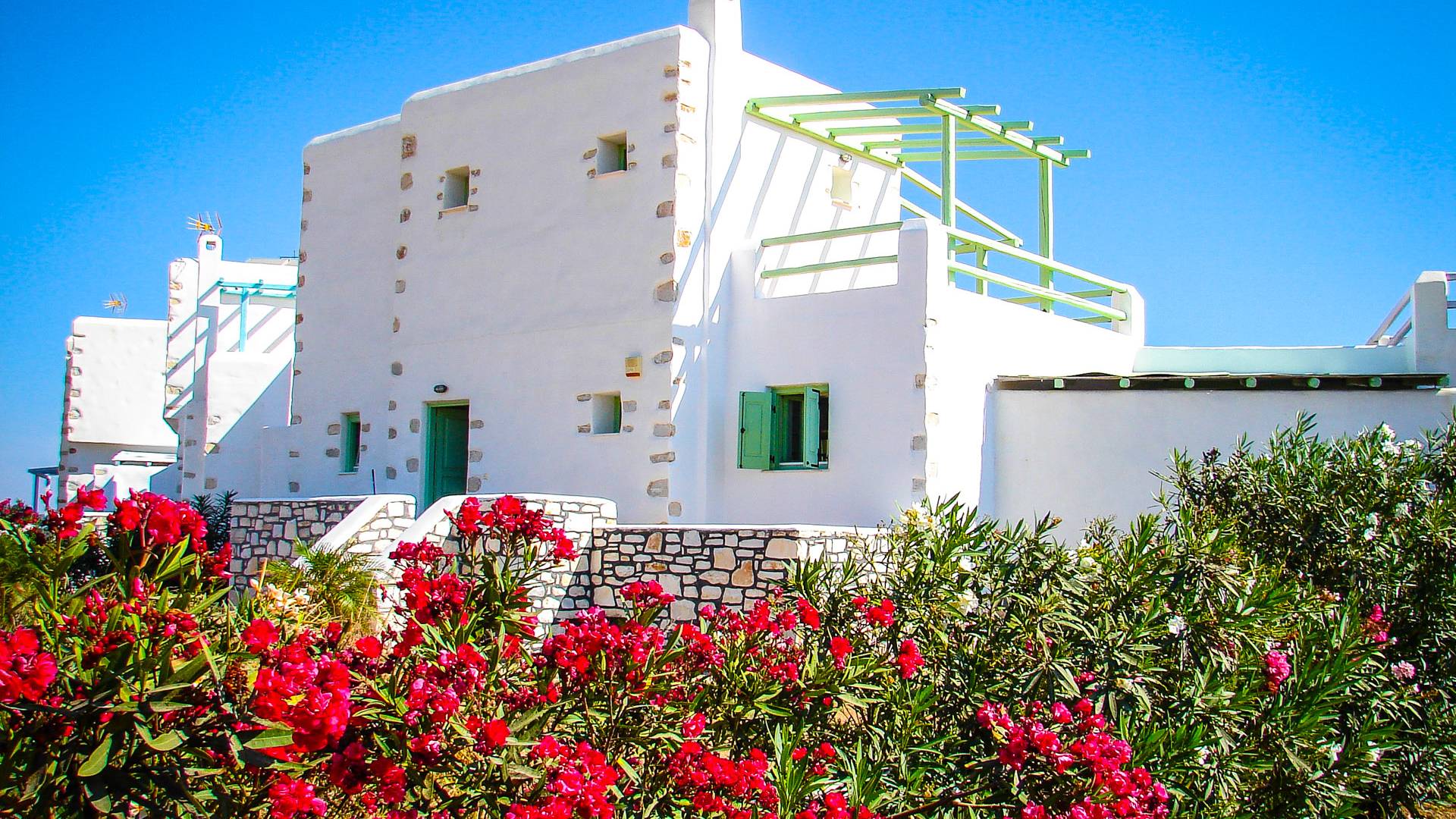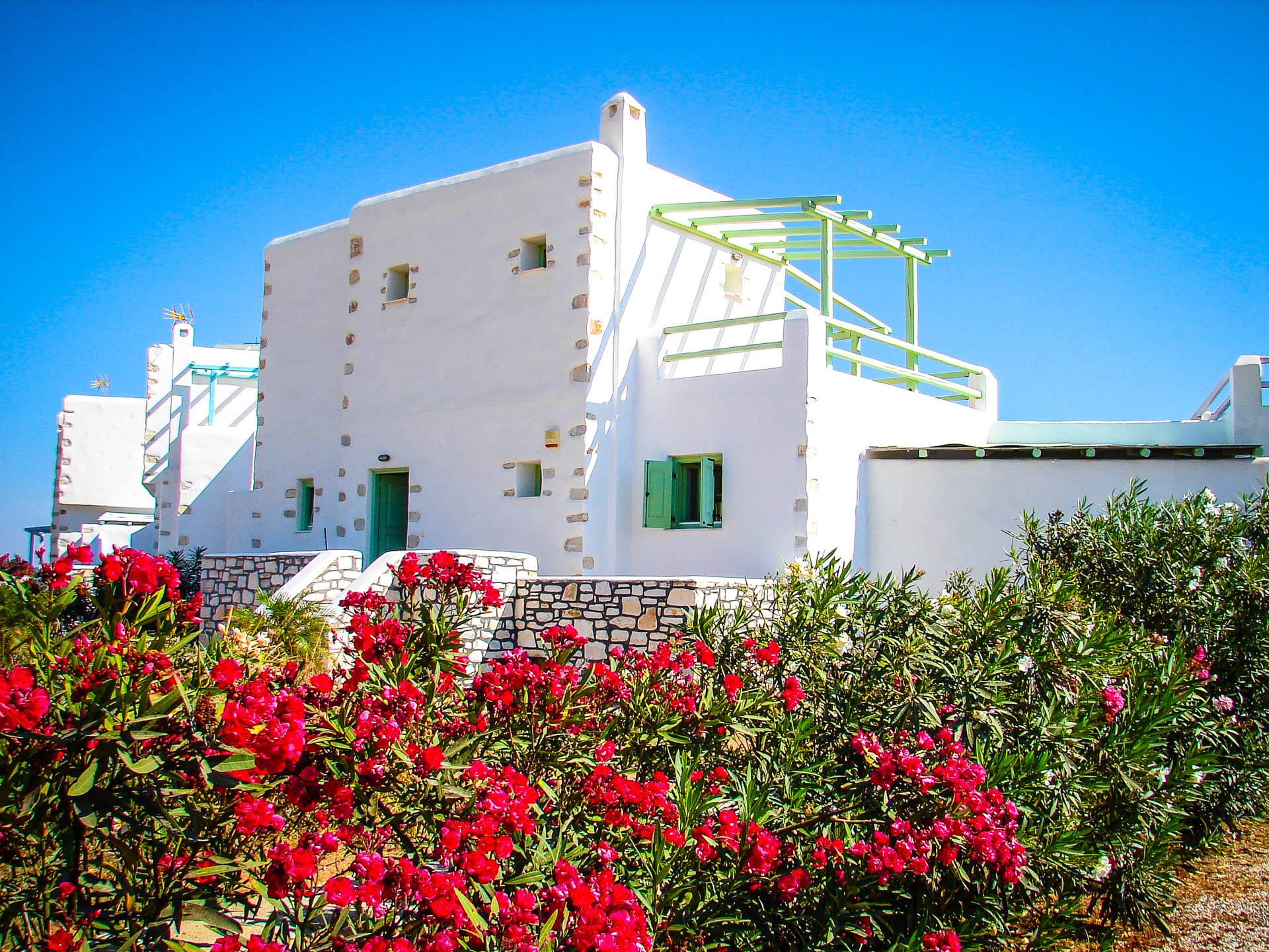 Archipelagos Villas ist ein Komplex aus fünf Villen mit einer Kapazität für 4 bis 14 Personen. Alle Villen sind nach der traditionellen kykladischen Architektur gestaltet, um absolute Harmonie mit der Umgebung zu haben. Die Balkone und Terrassen bieten einen Panoramablick auf die Ägäis und die nahe gelegene Insel Naxos. Die Villen bieten Privatsphäre, da sie durch kleine Steinzäune und Bepflanzung getrennt sind.