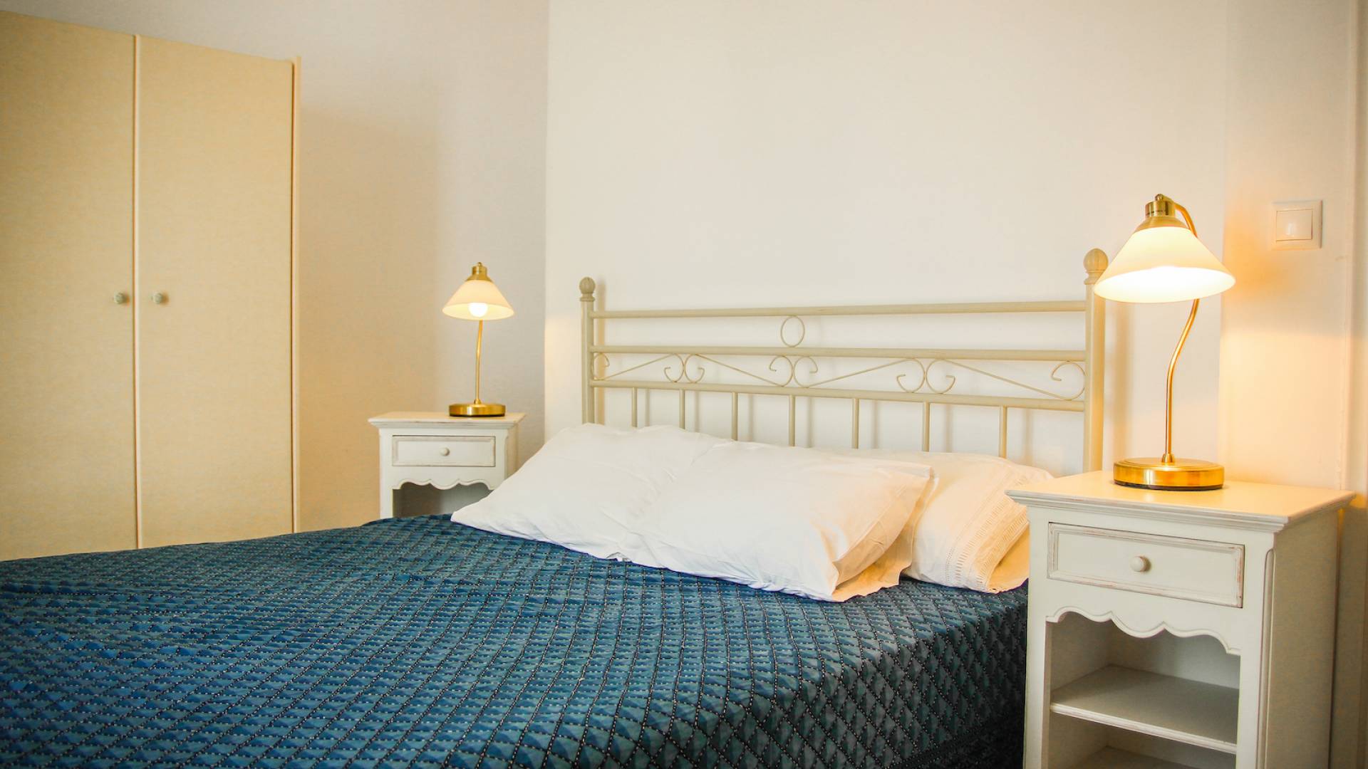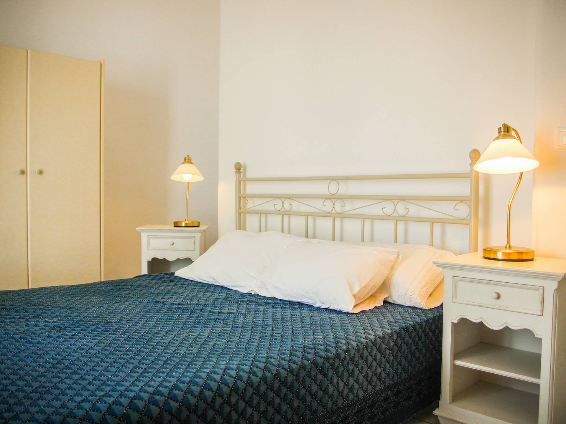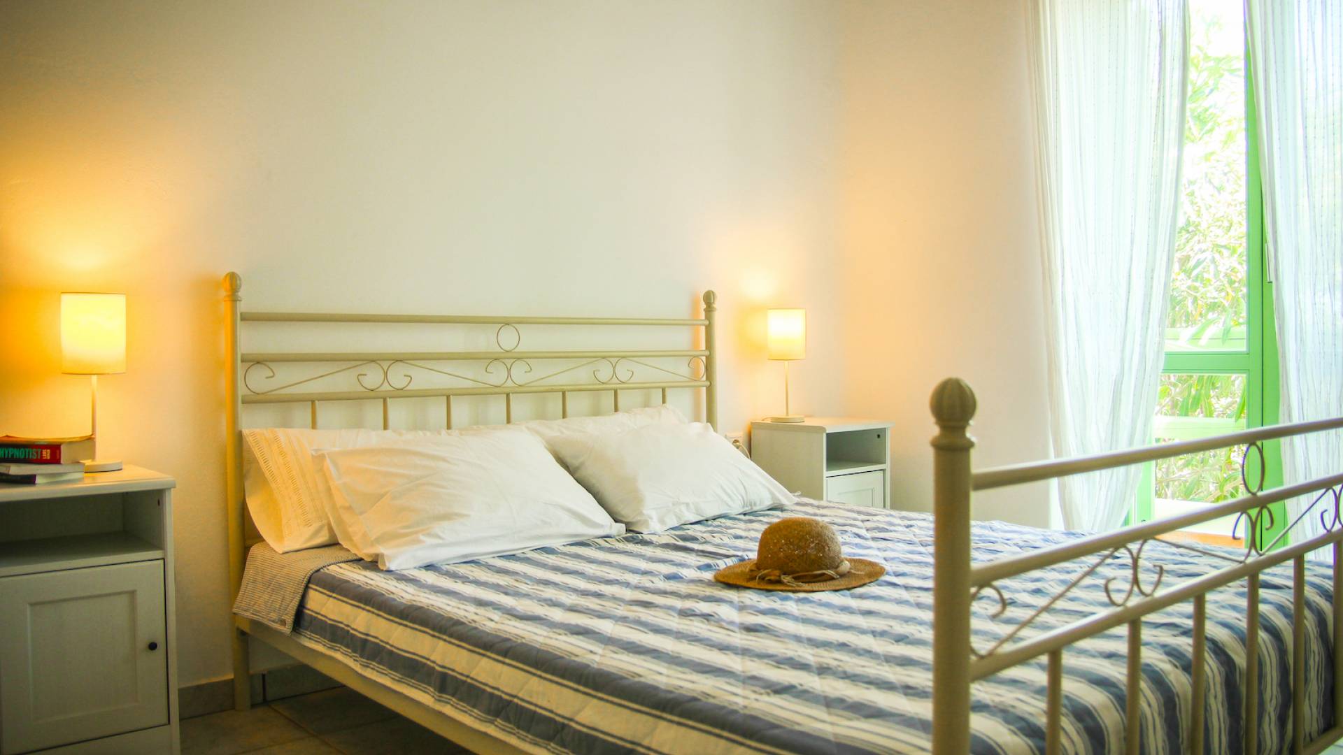 Villa Naxos, Teil von Archipelagos Villas, hat 3 Ebenen. Auf der ersten Ebene (Souterrain) befinden sich zwei große Schlafzimmer für vier Gäste, zwei geräumige Badezimmer und Platz im Freien. Von dieser Ebene aus haben Sie Zugang zum Hof, zum Gemeinschaftspool und über eine Innentreppe in den ersten Stock.