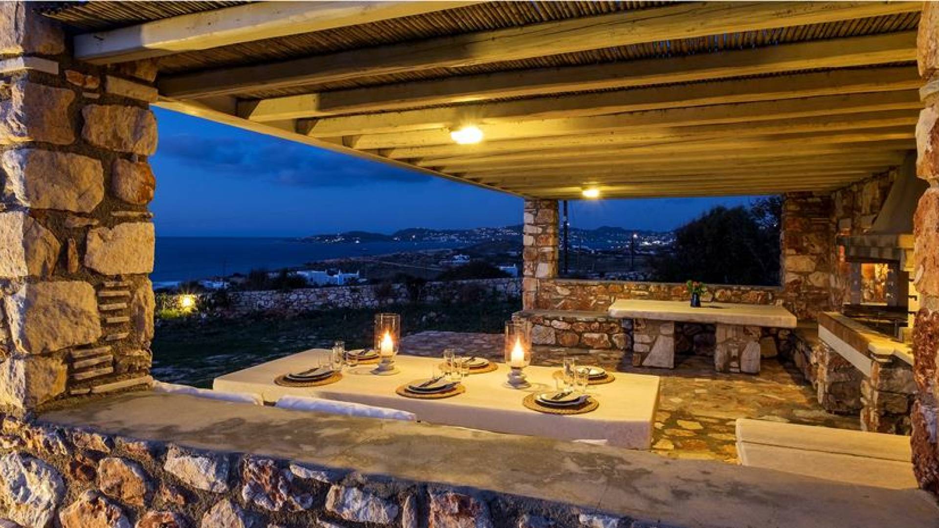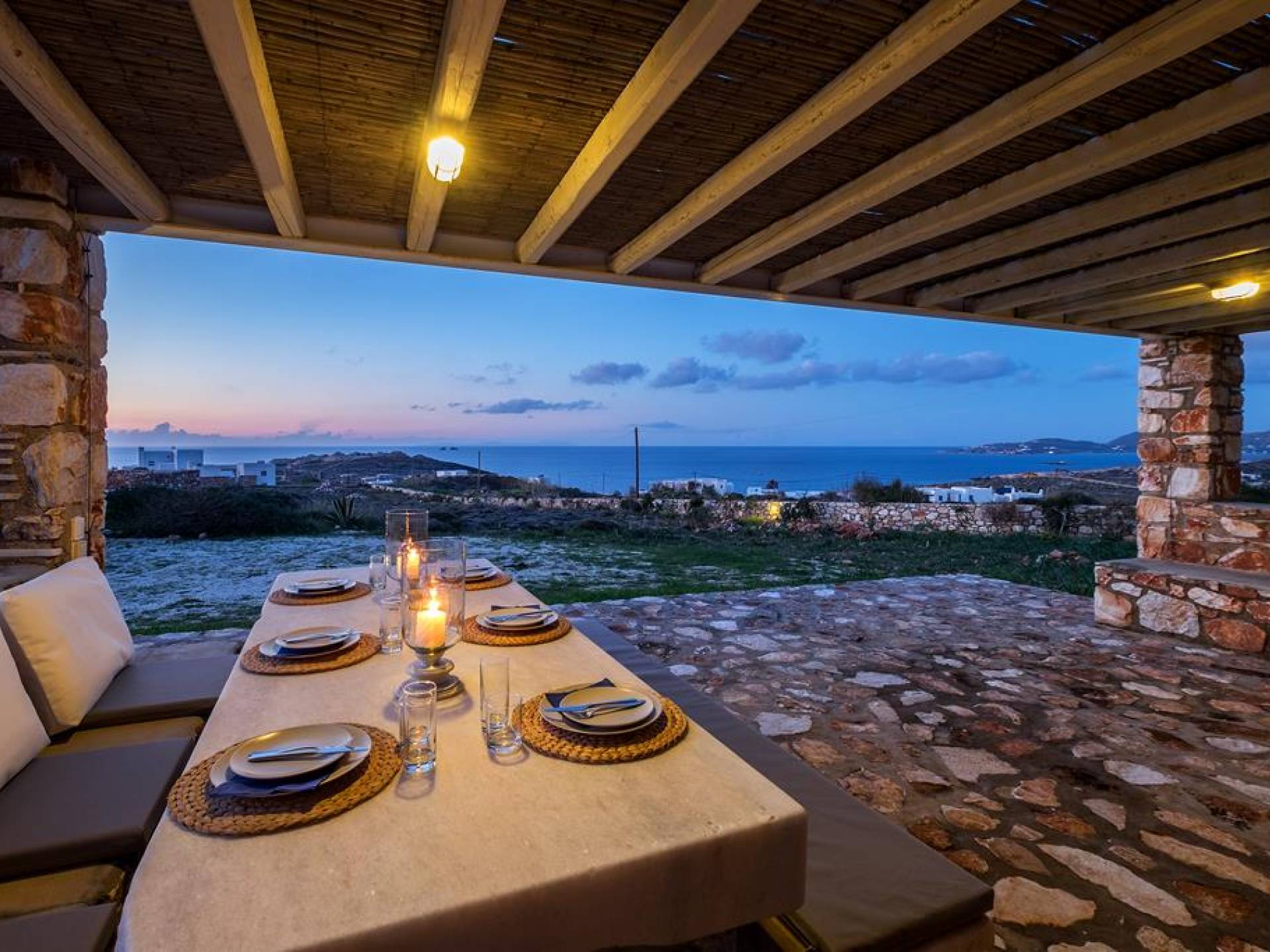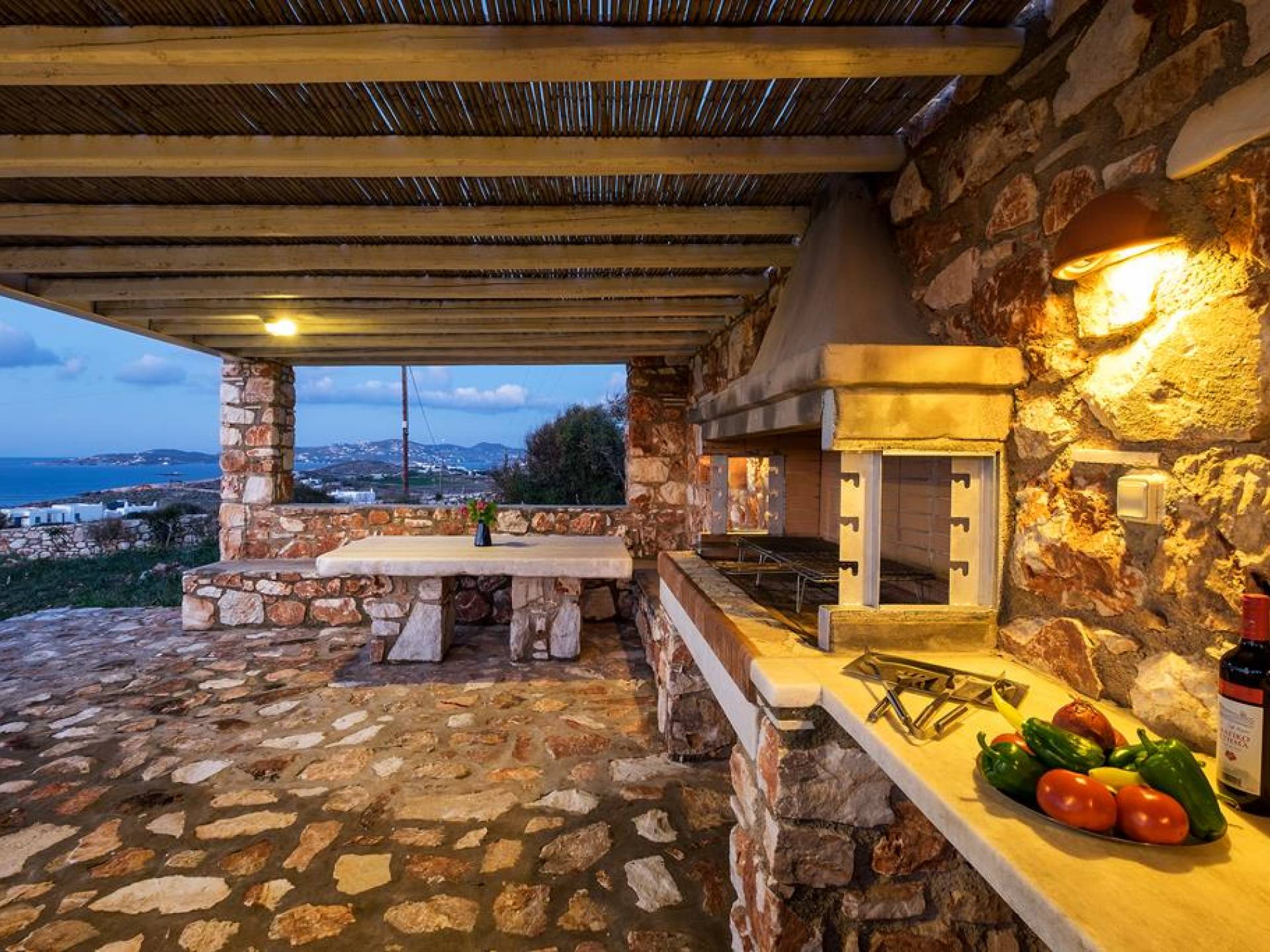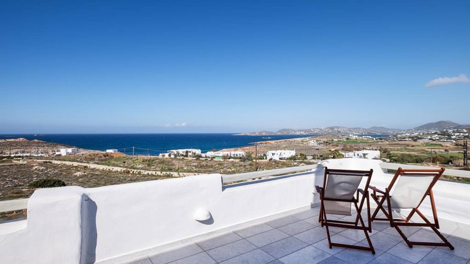 Die Levante Villa Paros ist eine Villa mit vier Schlafzimmern und einer großen Veranda mit Grillplatz, die einen herrlichen Blick auf den Hafen von Parikia, die Kykladeninseln und den Sonnenuntergang bietet.