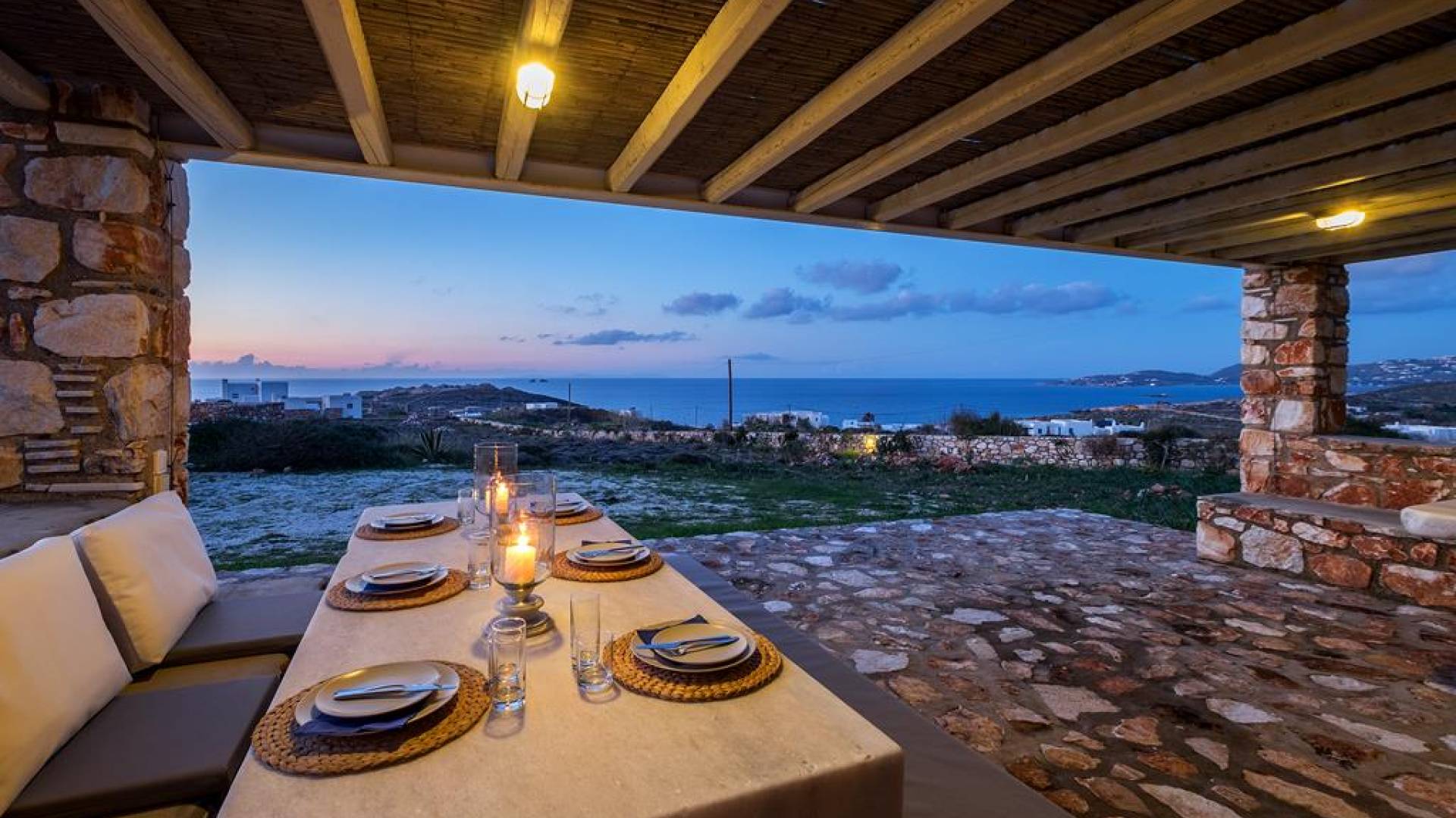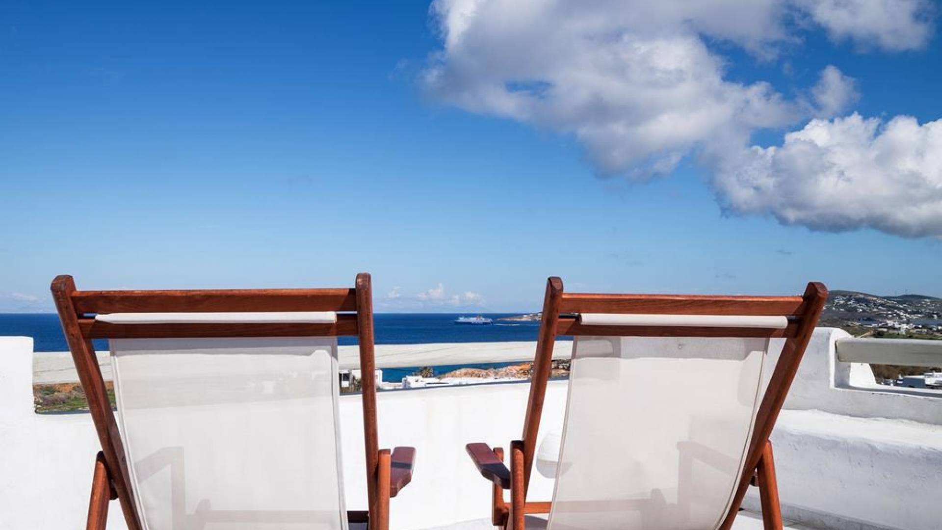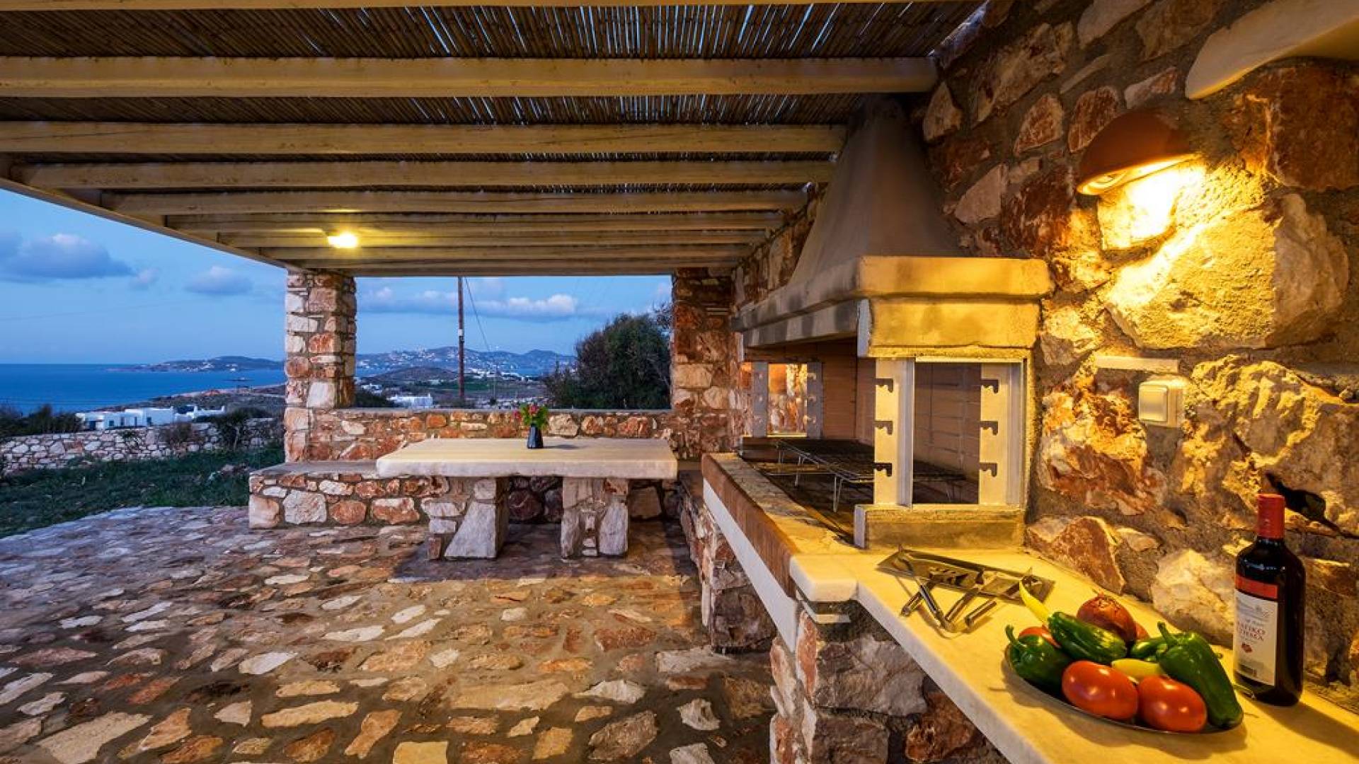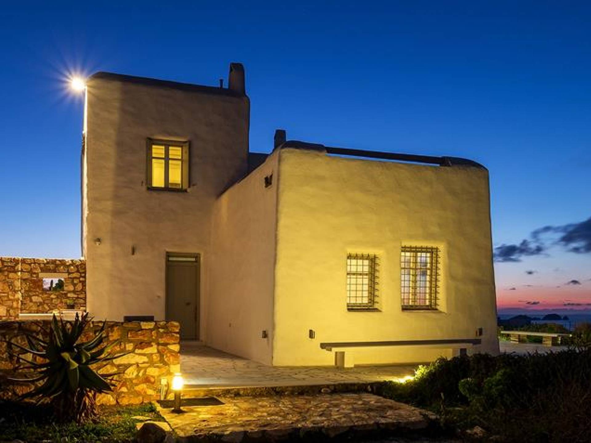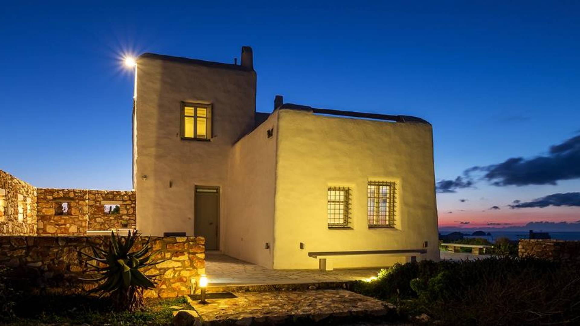 Die Levante Villa Paros ist eine Villa mit vier Schlafzimmern und einer großen Veranda mit Grillplatz, die einen herrlichen Blick auf den Hafen von Parikia, die Kykladeninseln und den Sonnenuntergang bietet.