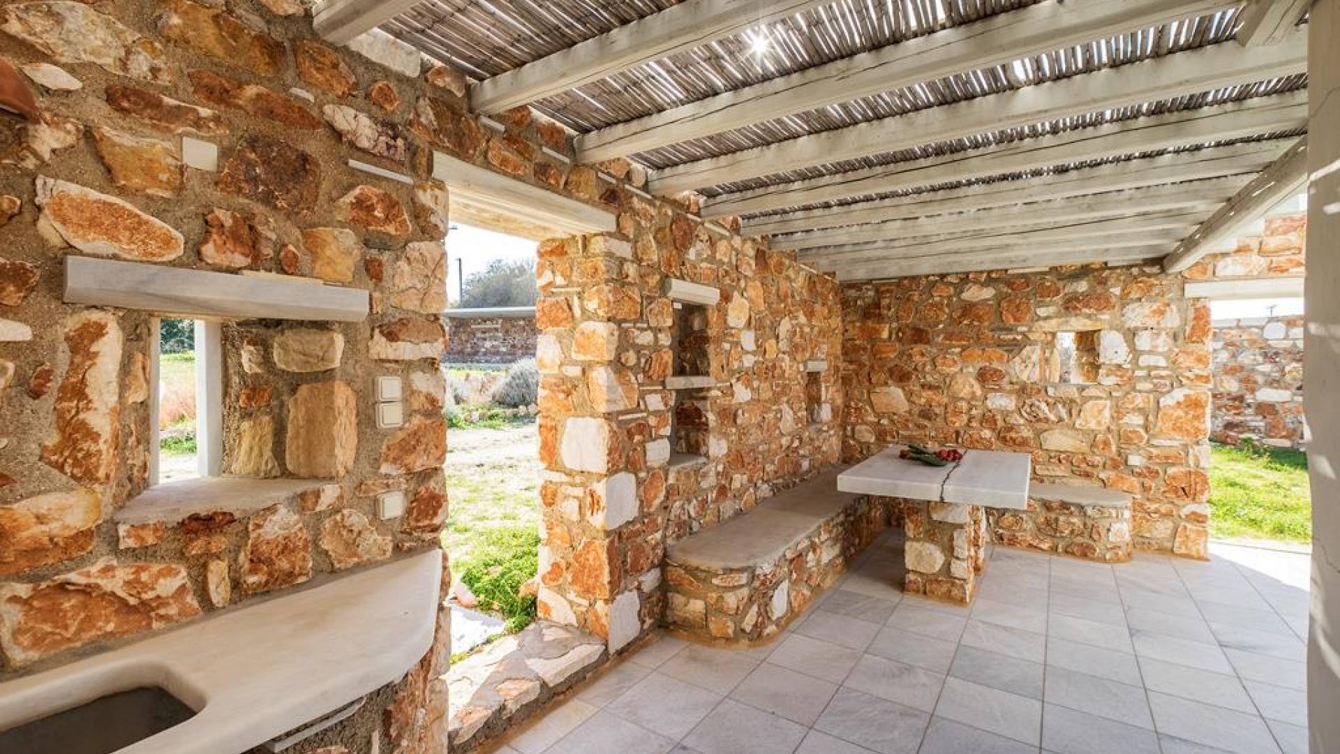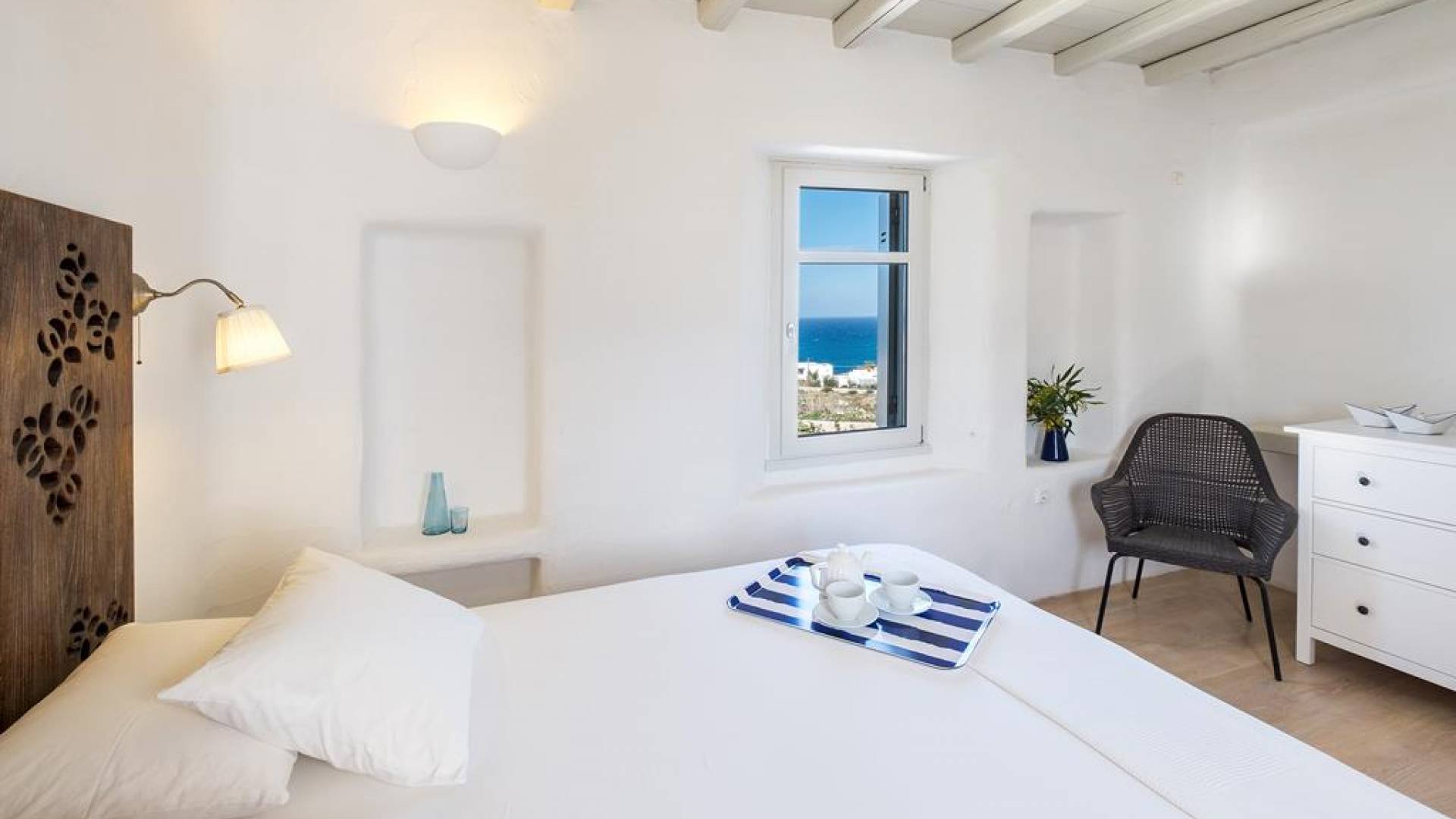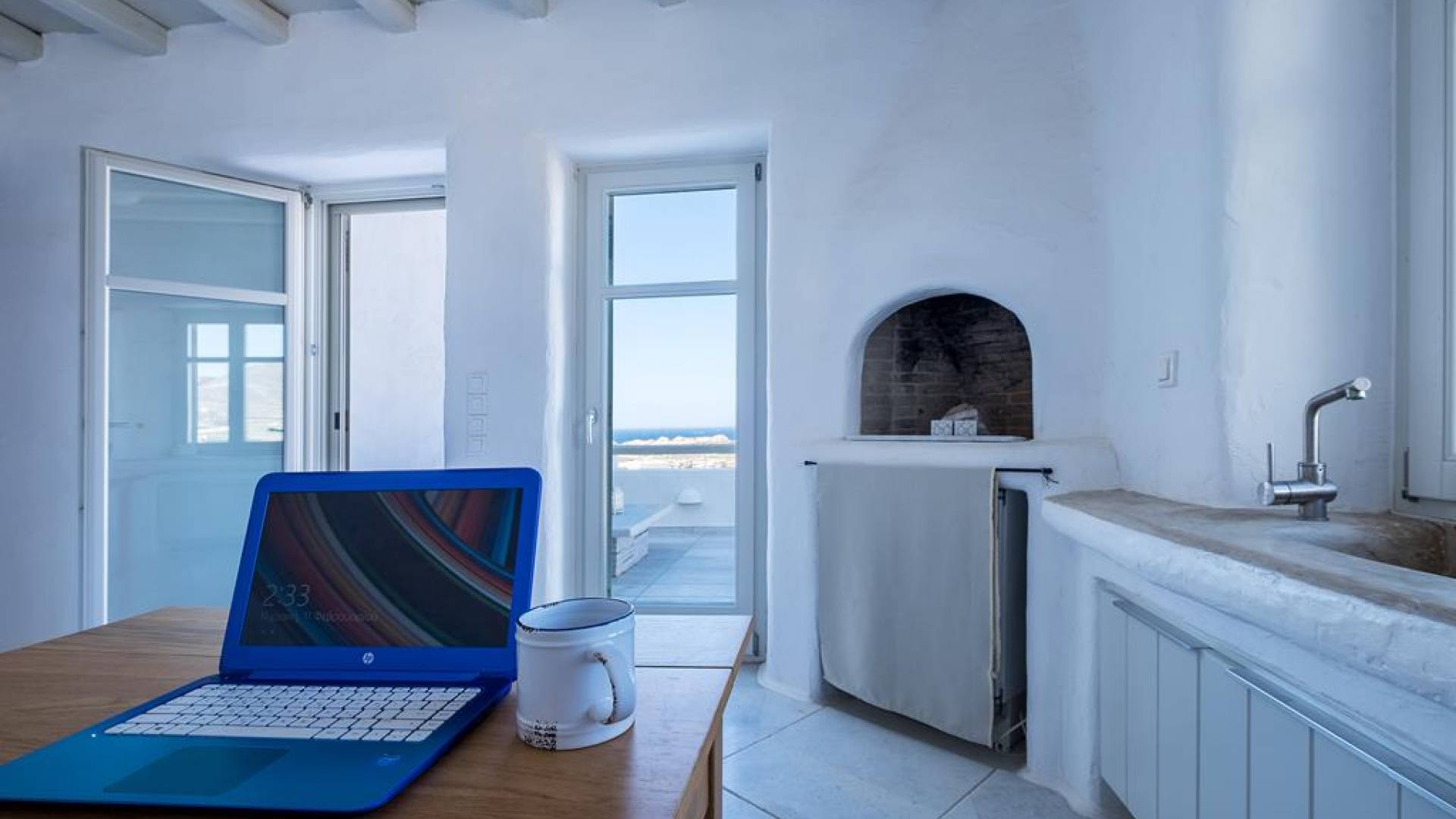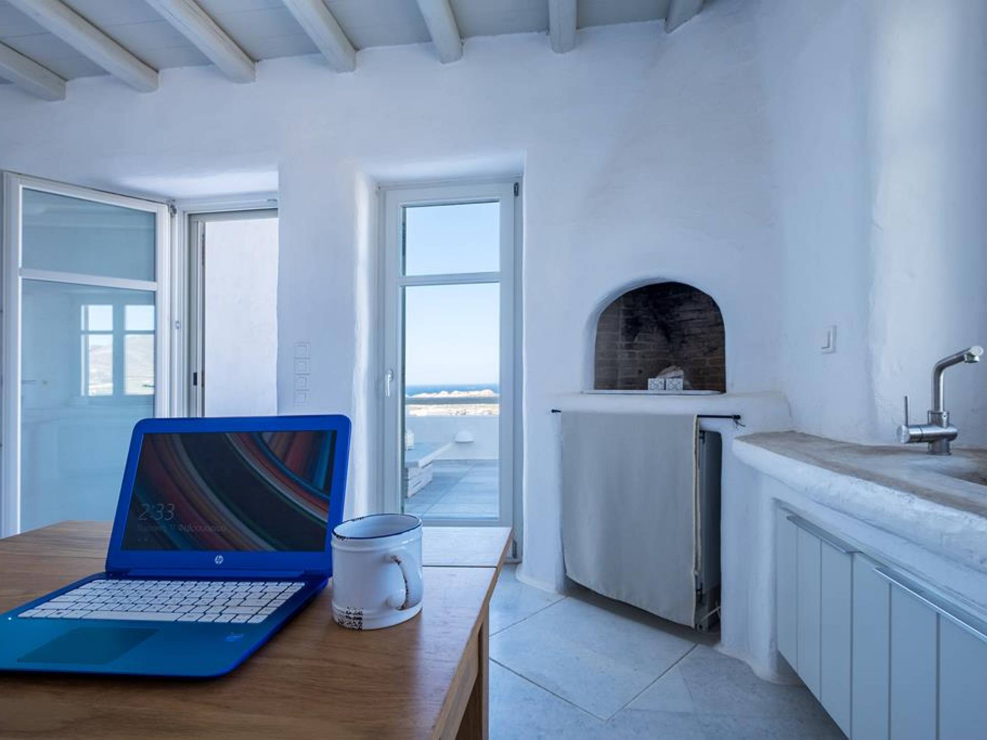 Die Levante Villa Paros ist eine Villa mit vier Schlafzimmern und einer großen Veranda mit Grillplatz, die einen herrlichen Blick auf den Hafen von Parikia, die Kykladeninseln und den Sonnenuntergang bietet.