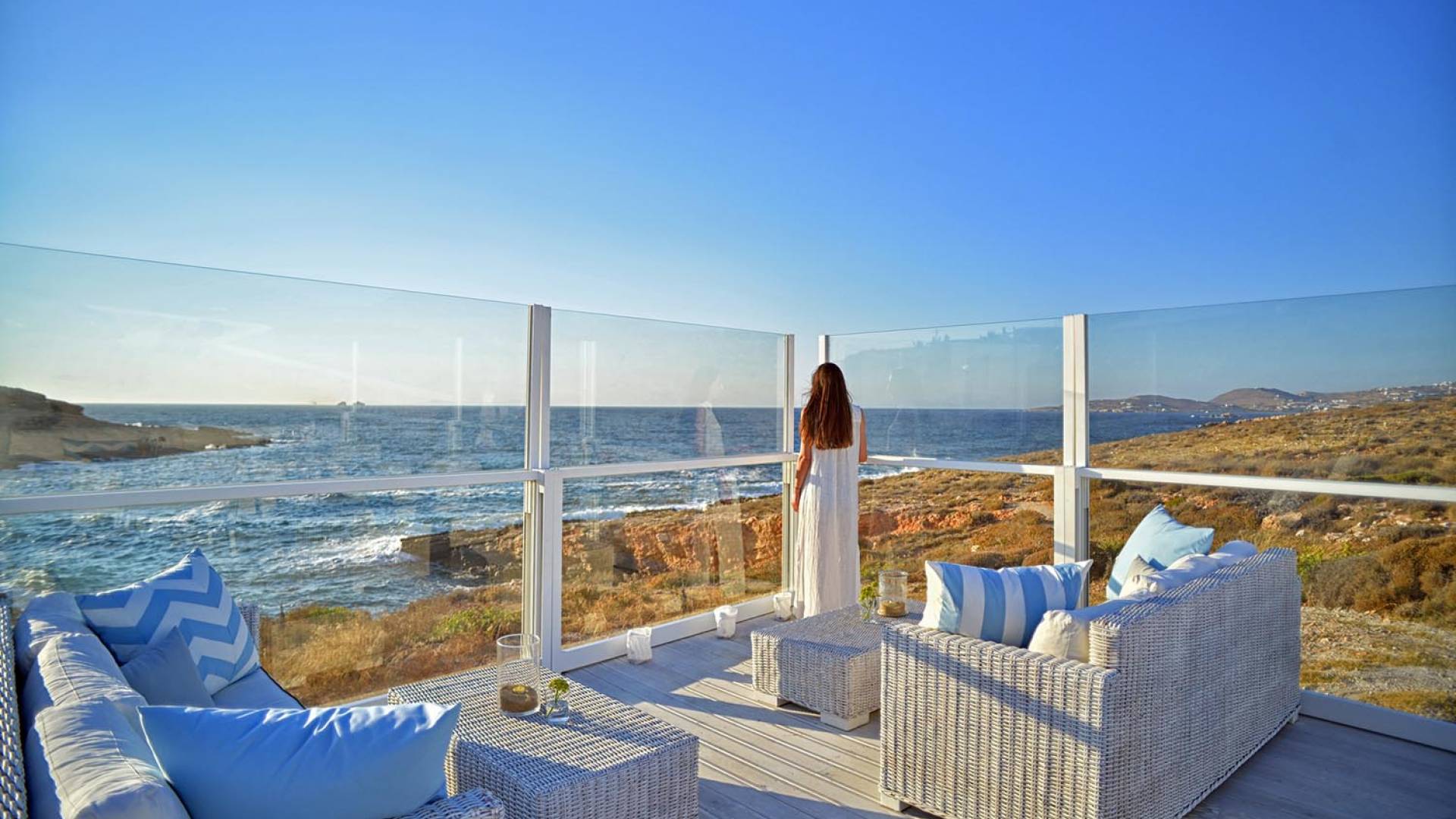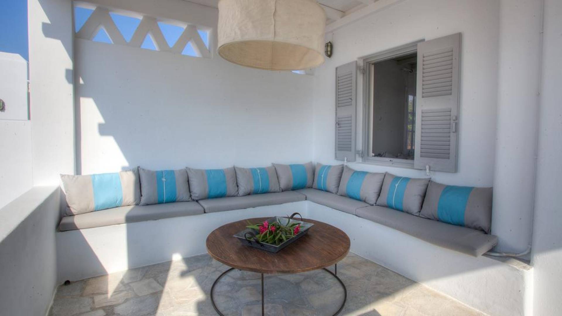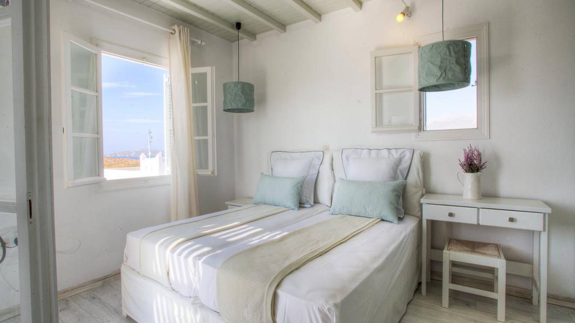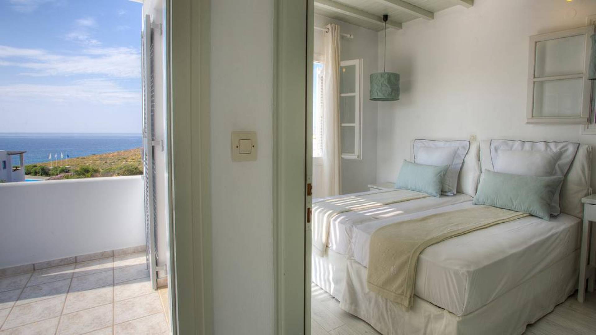 Nur 50 m vom Minois Village Hotel Suites and Spa entfernt können Sie Ihren Urlaub in dieser zweistöckigen Privatvilla genießen. Im Erdgeschoss befinden sich ein geräumiges Wohn-Esszimmer, eine Küche und ein Badezimmer. Im ersten Stock gibt es ein modernes Schlafzimmer, ein Badezimmer und einen Balkon mit Pergola und direktem Meerblick.