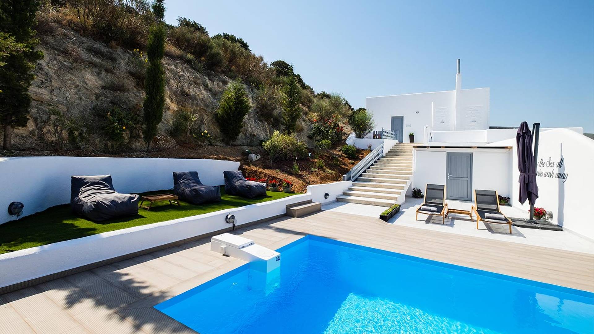 Paros Villas Nereids sind eine ausgezeichnete Wahl für einen Urlaub auf Paros für Familien oder Freunde und bieten geräumigen Wohnraum mit Meerblick, einen schönen Swimmingpool und eine großartige Lage in Parikia – Paros.