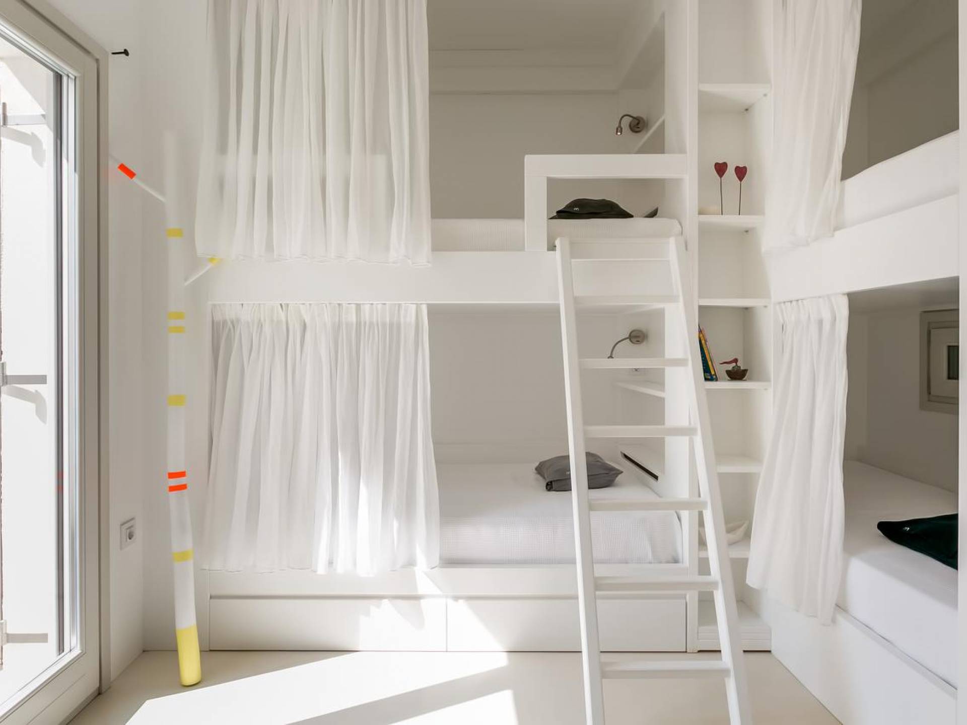 Im Erdgeschoss treffen Sie auf die offene, voll ausgestattete Küche, die sich bis zum gemütlichen Wohnzimmer erstreckt, und den exquisiten Essbereich im Freien mit einem Tisch für 14 Gäste. Es gibt auch zwei schön ausgestattete Schlafzimmer, eines mit 2 Etagenbetten und das andere mit einem Doppelbett (oder zwei Einzelbetten), WC und Bad. Auf der gleichen Ebene befindet sich auch ein unabhängiges Gästezimmer von 25 m2 mit eigenem Bad, falls Sie etwas mehr Privatsphäre abseits des Hauptgebäudes benötigen.