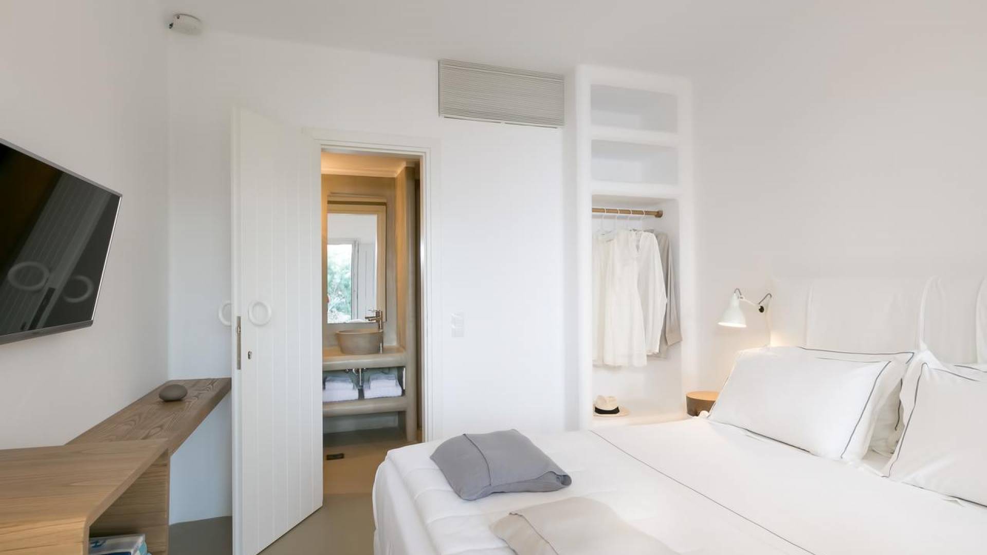 Seven Santa Maria Villa Paros ist nur 30 Meter vom Strand mit dem goldenen Sand und dem kristallklaren Wasser entfernt.