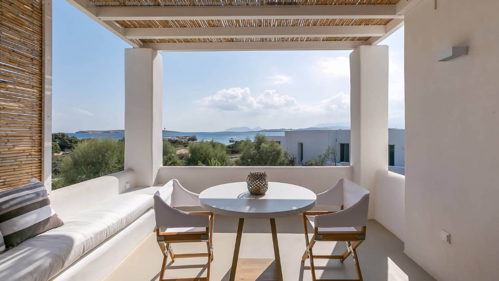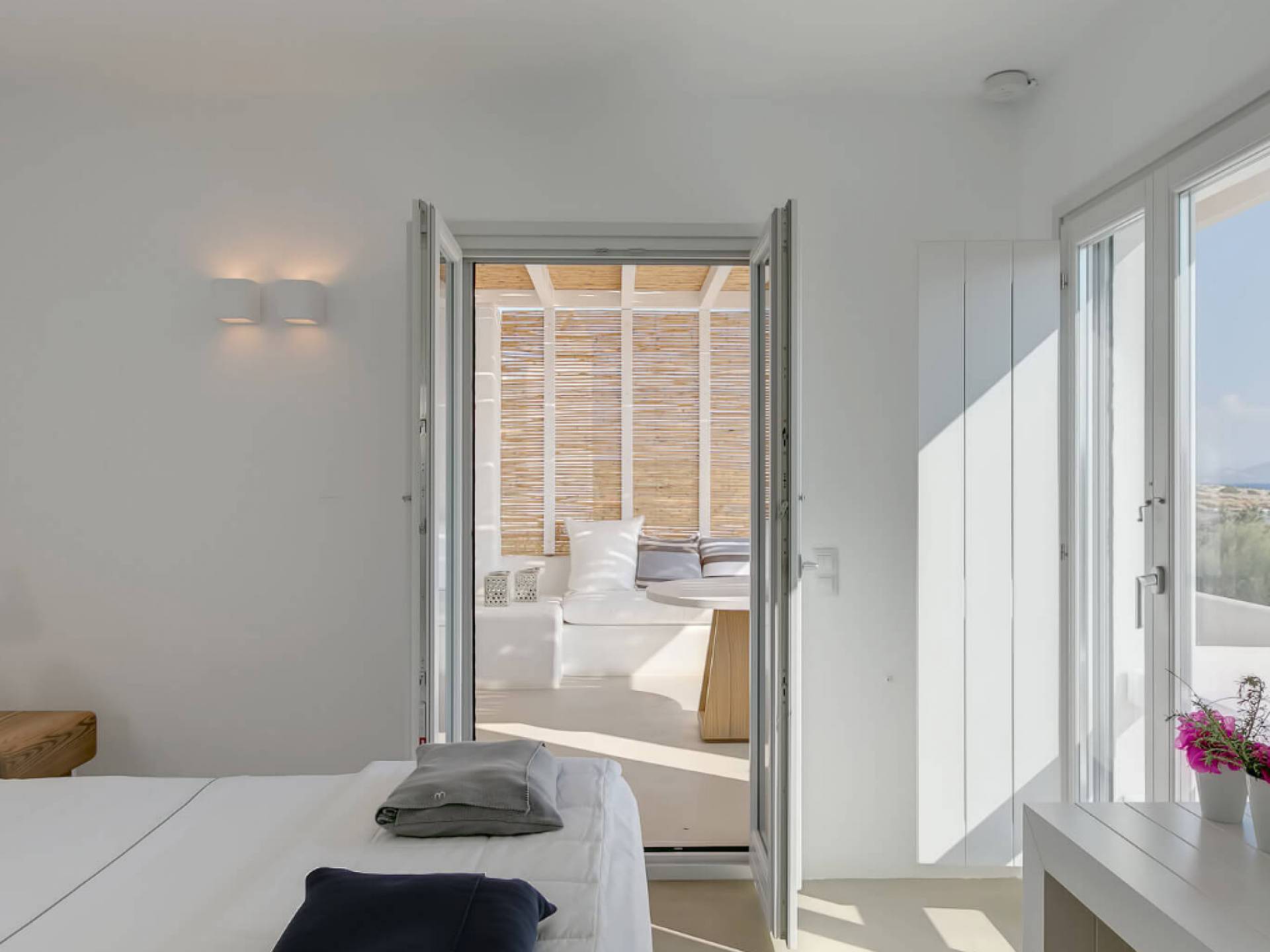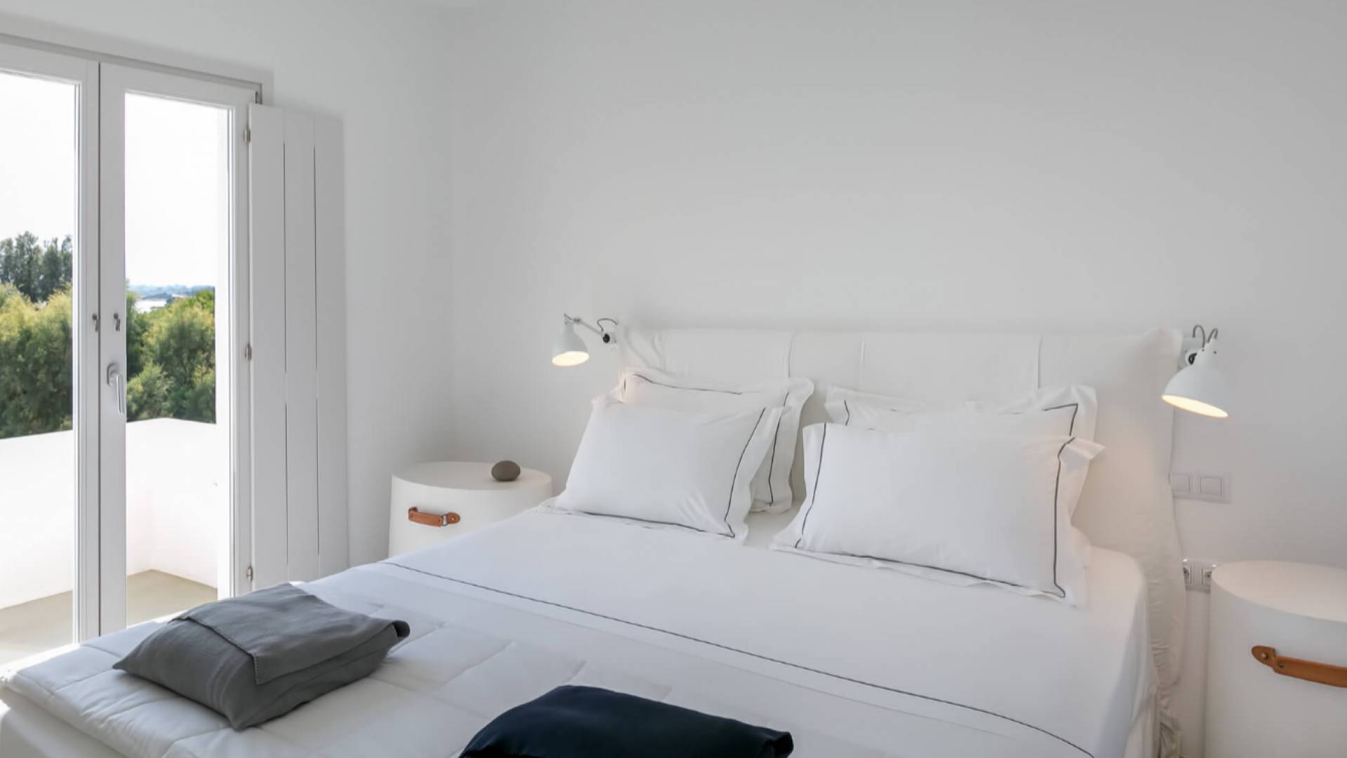 Im zweiten Stock treffen Sie auf das Schlafzimmer der Master Suite mit einem wunderschönen Doppelbett und einer atemberaubenden Veranda mit Meerblick.