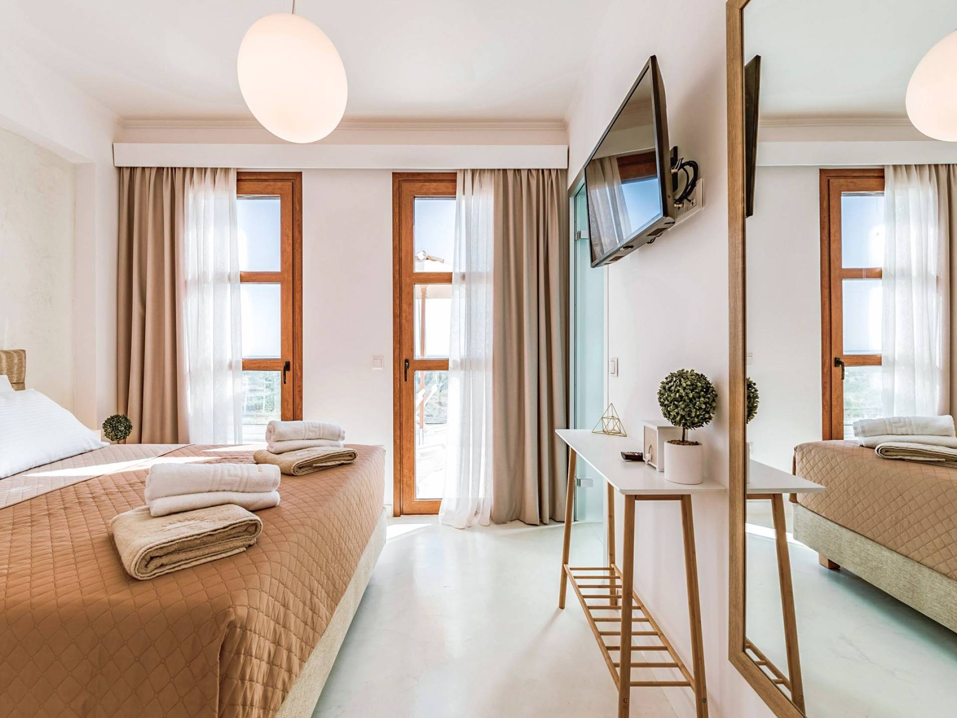 Villa Eventide Rhodes ist bekannt für ihre Ruhe und einladende Atmosphäre, da sie nur wenige Schritte vom magischen Strand Gennadi Beach entfernt ist. Nur zwei Gehminuten entfernt befindet sich das charmante traditionelle Dorf Gennadi mit seinen Geschäften, Bars, Restaurants, Bars, Apotheken und Autovermietungen. In nur 25 Autominuten Entfernung befindet sich der Strand Prasonisi, der bei Wassersportlern sehr beliebt ist. Der Flughafen der Insel liegt etwa eine Autostunde von den Villen entfernt. Besuchen Sie auch Lindos, das nur 10 Fahrminuten entfernt liegt. Die Akropolis von Lindos ist die exquisiteste archäologische Stätte von Rhodos und hat die idyllischsten Strände, wie den Strand von Saint Paul. Besucher sollten auch die Altstadt erkunden, die zum UNESCO-Weltkulturerbe gehört und etwa eine Autostunde von der Villa entfernt liegt.