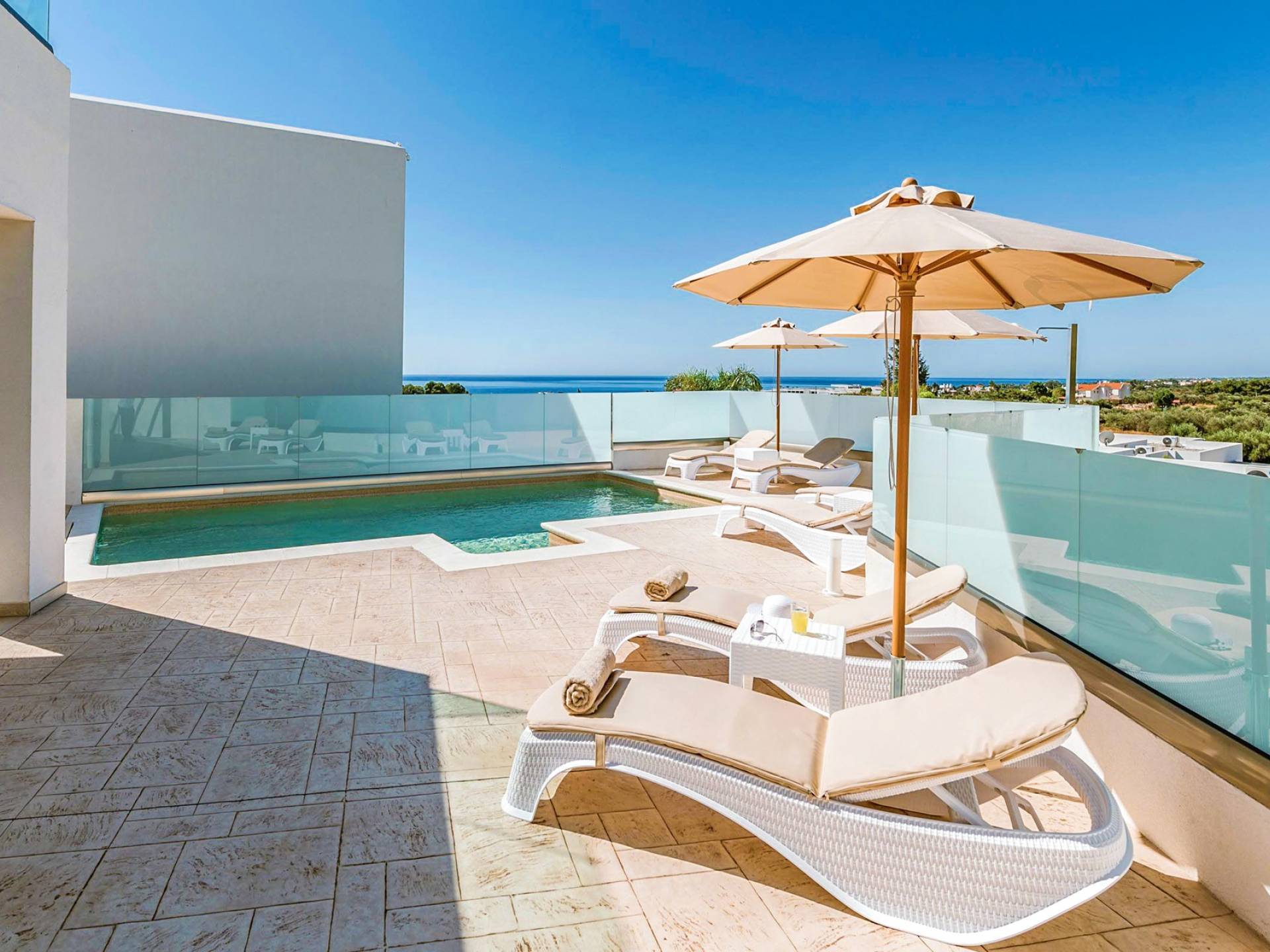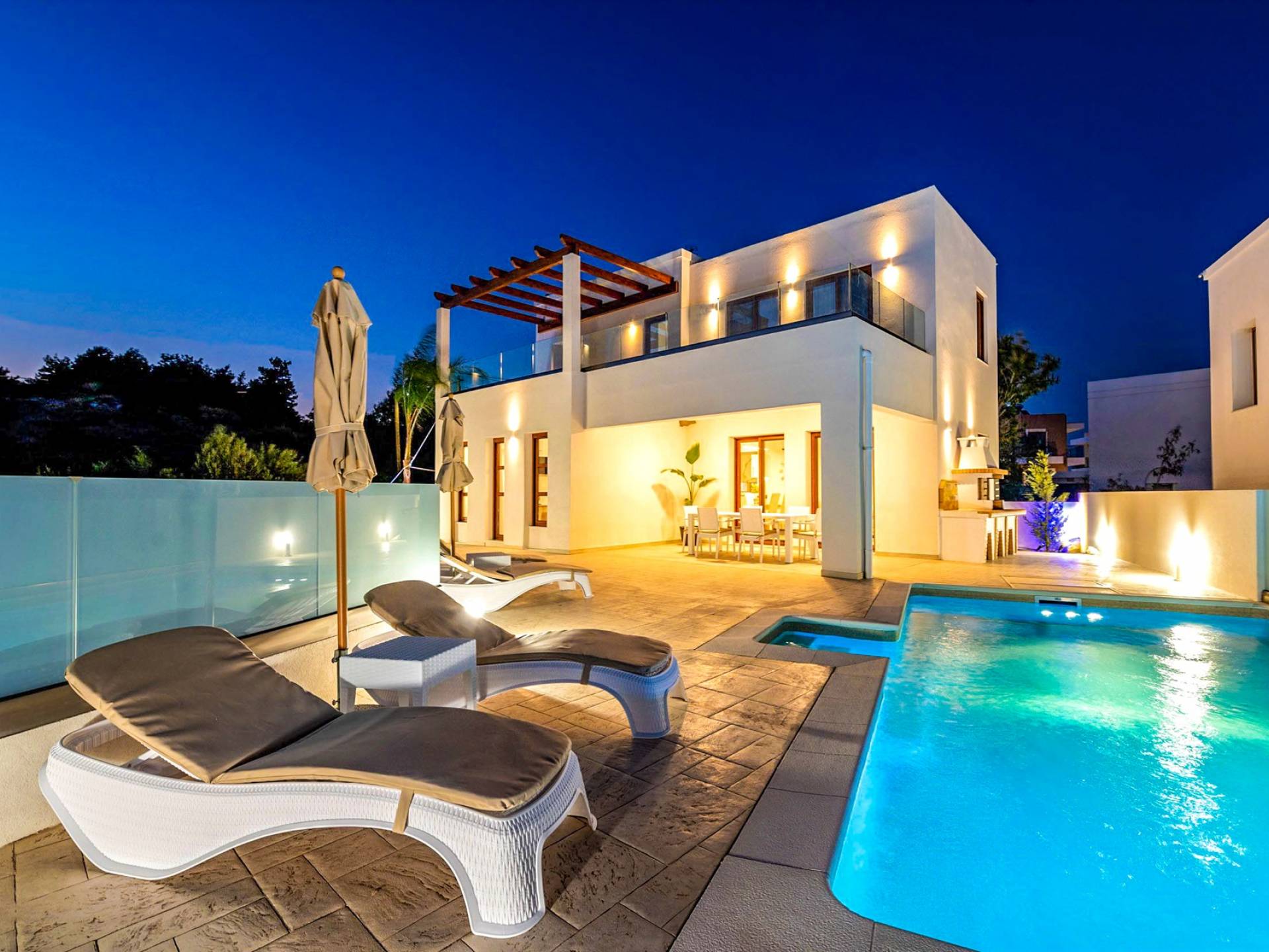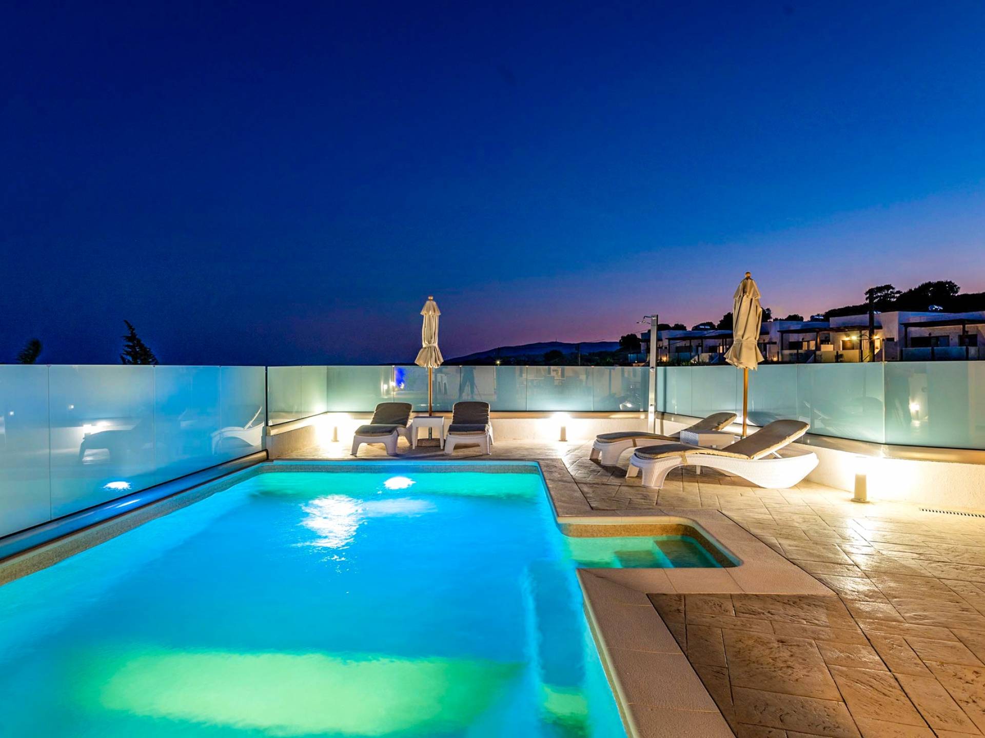 Farbe blau, Sonne und Luxus, nichts kann diese Kombination übertreffen. Was gibt es sonst noch für Ihren Urlaub zu fragen? Gönnen Sie sich einen beheizten privaten Pool in der Gemütlichkeit Ihrer eigenen Villa, entweder drinnen oder draußen. Das…