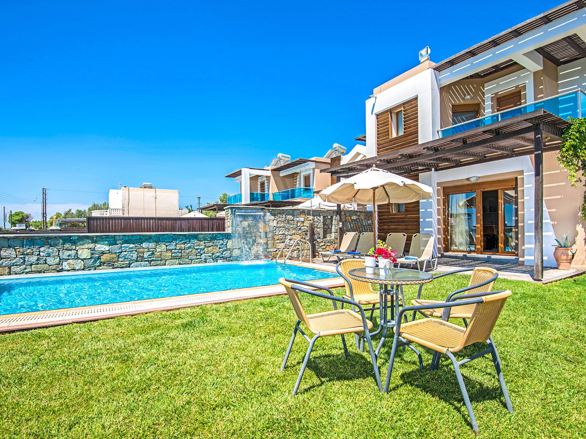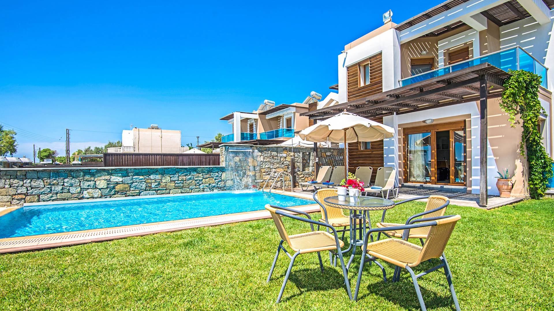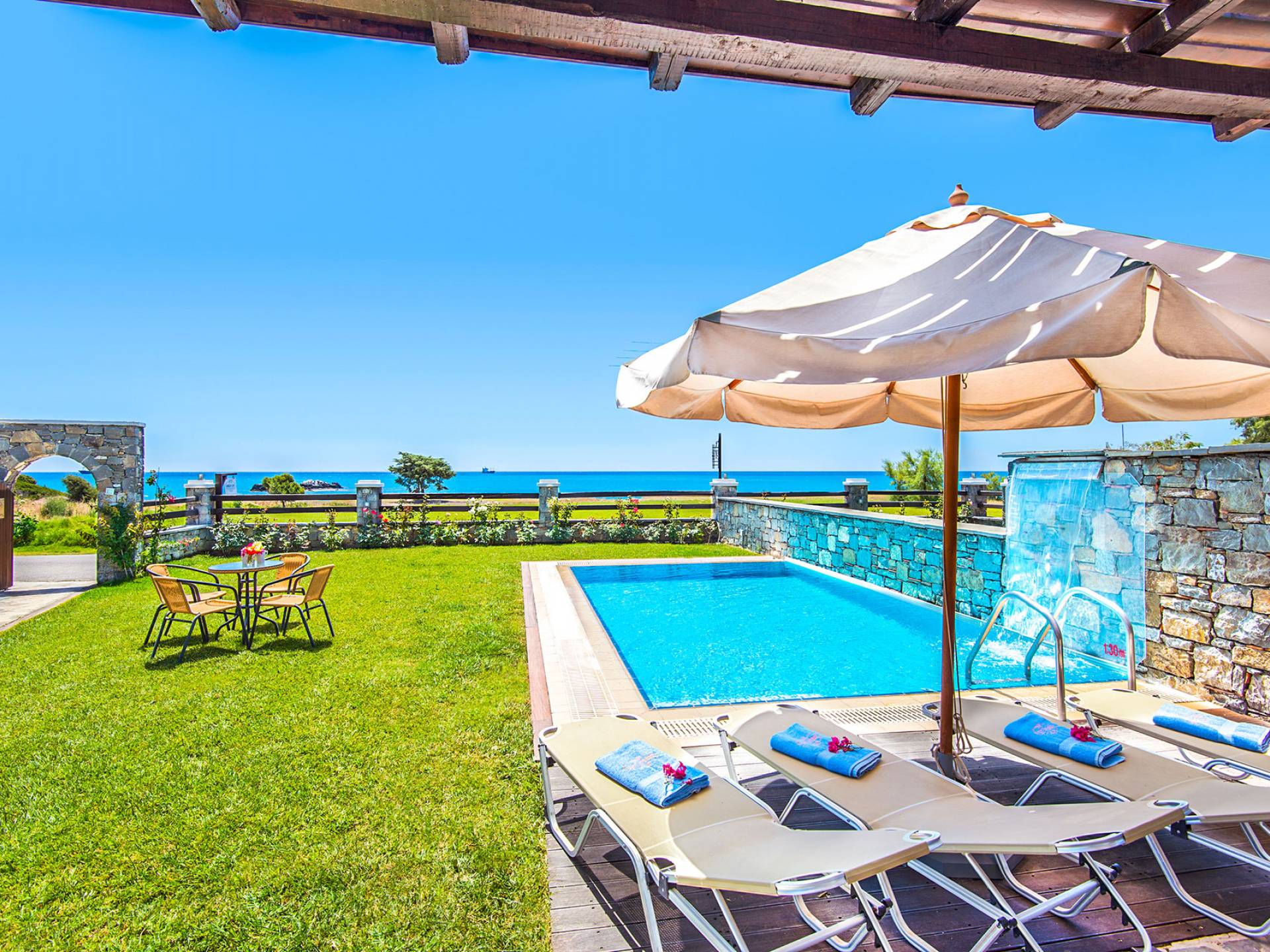 liegt perfekt, nur wenige Schritte von einem magischen Strand entfernt. Die Horizon Line Villas bieten private Pools, große Wohnräume und Spielbereiche. ideal für Ihren Familienurlaub in Griechenland.