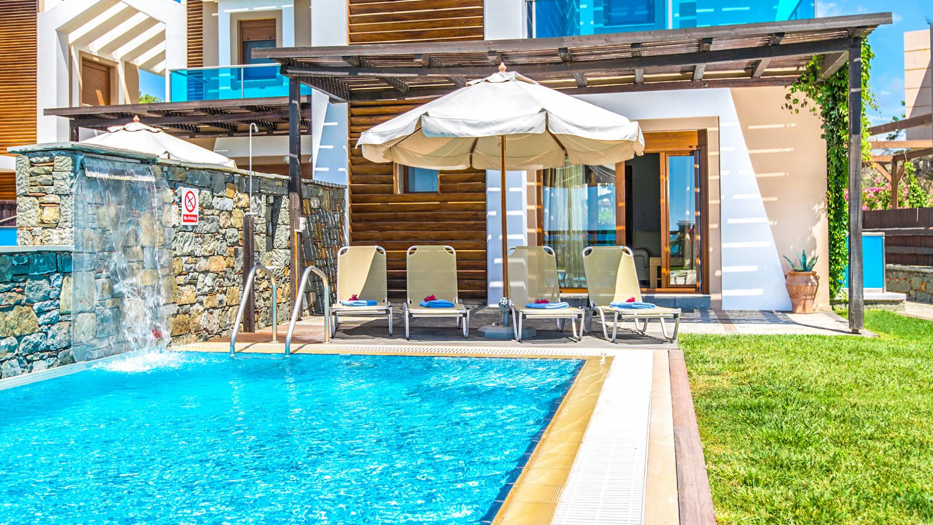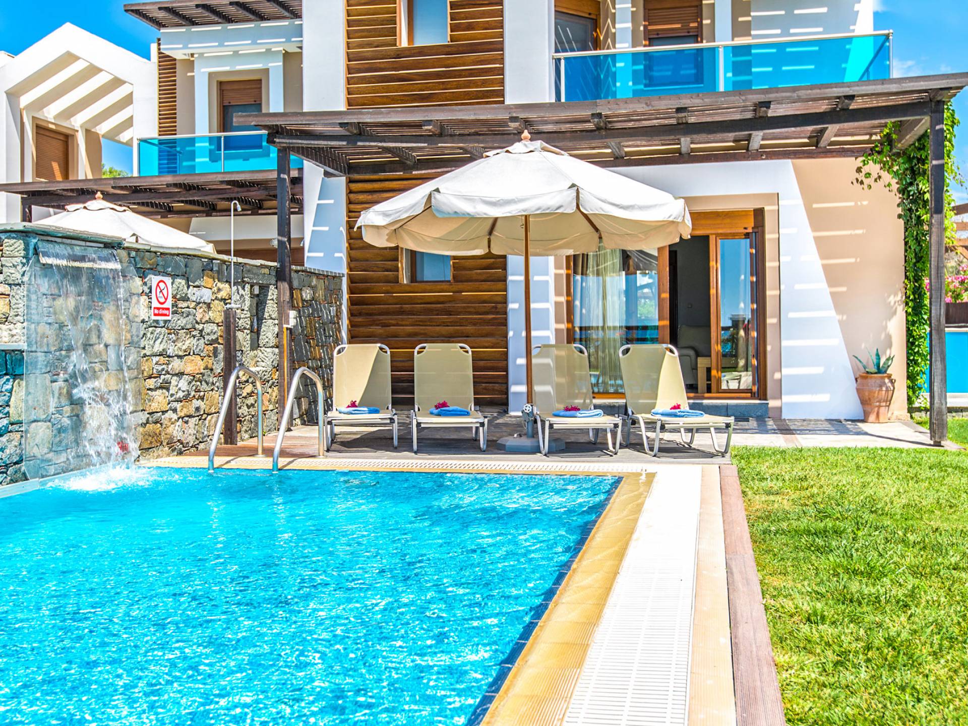 Farbe blau, Sonne und Luxus, nichts kann diese Kombination übertreffen. Was gibt es sonst noch für Ihren Urlaub zu fragen? Gönnen Sie sich einen beheizten privaten Pool in der Gemütlichkeit Ihrer eigenen Villa, entweder drinnen oder draußen. Das…