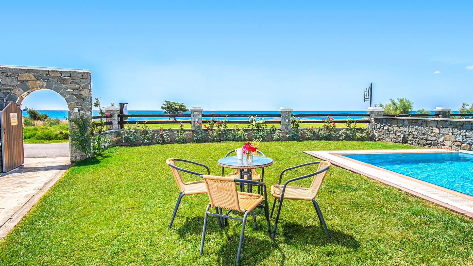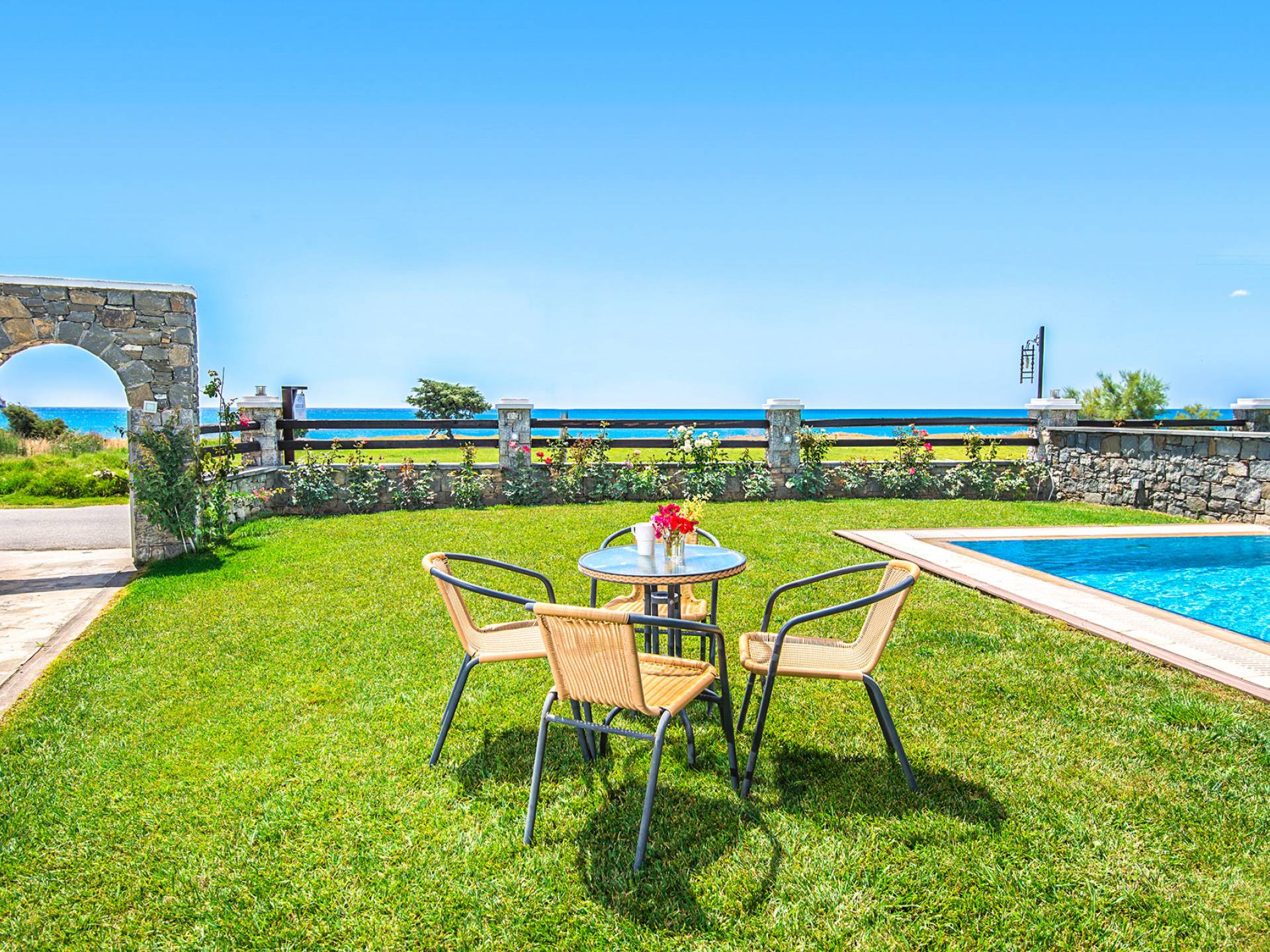 Ihre schwierigste Entscheidung ist es, zwischen dem privaten Pool Ihrer Villa und dem atemberaubenden Strand von Kiotari zu wählen, der buchstäblich nur wenige Schritte davor liegt. Vielleicht möchten Sie das ausgezeichnete kristallklare Wasser des Pools mit dem aquamarinblauen Wasser des Kiotari-Strandes kombinieren, der Sie zum Schwimmen ruft.