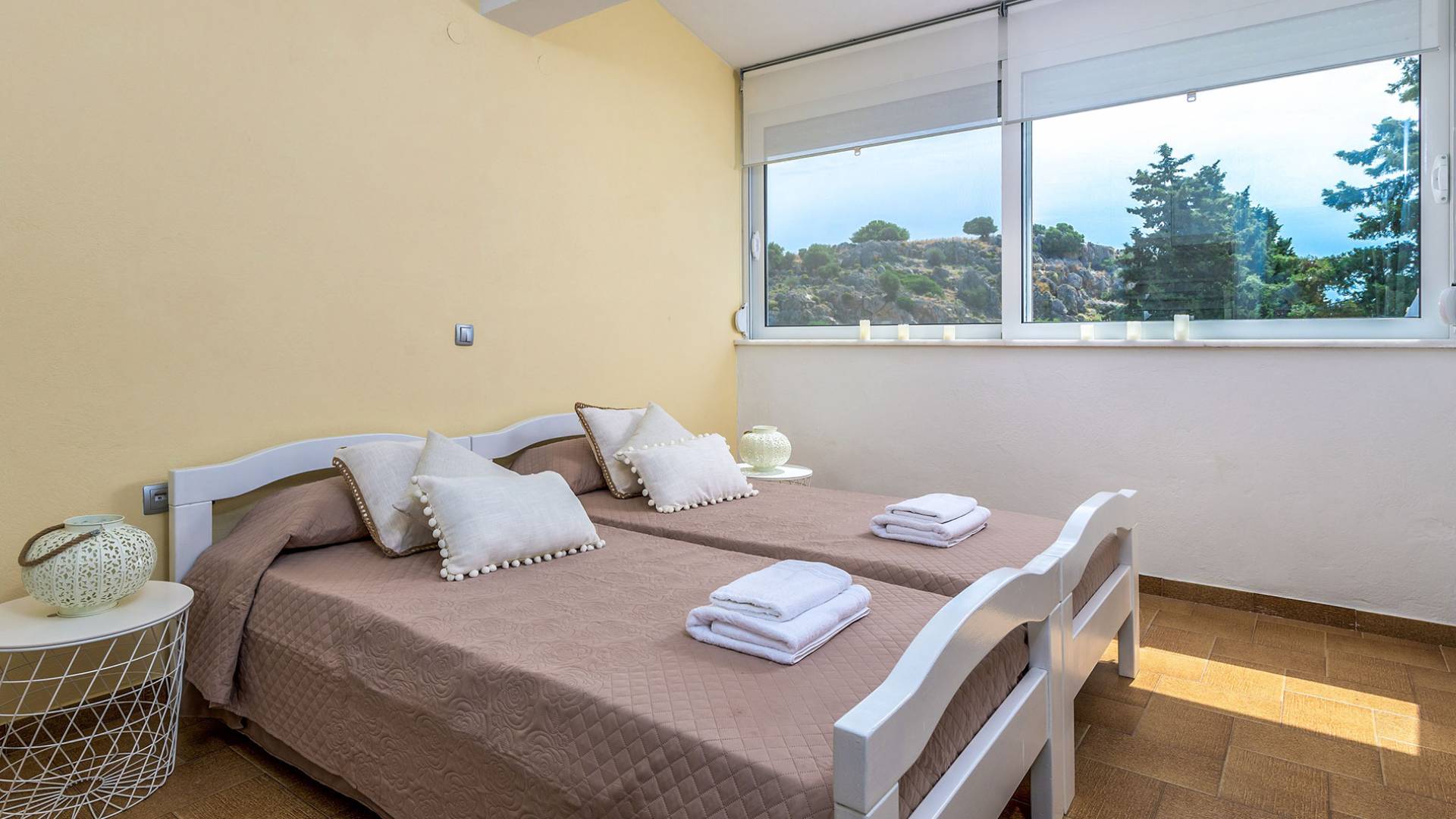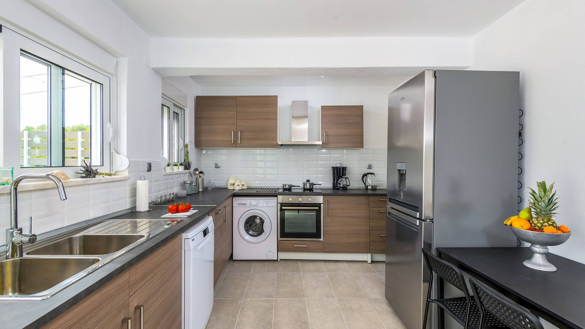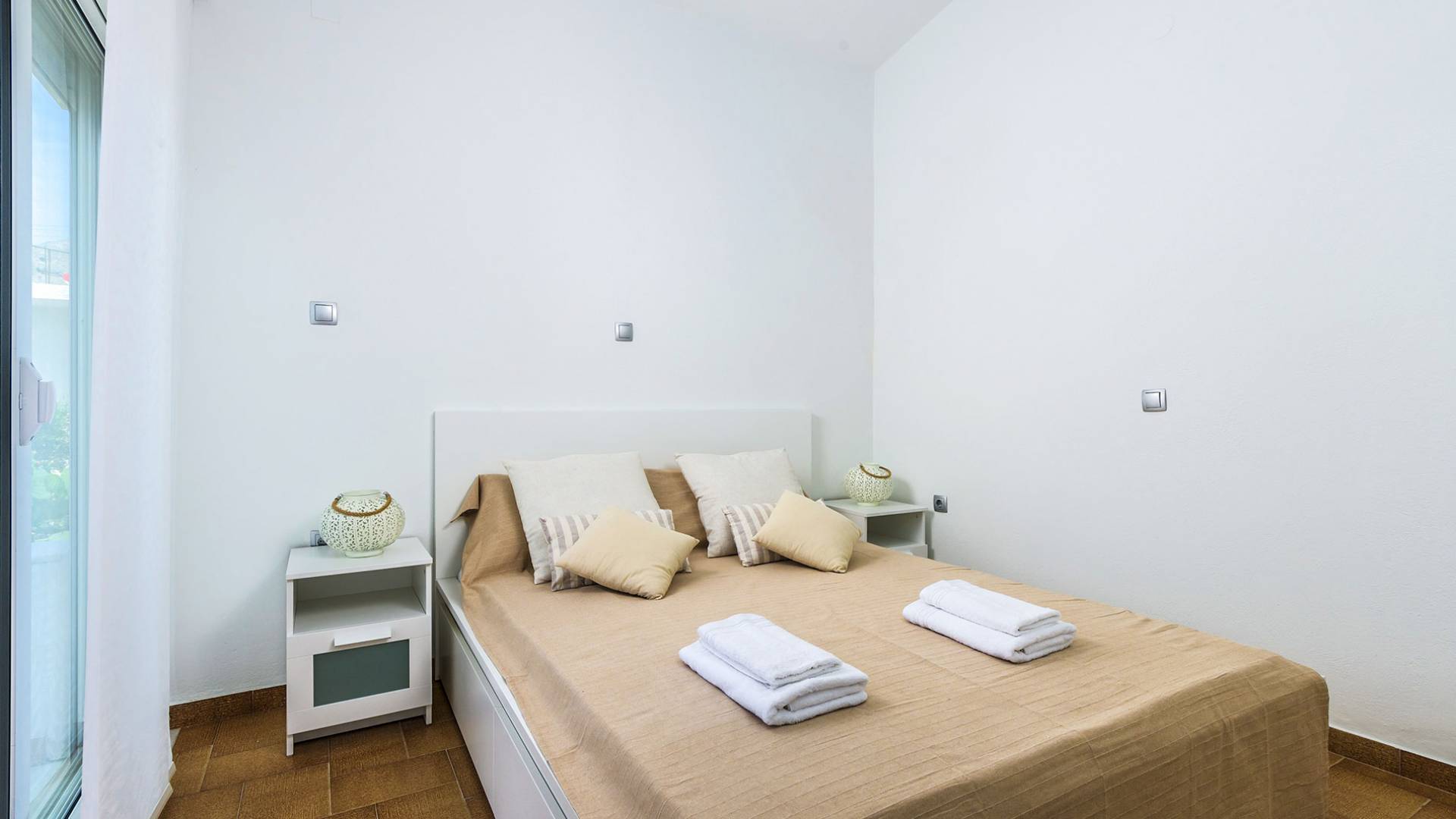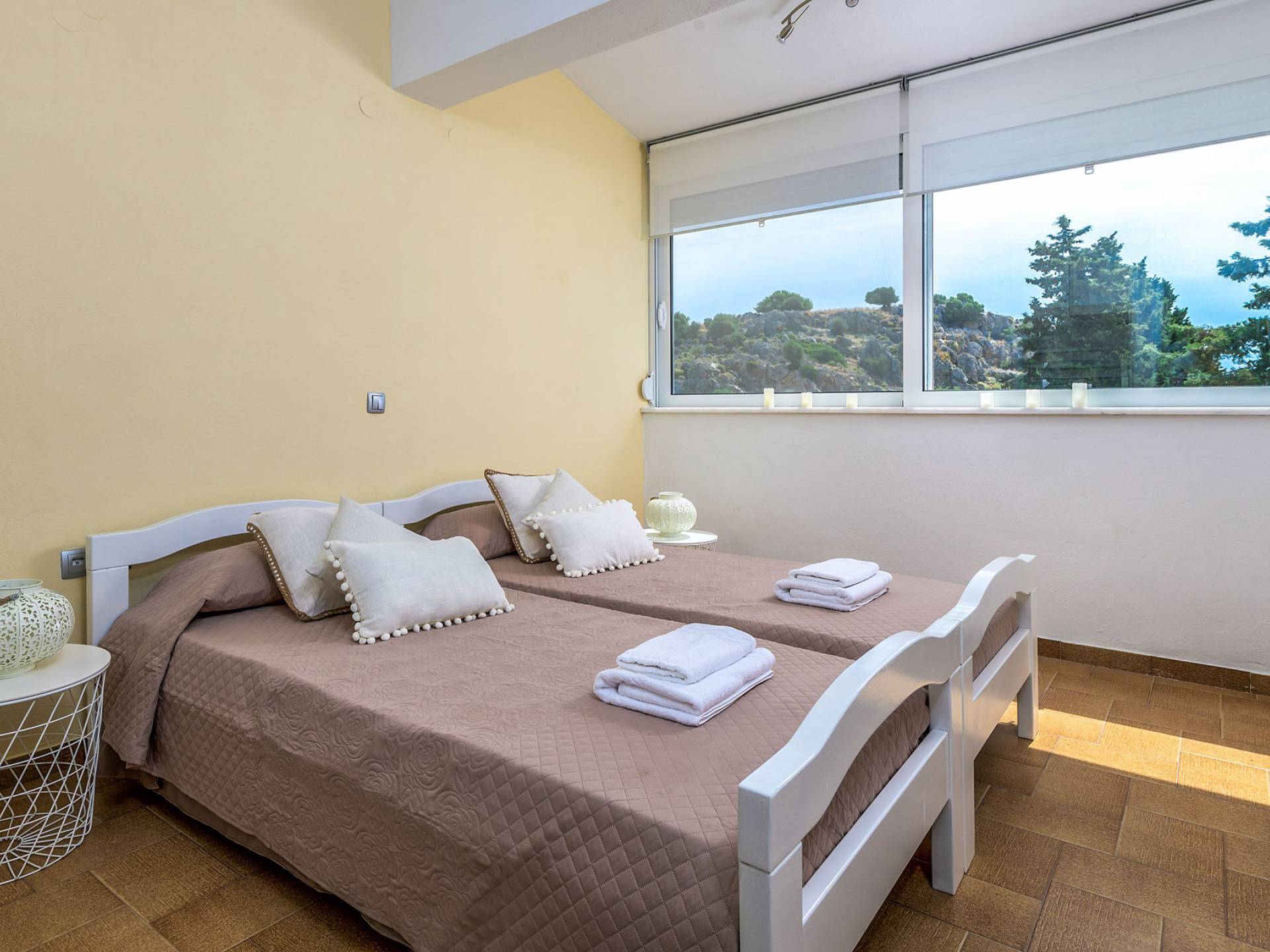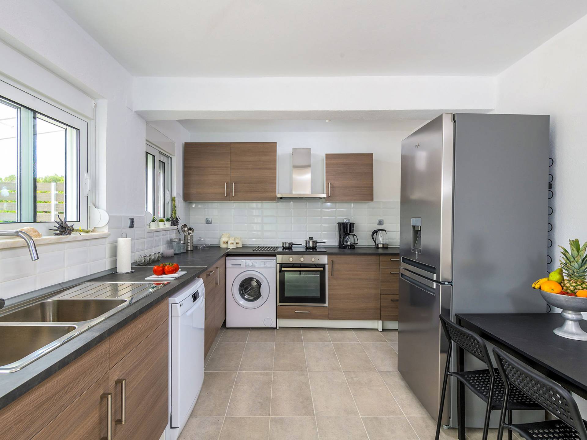 Umgeben von einem mediterranen Garten mit großem Swimmingpool, Sonnenschirmen, Sonnenliegen und Grill. Es ist eine ausgezeichnete Wahl für Paare, Familien oder Gruppen von Freunden. Die Villa besteht aus 2 Schlafzimmern mit großen Doppelbetten und 1 Schlafzimmer mit zwei Einzelbetten. Die Unterkunft verfügt über ein großes offenes Wohnzimmer mit einem bequemen Sofa, das in ein Doppelbett umgewandelt werden kann, und einem Flachbild-Sat-TV. Es gibt eine voll ausgestattete Küche, die auf die Bedürfnisse moderner Reisender ausgelegt ist, mit einem Esstisch, einem großen Kühlschrank, einem Ofen, einer Mikrowelle, einem Wasserkocher und einer Filterkaffeemaschine. Die Unterkunft verfügt über 2 Badezimmer mit Dusche. Kostenloser WLAN-Zugang ist im gesamten Gebäude verfügbar.
