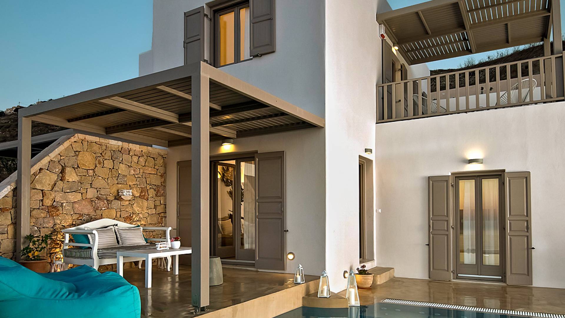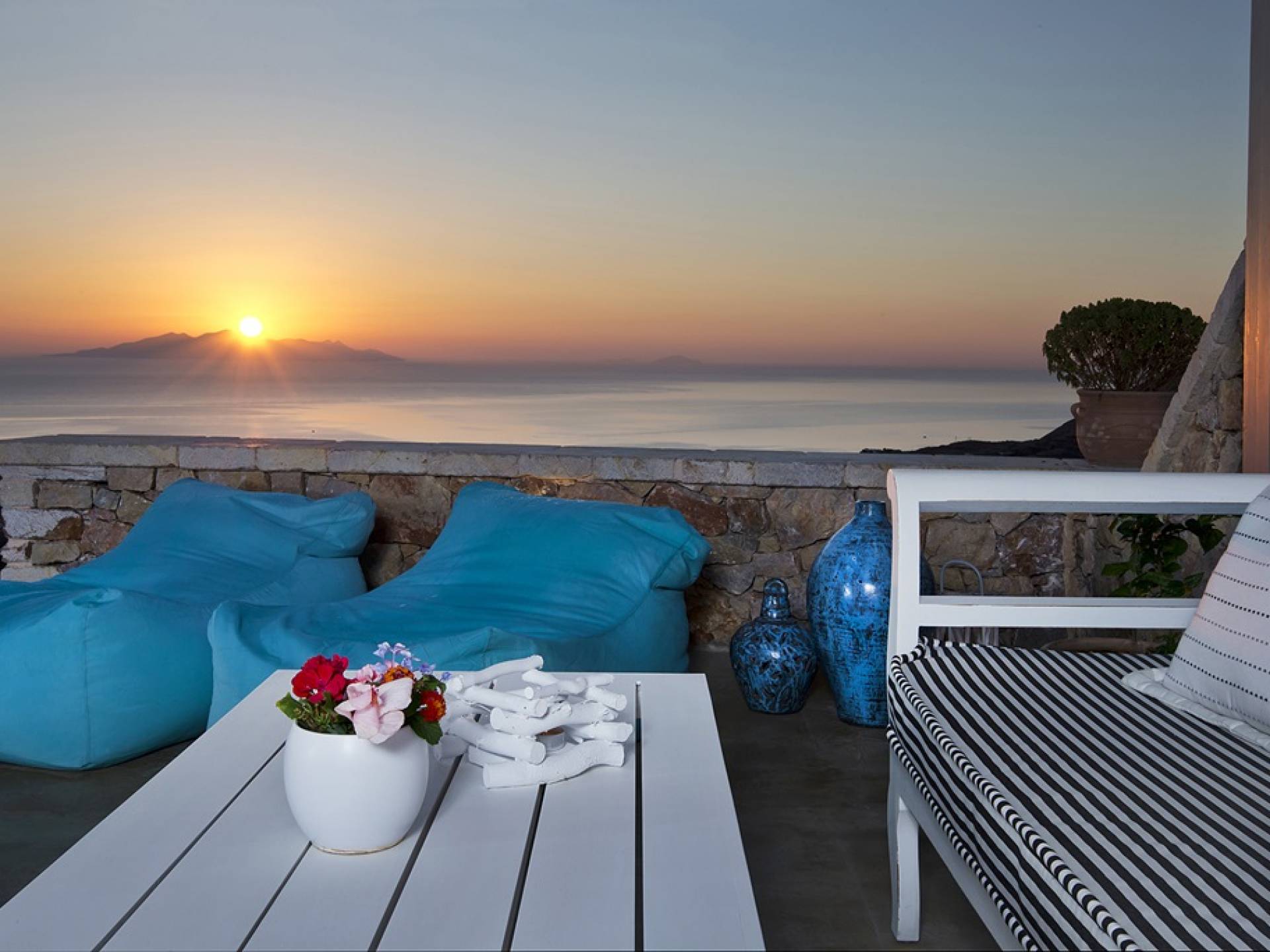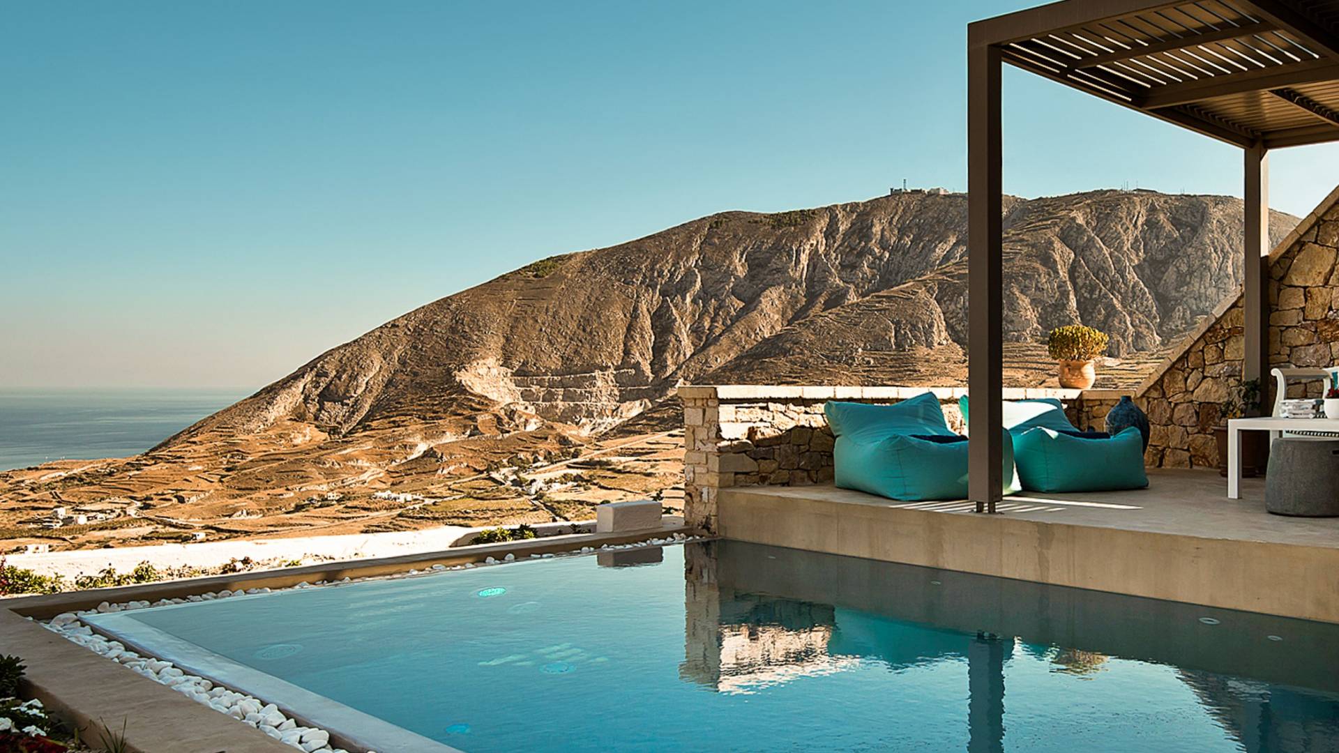 Eolia oder Eolia, nach Homer, war eine mythische, schwimmende Insel, auf der Eolus, ein griechischer Gott und Bewahrer der Winde, seine private Residenz unterhielt. Scheinbar auf ähnliche Weise über dem tiefen Blau der Ägäis zu schweben, schaffen die Eolia Luxury Villas ihrerseits das Gefühl eines ätherischen privaten Paradieses.