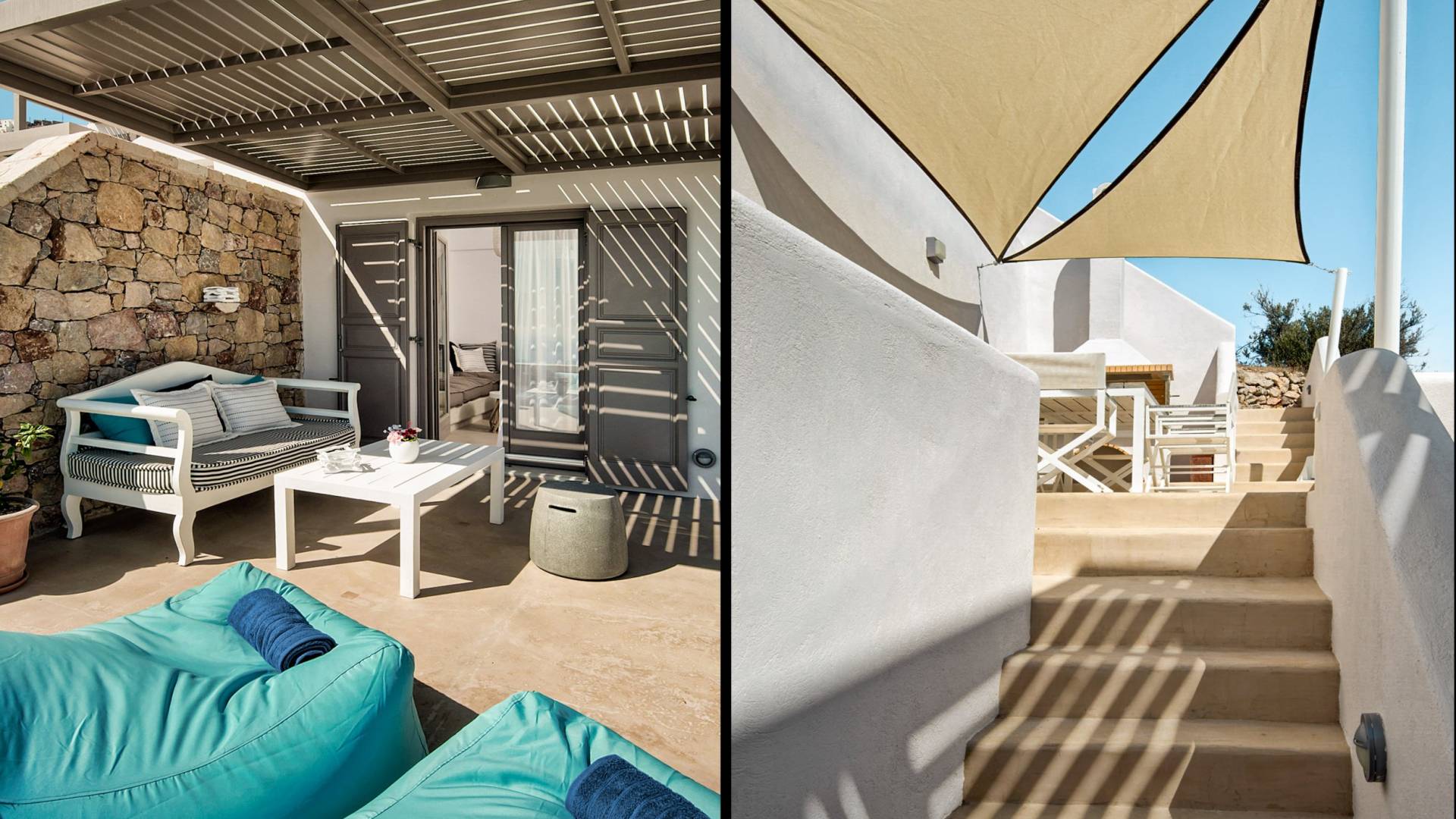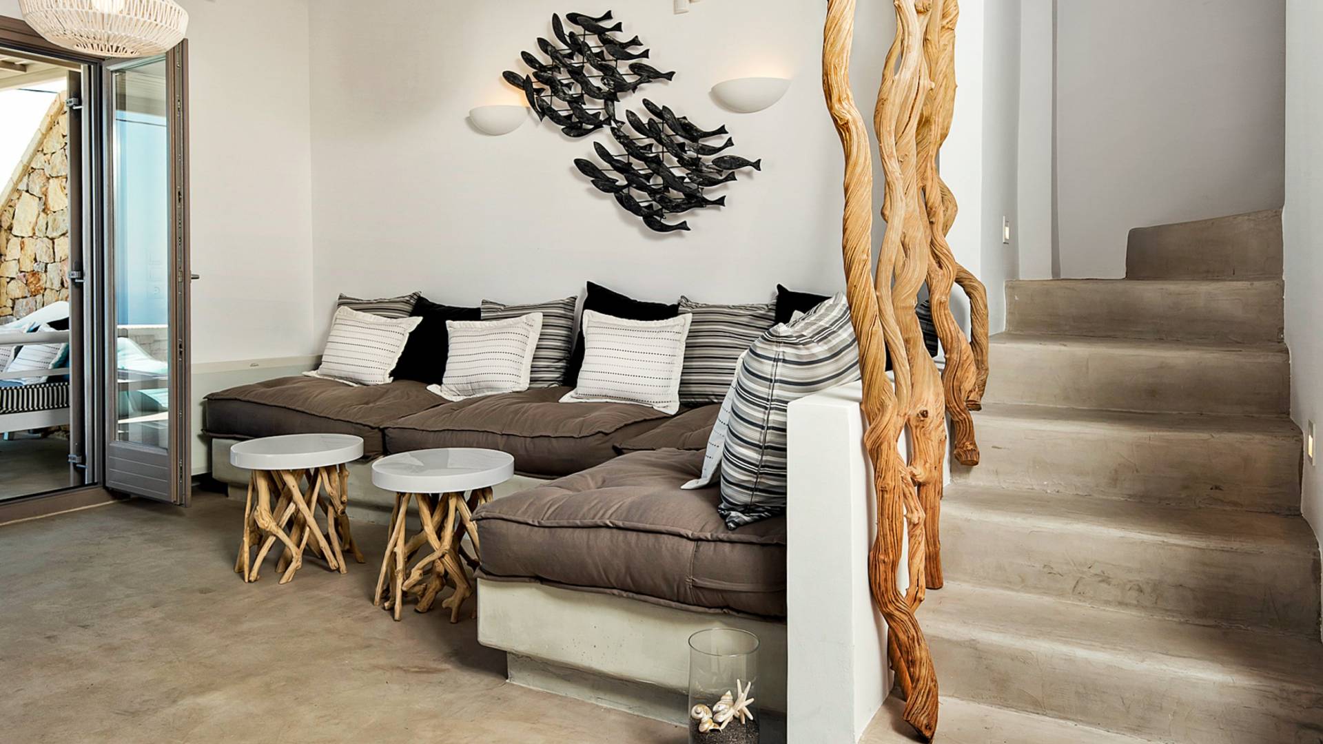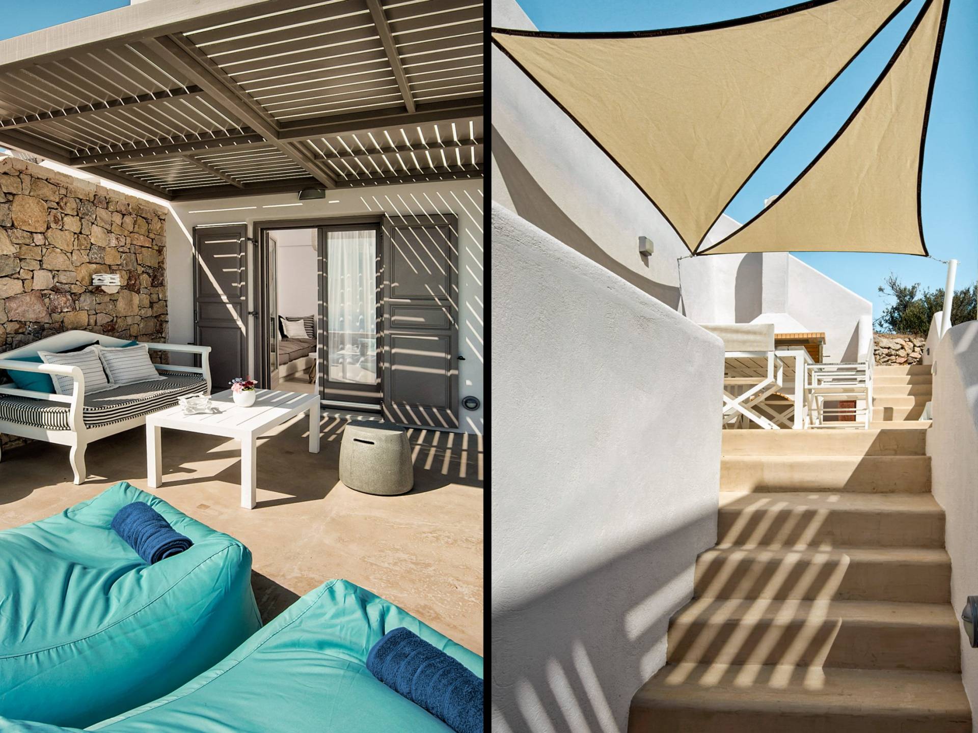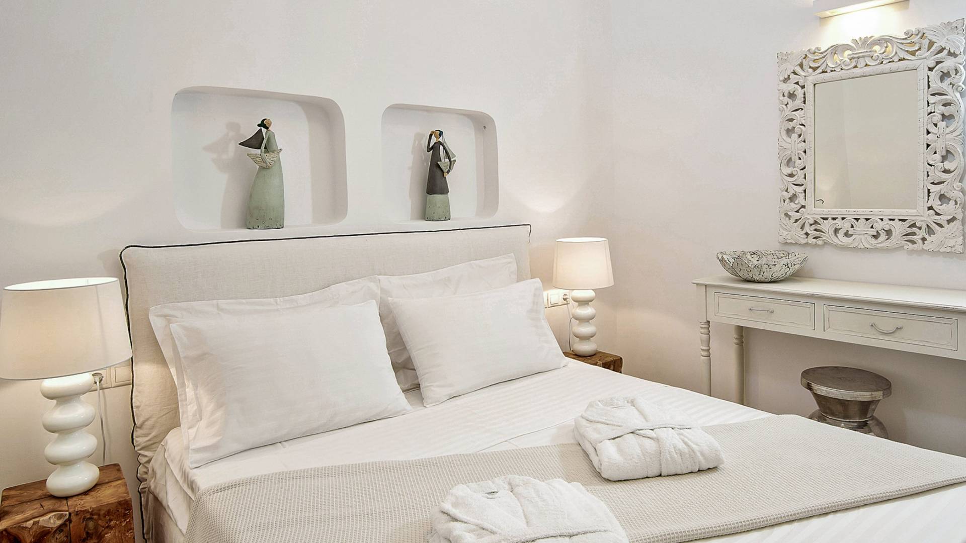 Obwohl die Eolia Senior Villa Santorini etwas kleiner ist als die Superior Villa, steht sie ihr in nichts nach, da sie die gleichen außergewöhnlichen Standards in Bezug auf Aufteilung und Ausstattung beibehält.