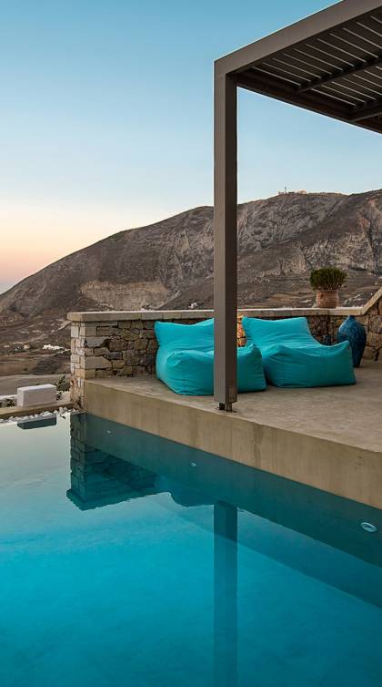 Die Eolia Luxury Villas wurden so gebaut, dass sie sich auf natürliche Weise in ihre Umgebung einfügen. Sie befinden sich an den Hängen von Exo Gonia, einer kleinen malerischen Siedlung direkt unterhalb des Dorfes Pirgos, deren Schönheit und traditionelle Architektur von der Zeit unberührt geblieben sind Das anspruchsvolle Design der Eolia Villas zusammen mit ihrer wirklich gastfreundlichen Atmosphäre wird Sie sofort in seinen Bann ziehen und einen Platz in Ihrem Herzen gewinnen. Schließlich ist die Gastfreundschaft der Einwohner von Santorin am bekanntesten.