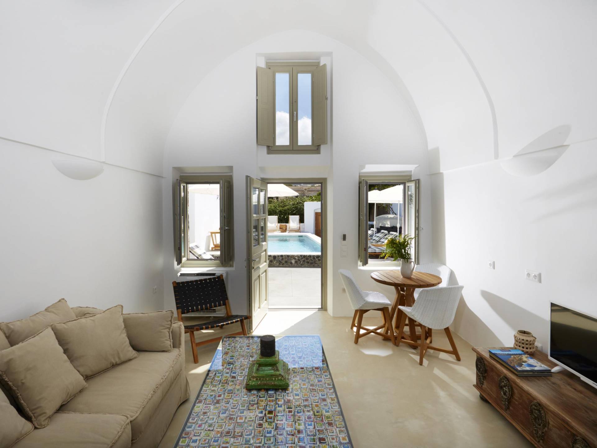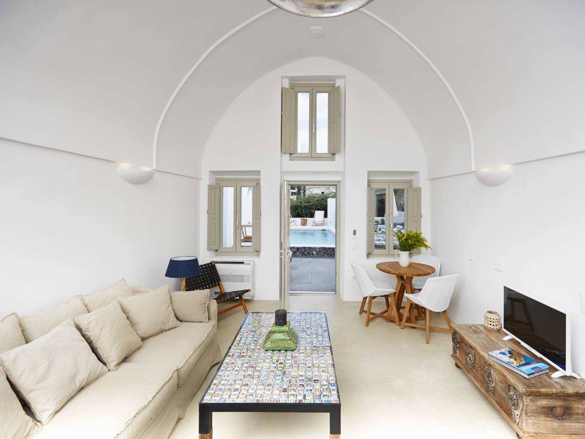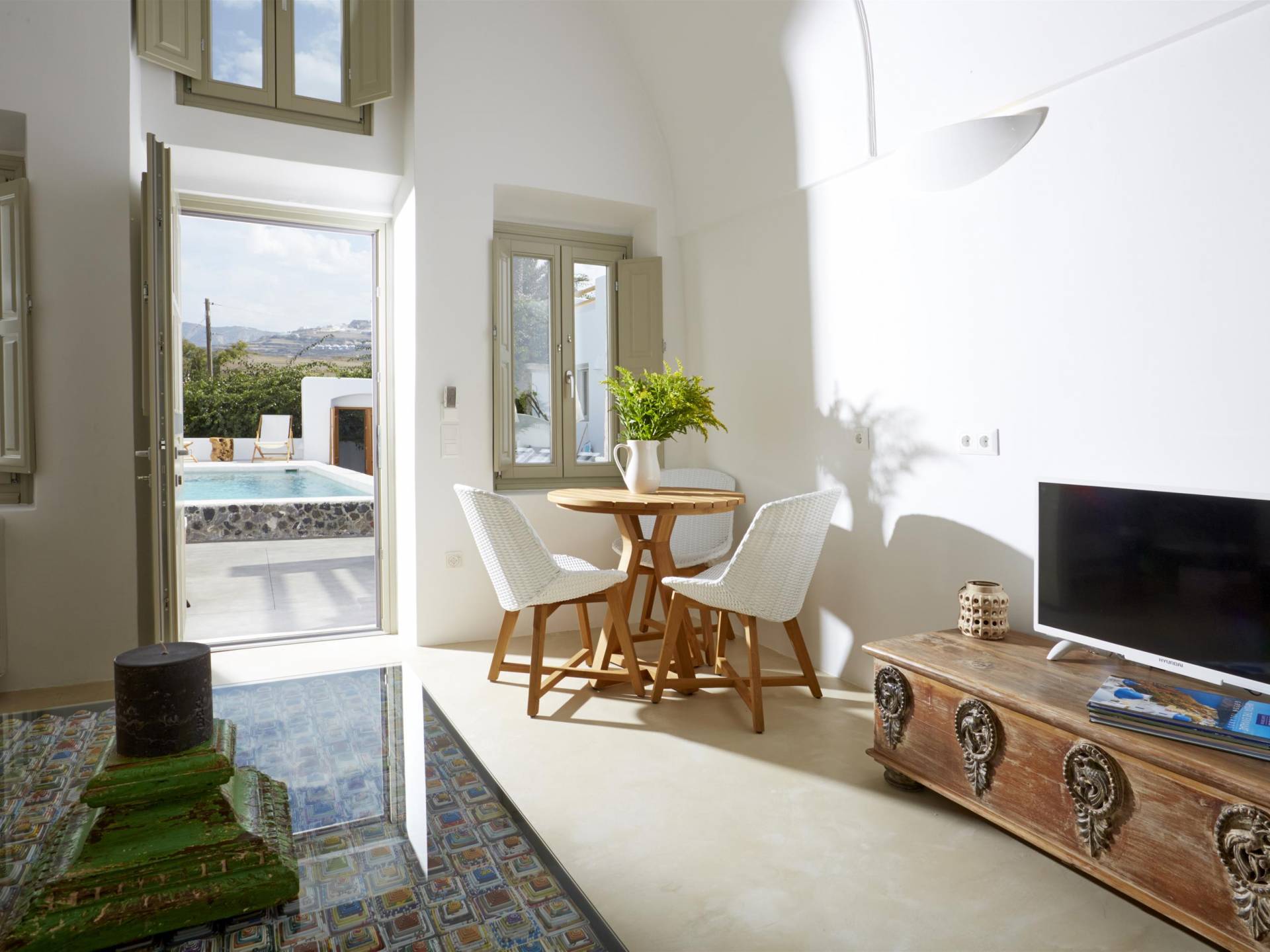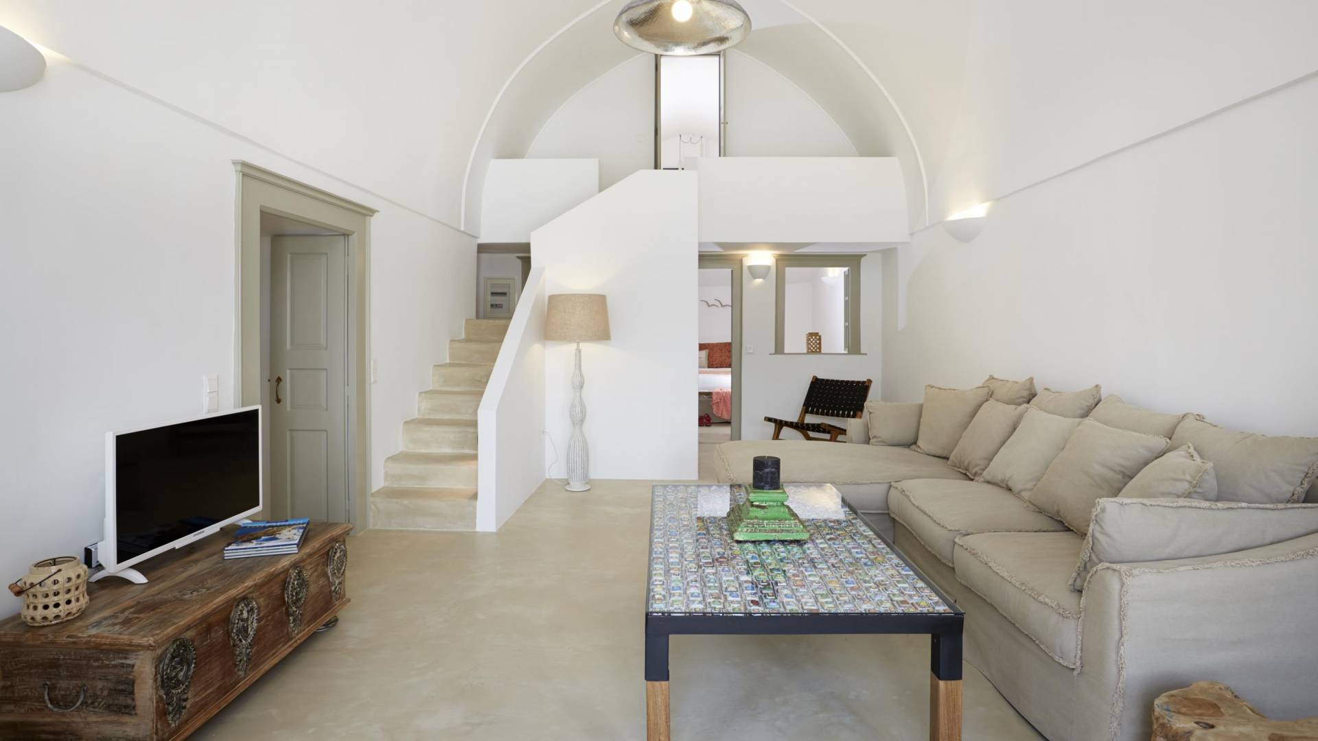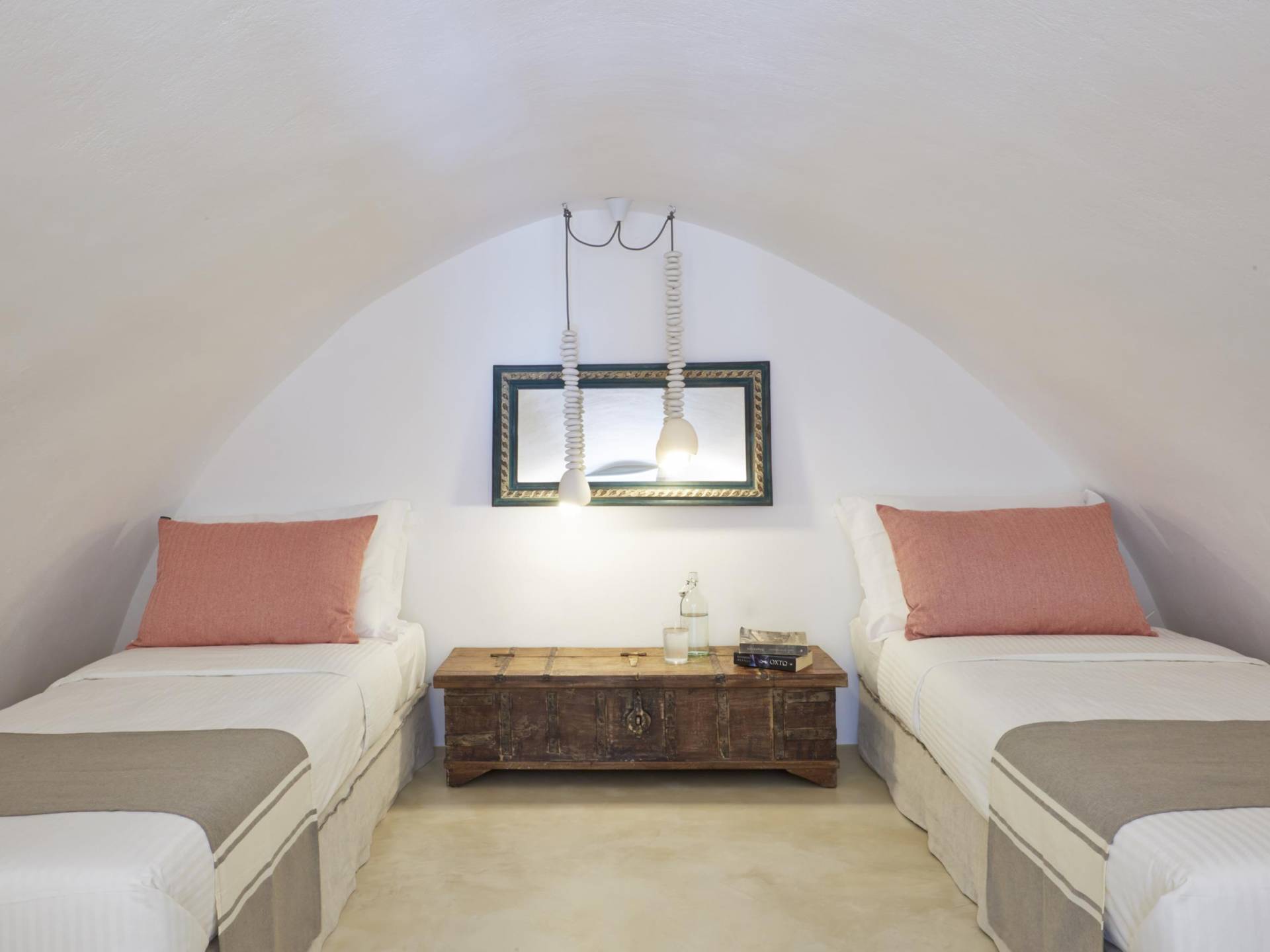 Antelmi Luxury Houses Santorini im Herzen der traditionellen Siedlung Messaria ist ein Rückzugsort für alle Sinne. Ein authentisches Santorini-Haus wurde in drei komfortable, unabhängige Häuser umgewandelt. Das erste Haus verfügt über drei Schlafzimmer und zwei Badezimmer und das zweite über ein Schlafzimmer und ein Badezimmer. Beide befinden sich im Erdgeschoss des Komplexes und verfügen auch über ausgestattete Küchen. Im ersten Stock finden Sie eine charmante Wohnung mit einem Schlafzimmer und einem Wohnzimmer mit Details wie originaler Einrichtung und Architektur, die Sie mit einem modernen Hauch von Raffinesse in eine vergangene Zeit zurückversetzen.